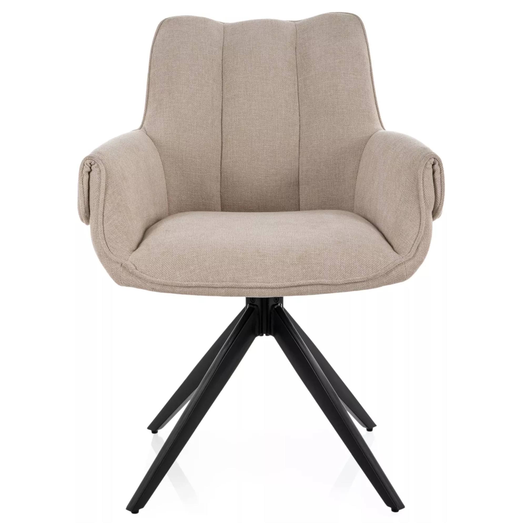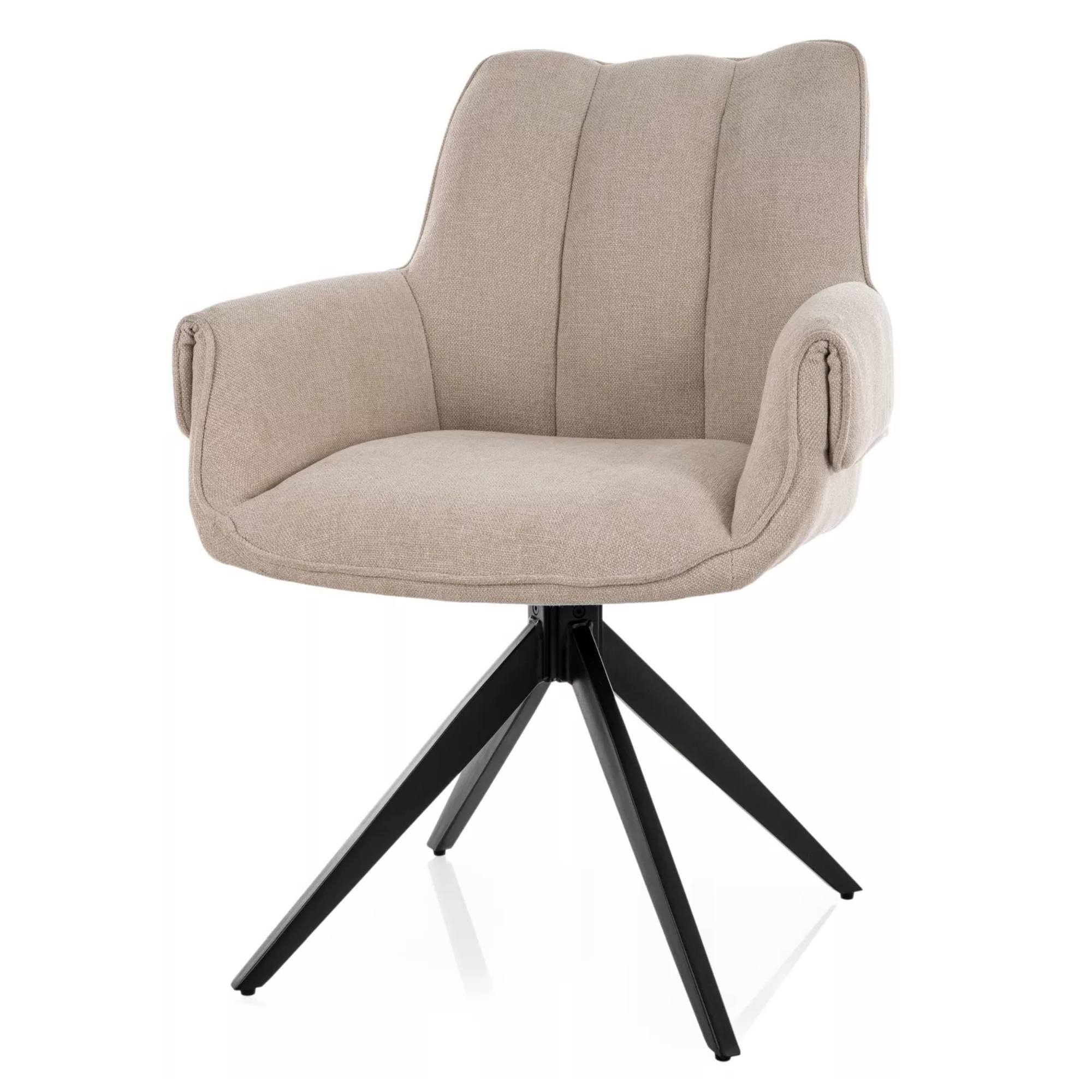 Sedák je spoločne s chrbtovou opierkou potiahnutý na dotyk príjemnou hladkou tkaninou. Čalúnenie je doplnené o dekoratívne prešívanie vytvárajúce luxusnejší vzhľad. Maximálne pohodlie počas sedenia je podporené ** mäkkou penovou výplňou ** a ** podrúčkami **. Sedaciu časť podopiera štvorica nôh z matného kovu.