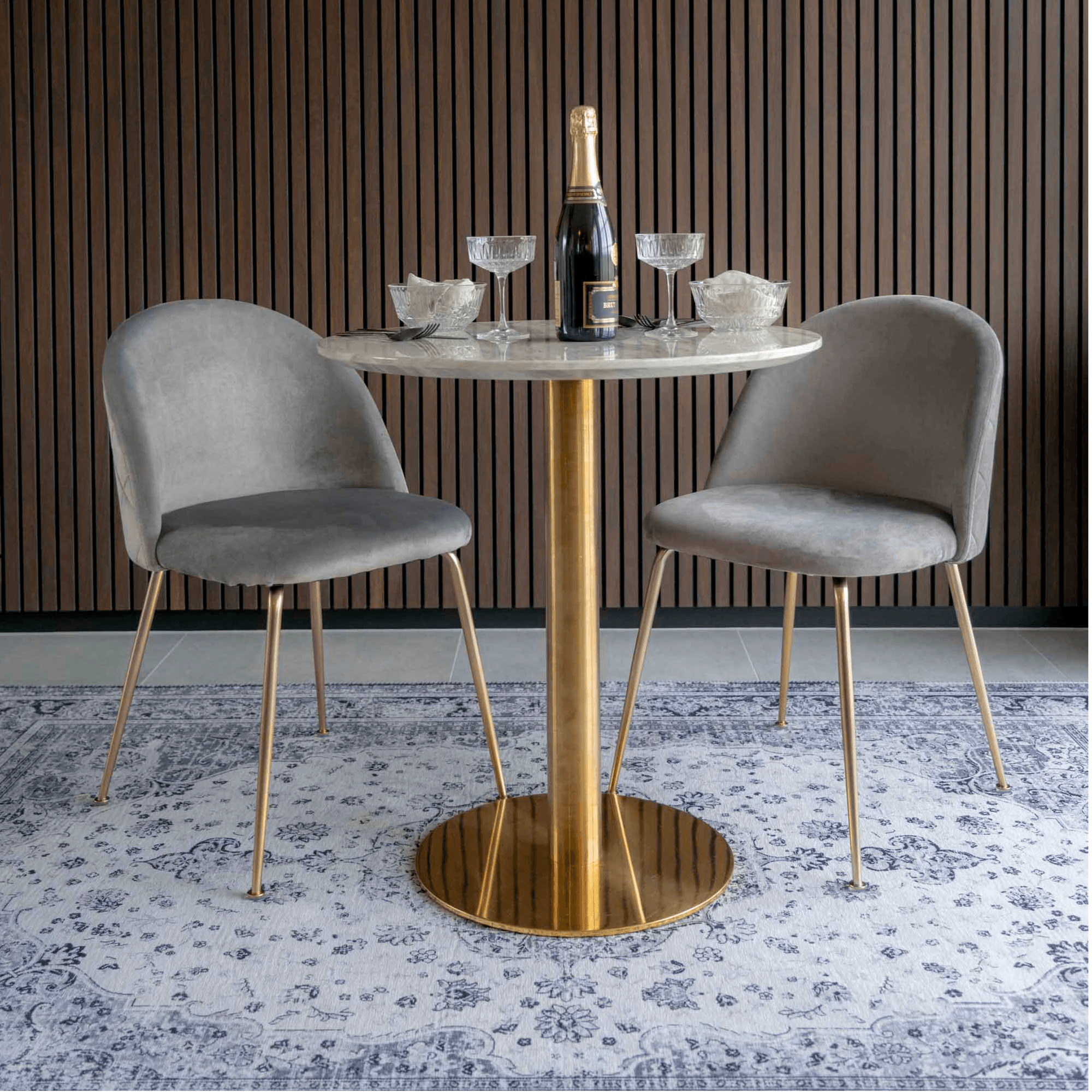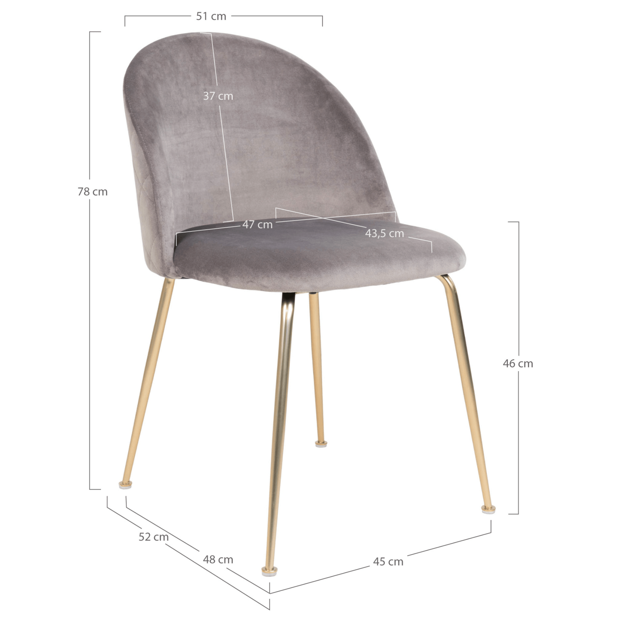 Maximálne pohodlie zaisťuje komfortné seadlo a chrbtová opierka s hebkým čalúnením z tkaniny zamatového vzhľadu s dekoratívnym prešívaním zadnej strany opierky. Stabilitu obstaráva štvornohá kovová konštrukcia. Sadnite si pohodlne na modernú jedálenskú stoličku GINUVI.