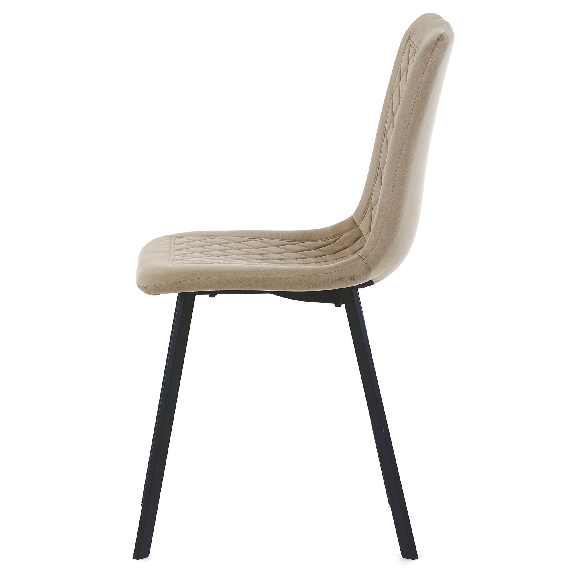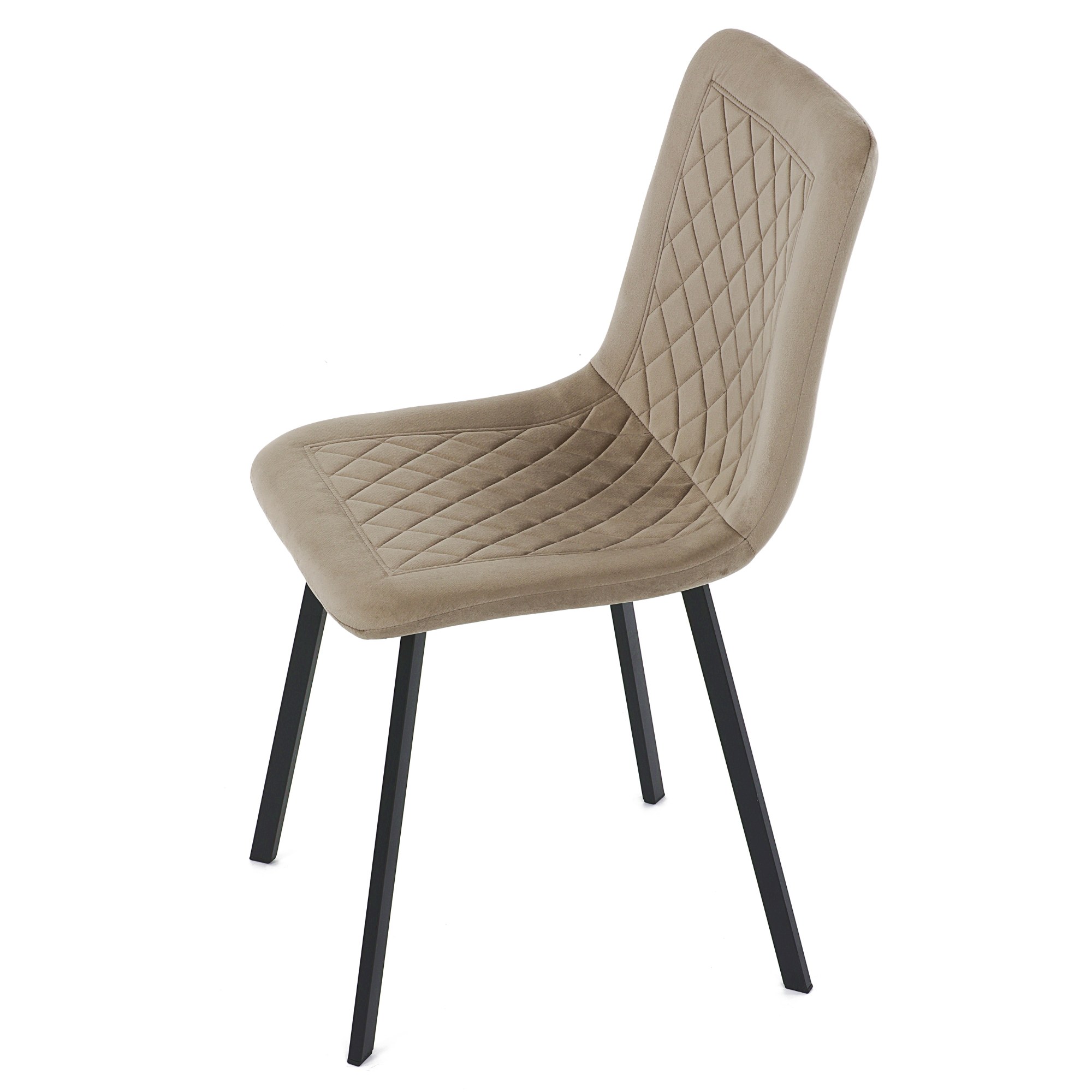 Maximálny komfort je dosiahnutý penovým čalúnením sedadla a chrbtovej opierky veľmi kvalitnou hladkou tkaninou zamatového vzhľadu s dekoratívnym prešívaním. Stabilitu zaisťuje kovová podnož v matnom čiernom odtieni.