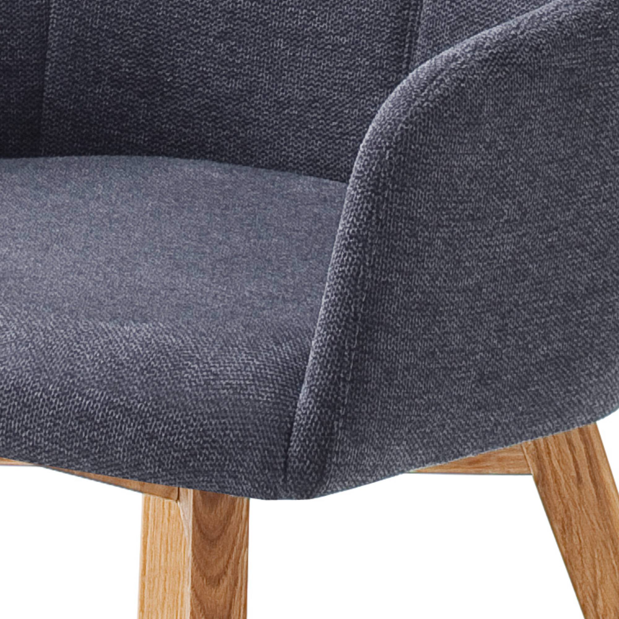 Elegantná jedálenská stolička JACKSON v škandinávskom štýle očarí svojím jednoduchým vzhľadom. O komfortné posedenie sa vám postará príjemné čalúnenie v tkanine s hrubou štruktúrou a to vrátane podrúčok s možnosťou otočenia o 180 stupňov s funkciou reset. Stabilná konštrukcia nôh je vyrobená z masívneho duba s olejovanou povrchovou úpravou.