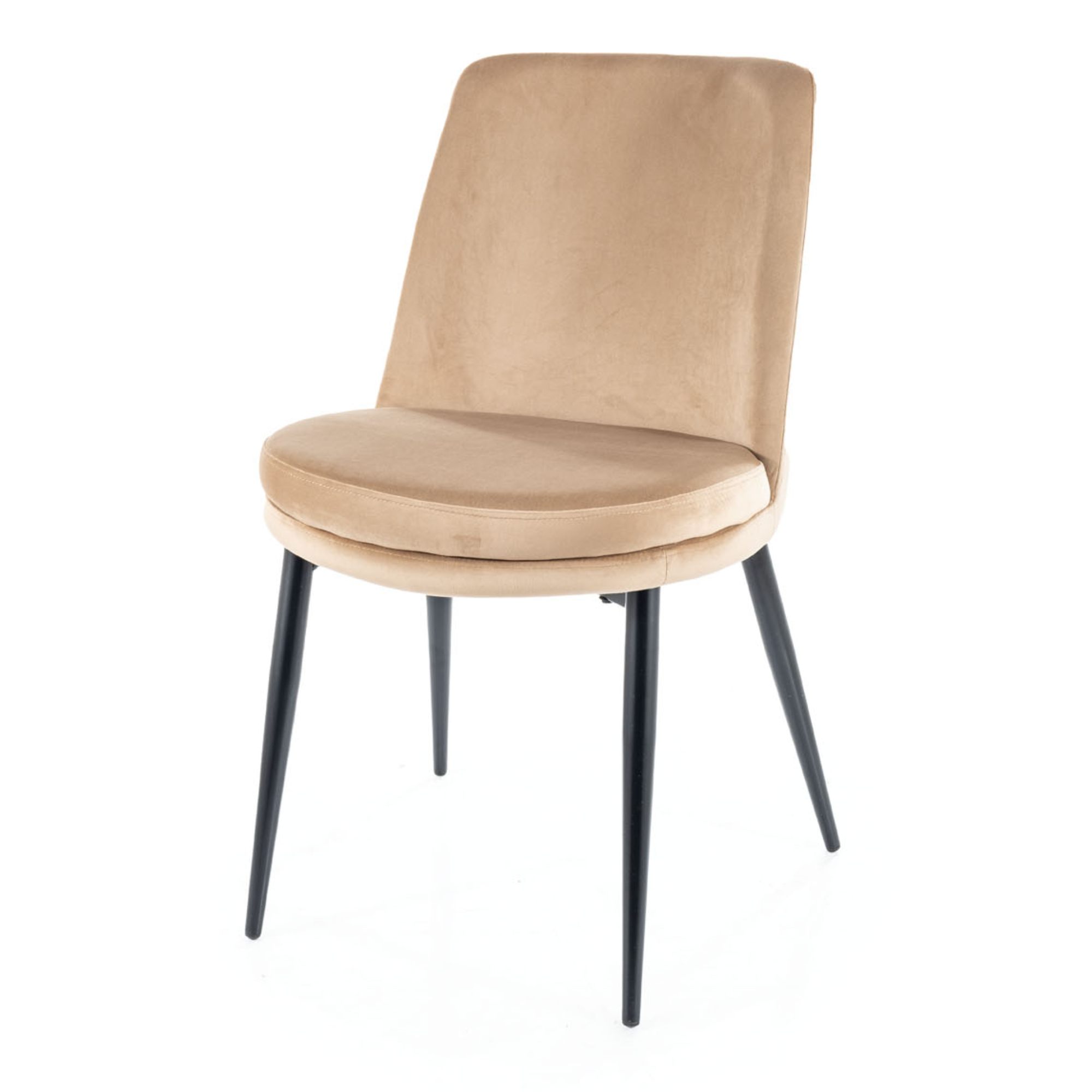 Elegantná jedálenská stolička KOYLO zapadne do každej modernej domácnosti. Maximálny komfort je dosiahnutý čalúnením sedadla i a chrbtovej opierky z kvalitnej hladkej tkaniny zamatového vzhľadu. Stabilitu zaisťuje kovová podnož v čiernom matnom vyhotovení. Sadnite si na pohodlnú jedálenskú stoličku KOYLO.