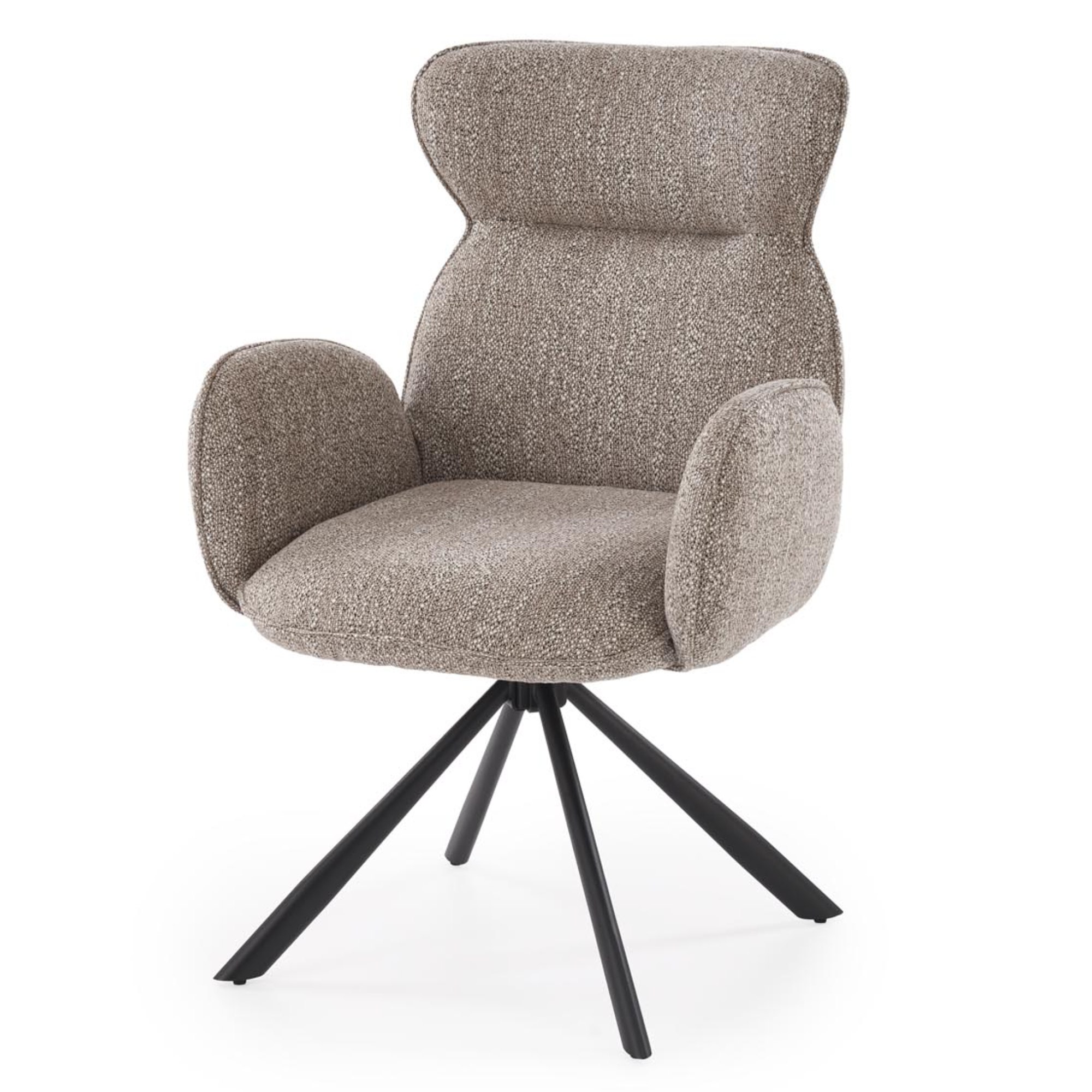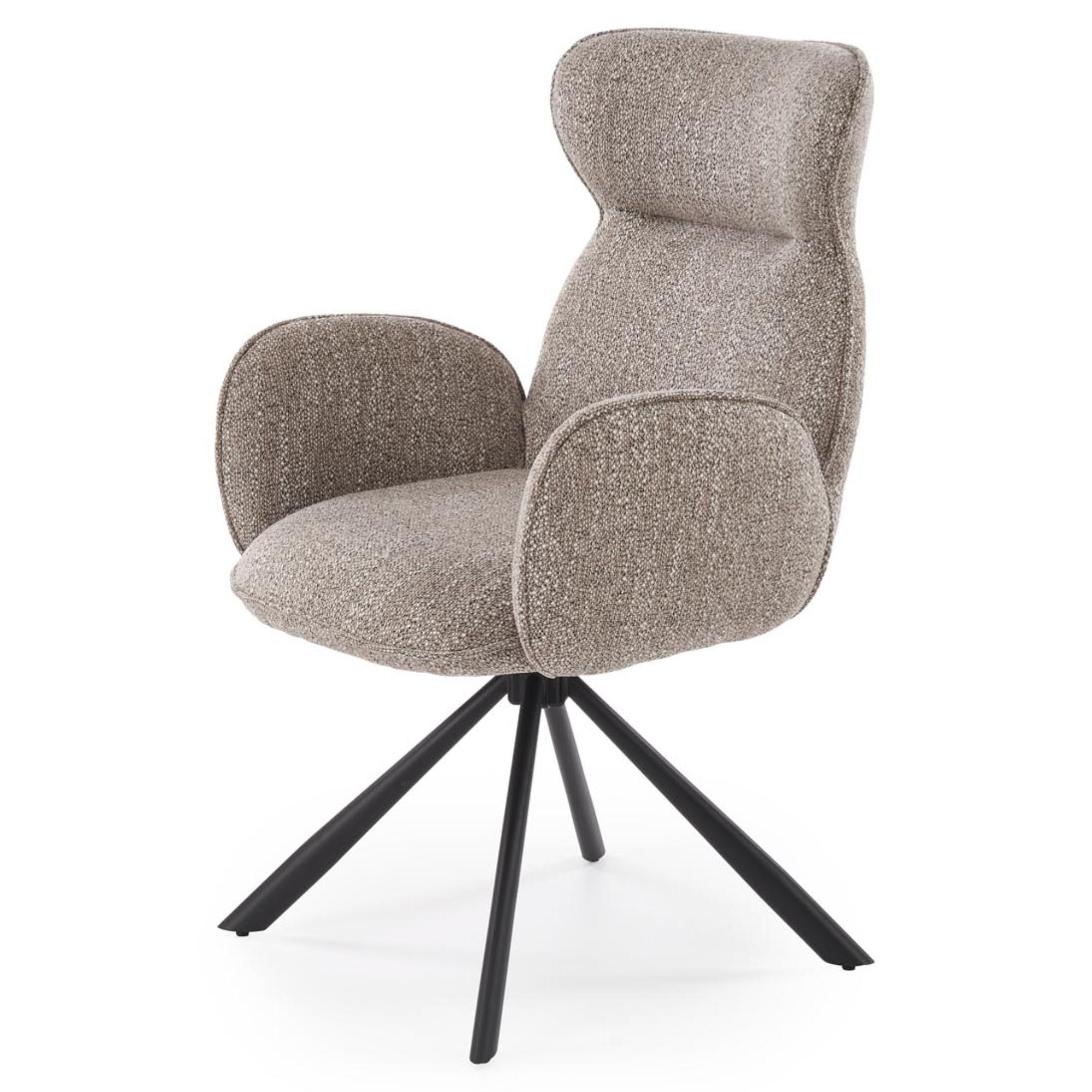 Za svoju stabilitu vďačí táto stolička pevným nohám, ktoré sú vyrobené z ocele. Povrch nôh je práškovo lakovaný. Pohodlie pri sedení zabezpečuje nielen mäkký penový sedák, ale prispievajú k nemu aj opierky na ruky. Stolička je čalúnená tkaninou, ktorá je príjemná na dotyk.