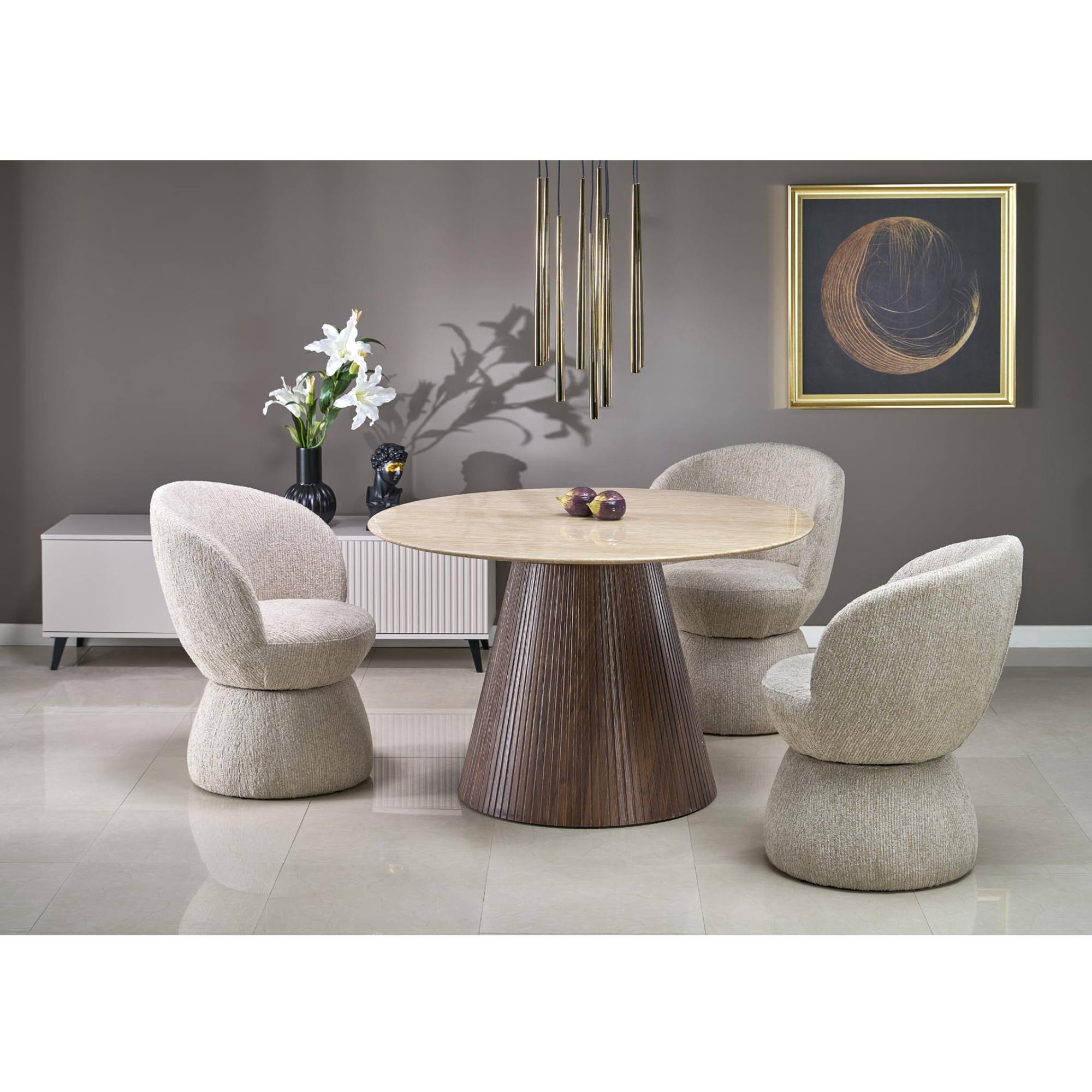 O pohodlné sedenie na jedálenskej stoličke KS-581 sa stará nielen mäkký penový sedák, ale aj praktické opierky na ruky. Stolička je čalúnená hladkou tkaninou.