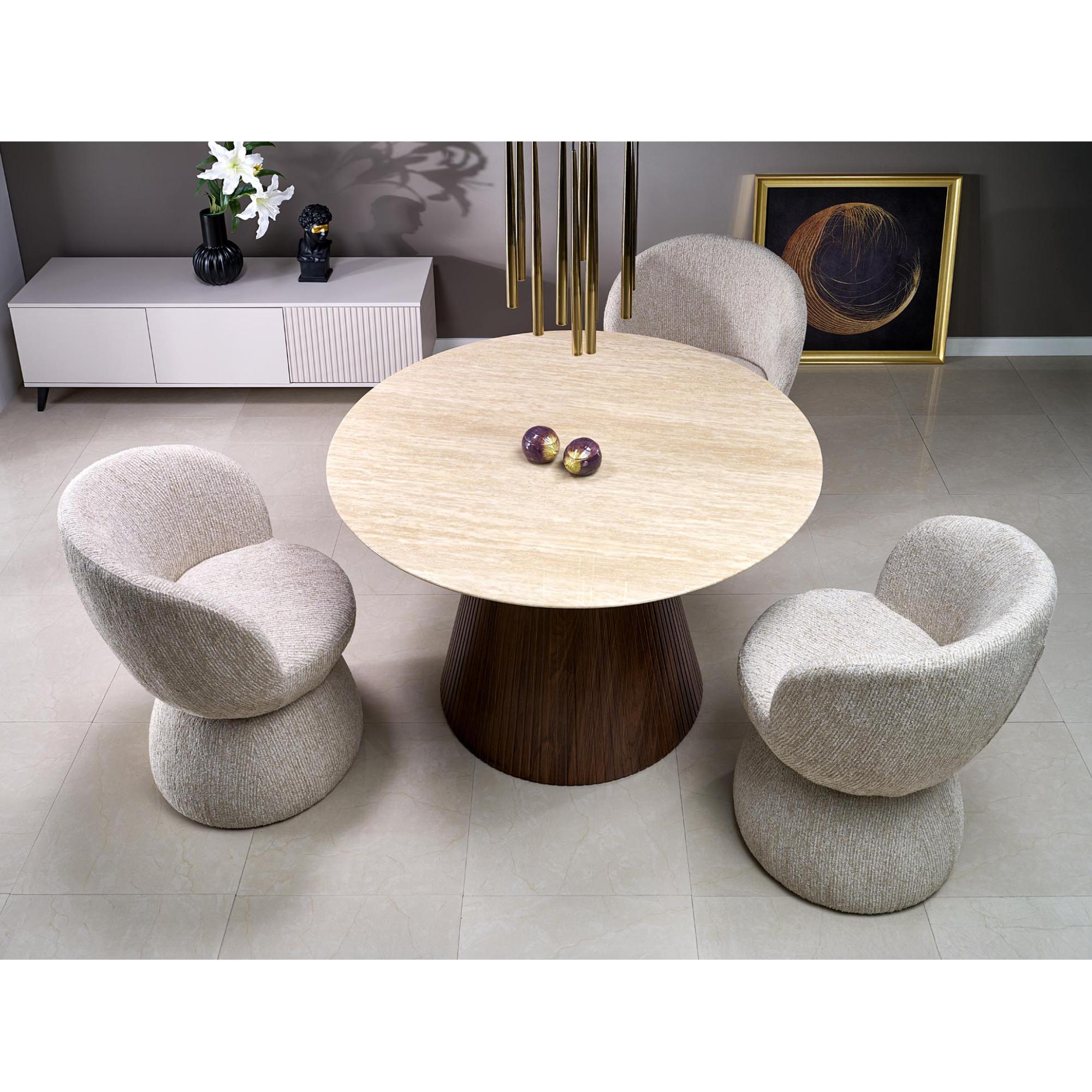 Stolička má kovovú konštrukciu, ktorá zaisťuje jej stabilitu. Keďže stolička disponuje otočnou funkciou, umožňuje prístup k rôznym častiam stola bez toho, aby bolo nutné vstávať alebo presúvať celú stoličku. Možnosť otáčania zároveň uľahčuje rozhovor s ostatnými ľuďmi pri stole.