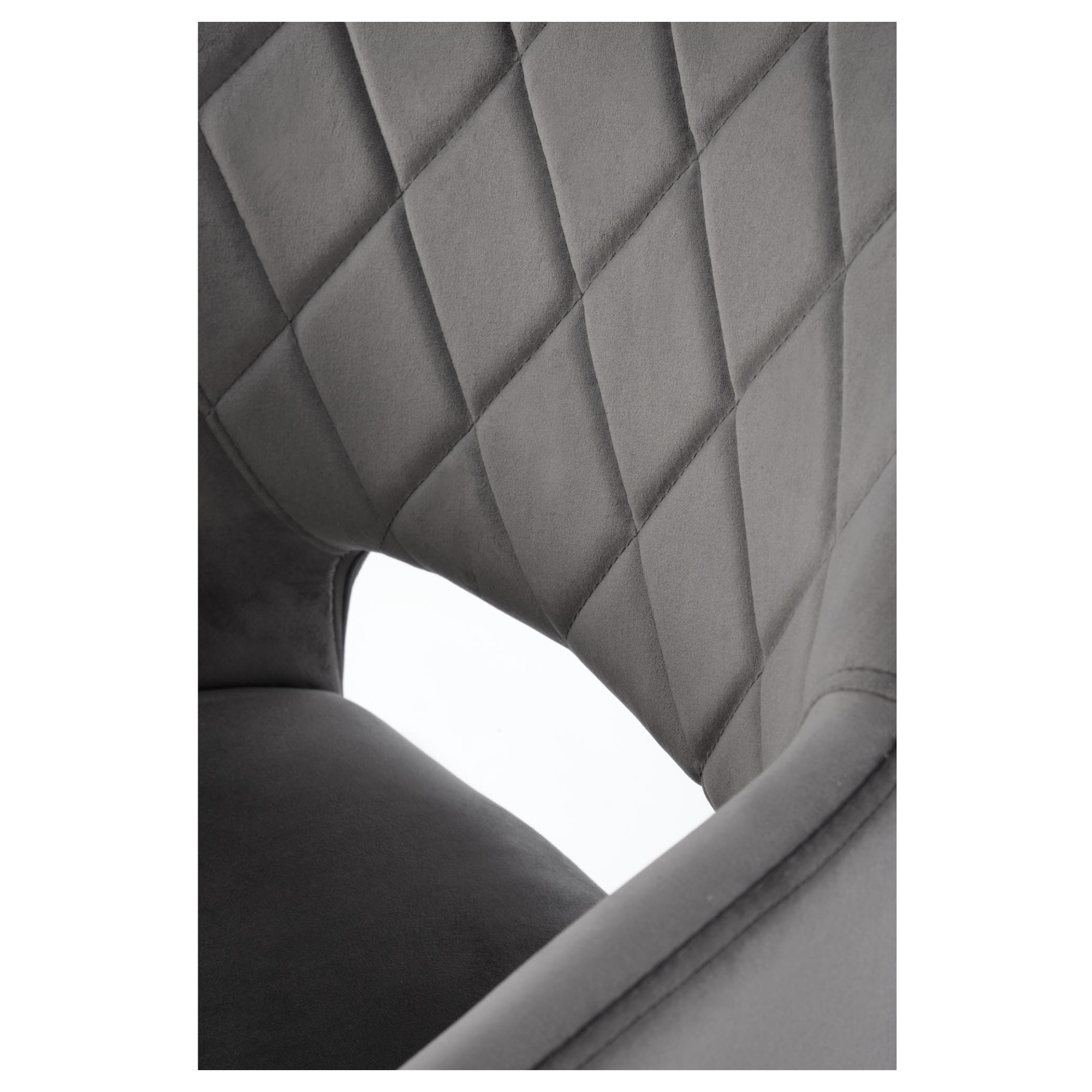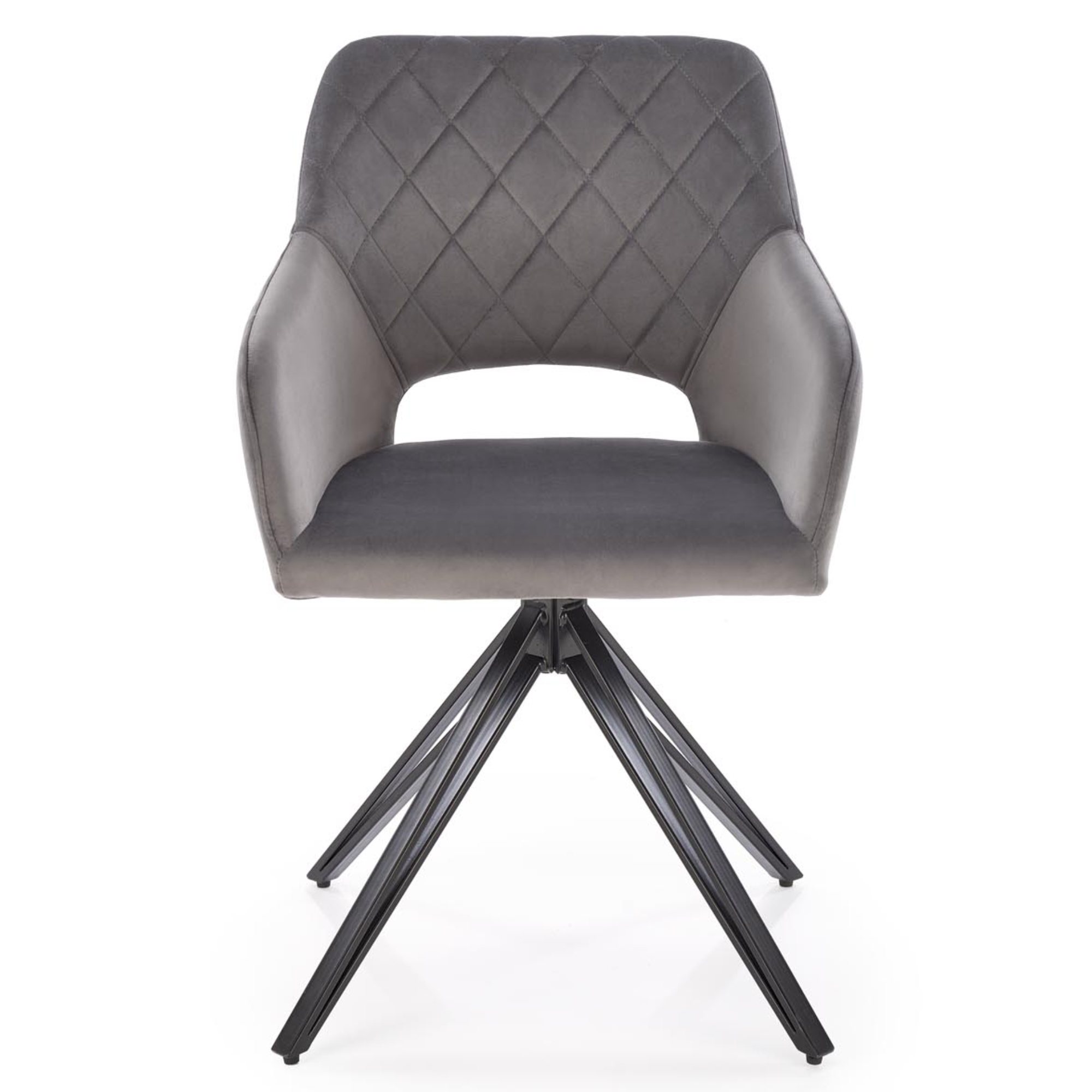 Stabilitu celej konštrukcie zaisťuje štvornohá podnož v čiernom vyhotovení vyrobená z práškovo lakovaného kovu. Tá je navyše vybavená 360 ° otočným mechanizmom na jednoduchšie používanie. Pohodlie zaisťuje veľmi komfortné sedadlo s penovou výplňou, chrbtová opierka a tiež podrúčky na unavené ruky. Celá škrupina je potiahnutá hladkou tkaninou zamatového vzhľadu v jednofarebnom vyhotovení. Elegantný vzhľad stoličky zvýrazňuje dekoratívne prešívanie chrbtovej oblasti.