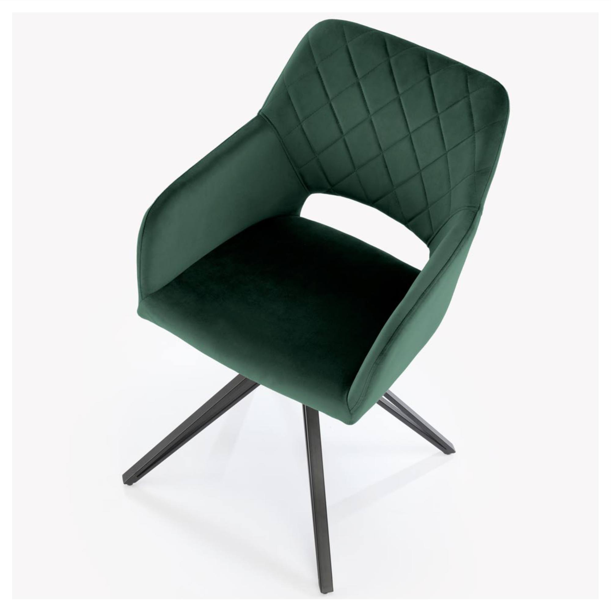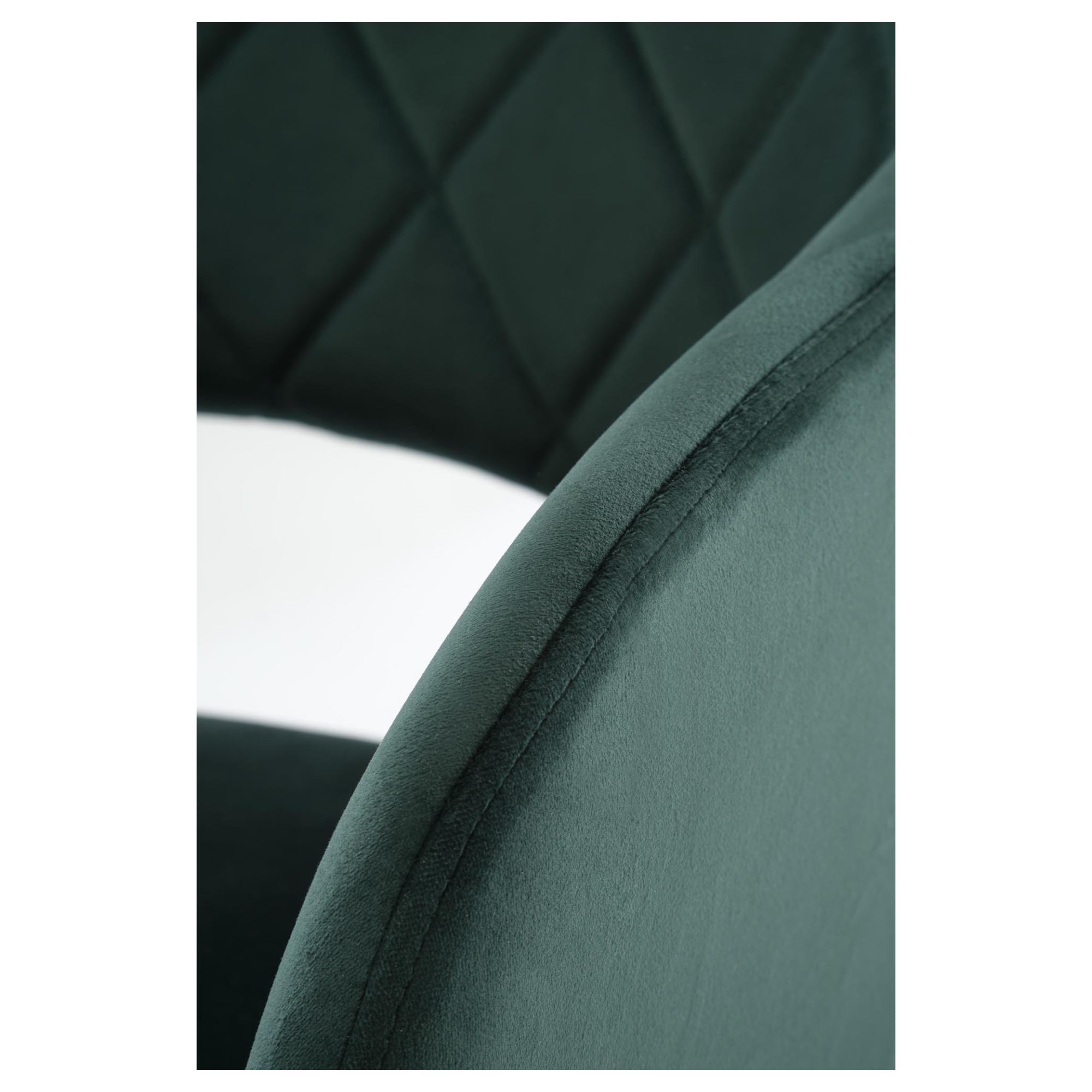 Stabilitu celej konštrukcie zaisťuje štvornohá podnož v čiernom vyhotovení vyrobená z práškovo lakovaného kovu. Tá je navyše vybavená 360 ° otočným mechanizmom na jednoduchšie používanie. Pohodlie zaisťuje veľmi komfortné sedadlo s penovou výplňou, chrbtová opierka a tiež podrúčky na unavené ruky. Celá škrupina je potiahnutá hladkou tkaninou zamatového vzhľadu v jednofarebnom vyhotovení. Elegantný vzhľad stoličky zvýrazňuje dekoratívne prešívanie chrbtovej oblasti.