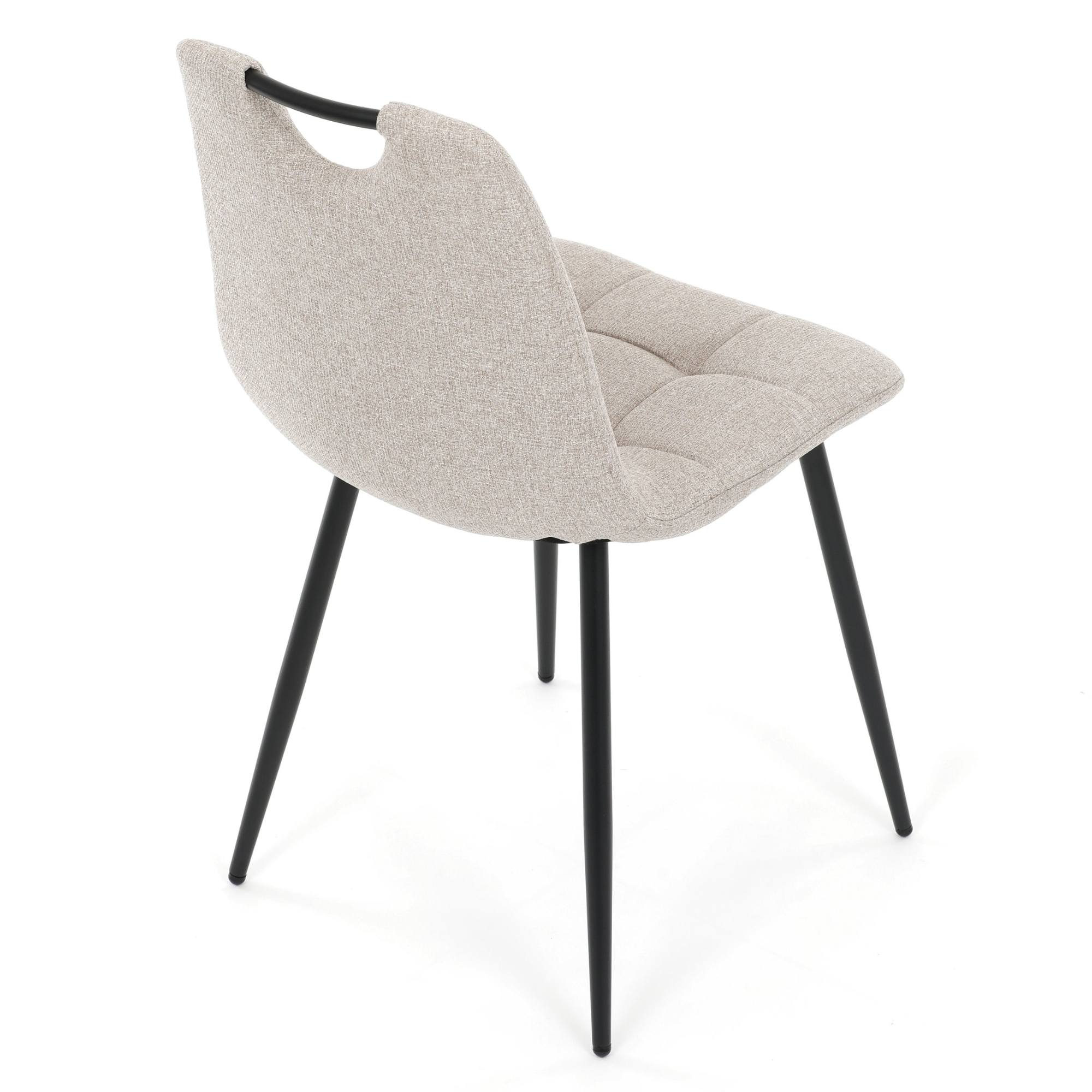 Pohodlné penové sedadlo a kvalitná hladká tkanina príjemná na dotyk, ktorou je stolička čalúnená, zaisťujú maximálne pohodlie aj pri dlhom sedení. Štíhle kovové nohy dodávajú stoličke stabilitu a súčasne pôsobia vzdušne.