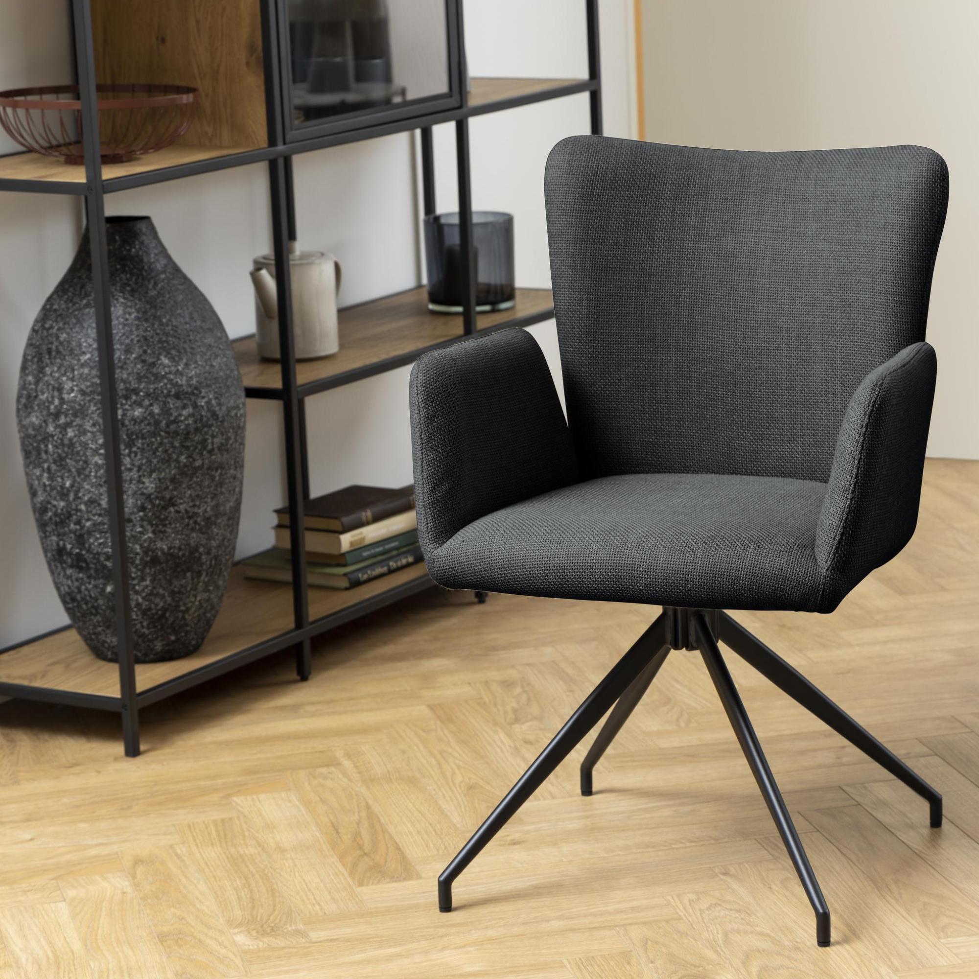 Za svoju stabilitu vďačí táto stolička pevnej kovovej konštrukcii. Aby sa na nej príjemne sedelo, je vybavená podrúčkami a pohodlným penovým sedadlom potiahnutým hladkou tkaninou.