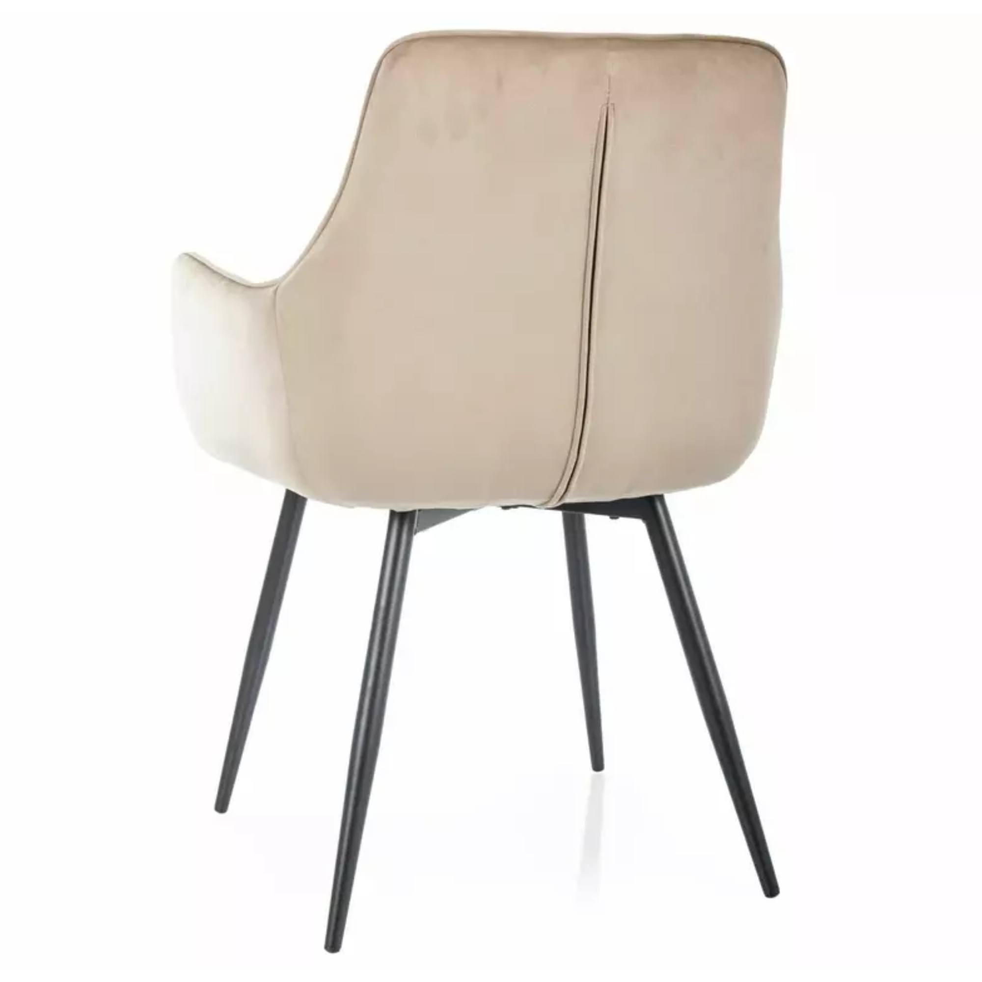 O pohodlné sedenie na tejto stoličke sa stará mäkké penové sedadlo potiahnuté hladkou tkaninou zamatového typu, ktorá je príjemná na dotyk. Pevná a stabilná konštrukcia je vyrobená z kovu.
