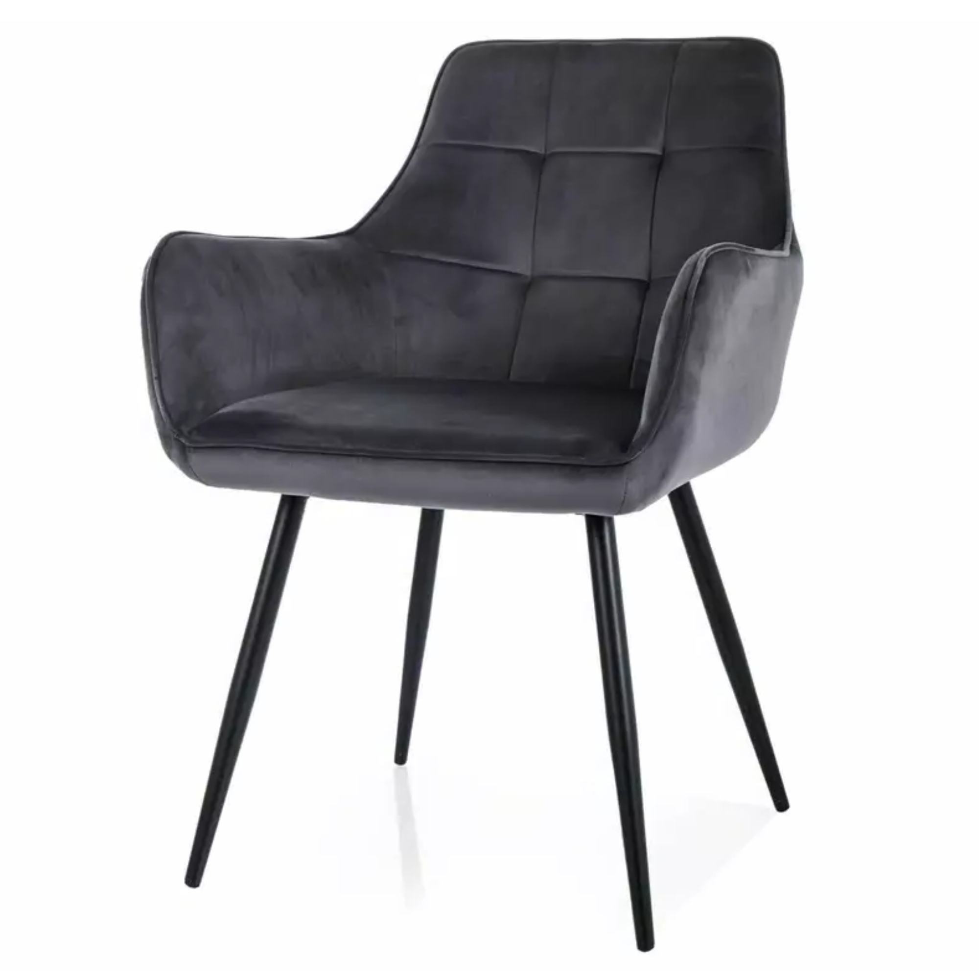 O pohodlné sedenie na tejto stoličke sa stará mäkké penové sedadlo potiahnuté hladkou tkaninou zamatového typu, ktorá je príjemná na dotyk. Pevná a stabilná konštrukcia je vyrobená z kovu.