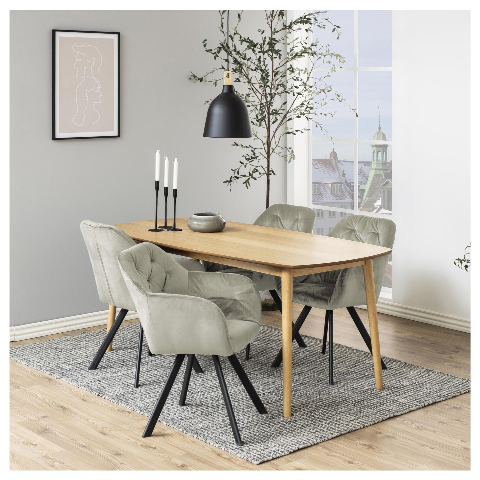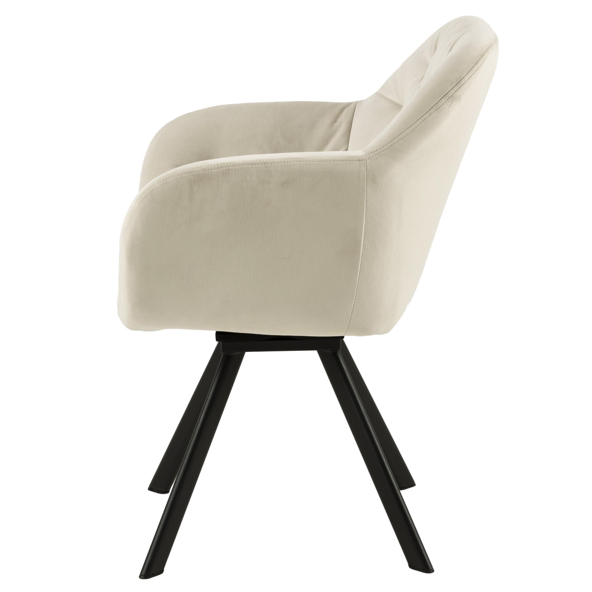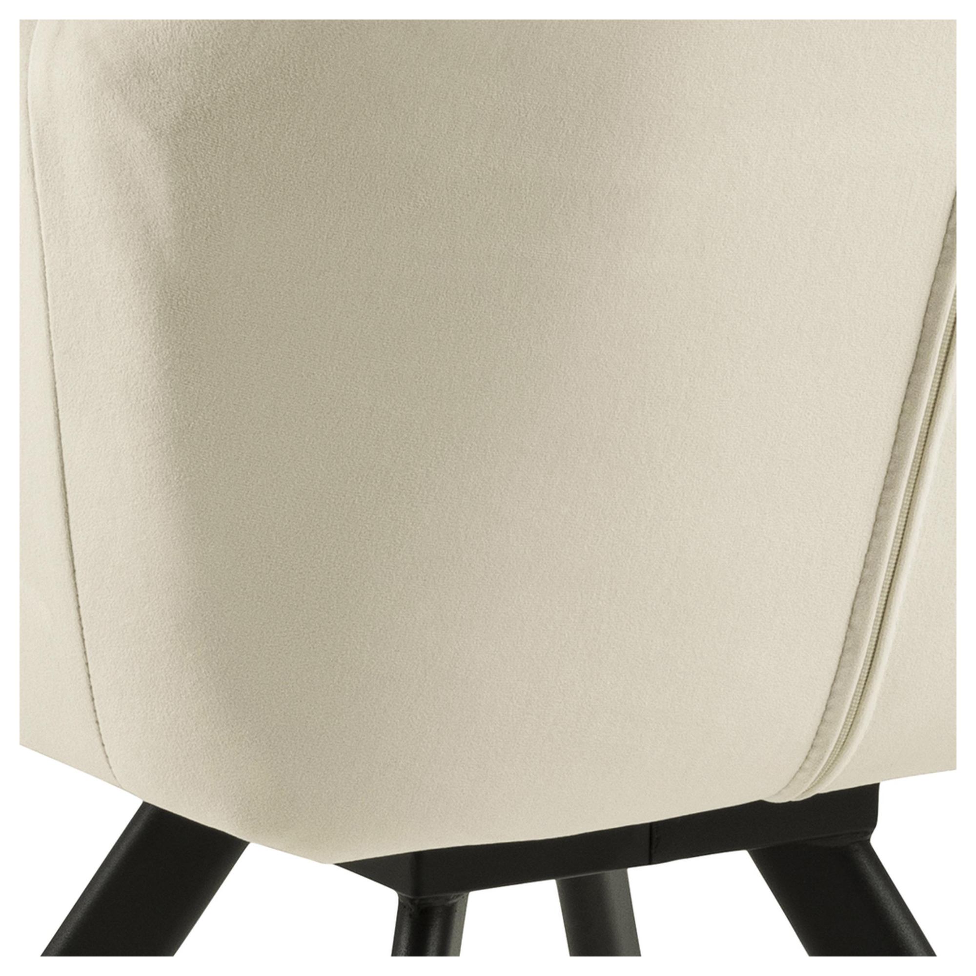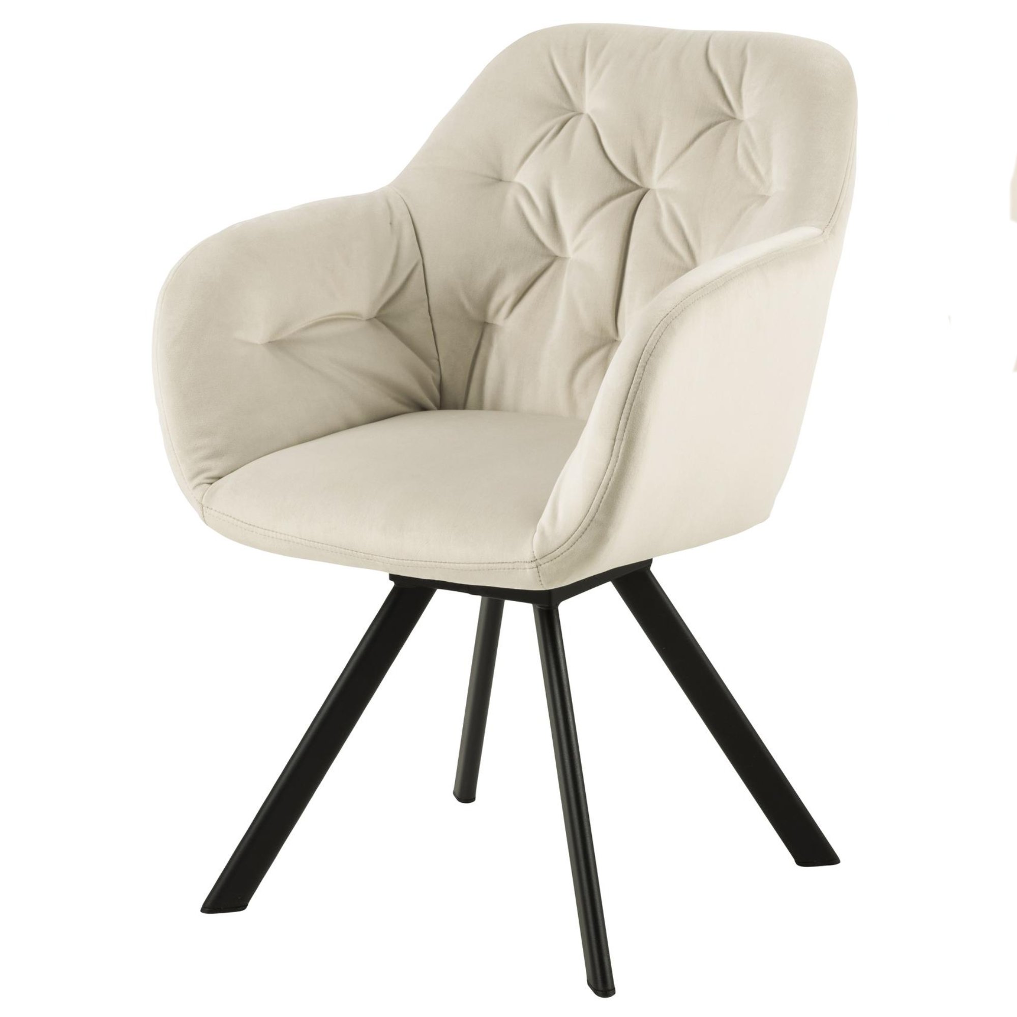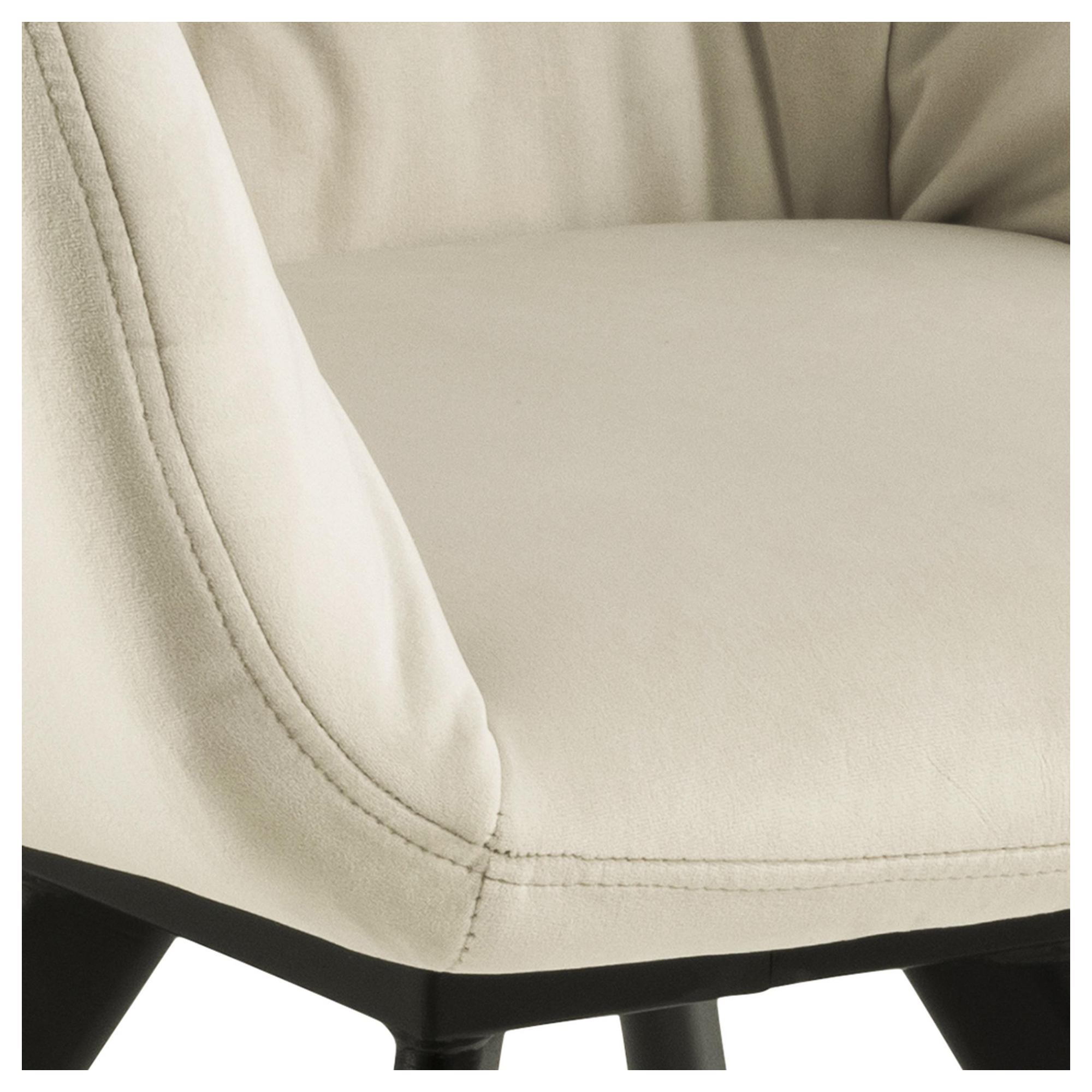 Komfort zaisťuje mäkká, penová výplň sedadla aj chrbtovej opierky a na odloženie unavených rúk slúžia praktické podrúčky. Celá škrupina je čalúnená tkaninou zamatového vzhľadu s na dotyk veľmi príjemným povrchom. Minimalistický vzhľad stoličky ozvláštňujú dekoratívne detaily poťahu, ktoré vytvárajú sofistikovanejší vzhľad. Pevnosť a stabilitu stoličky zaisťuje štvornohá podnož z práškovo lakovaného kovu vyhotovená v čiernom mate. Vďaka špeciálnemu mechanizmu je možné stoličku otáčať až o 180° s funkciou automatického návratu do pôvodnej polohy.