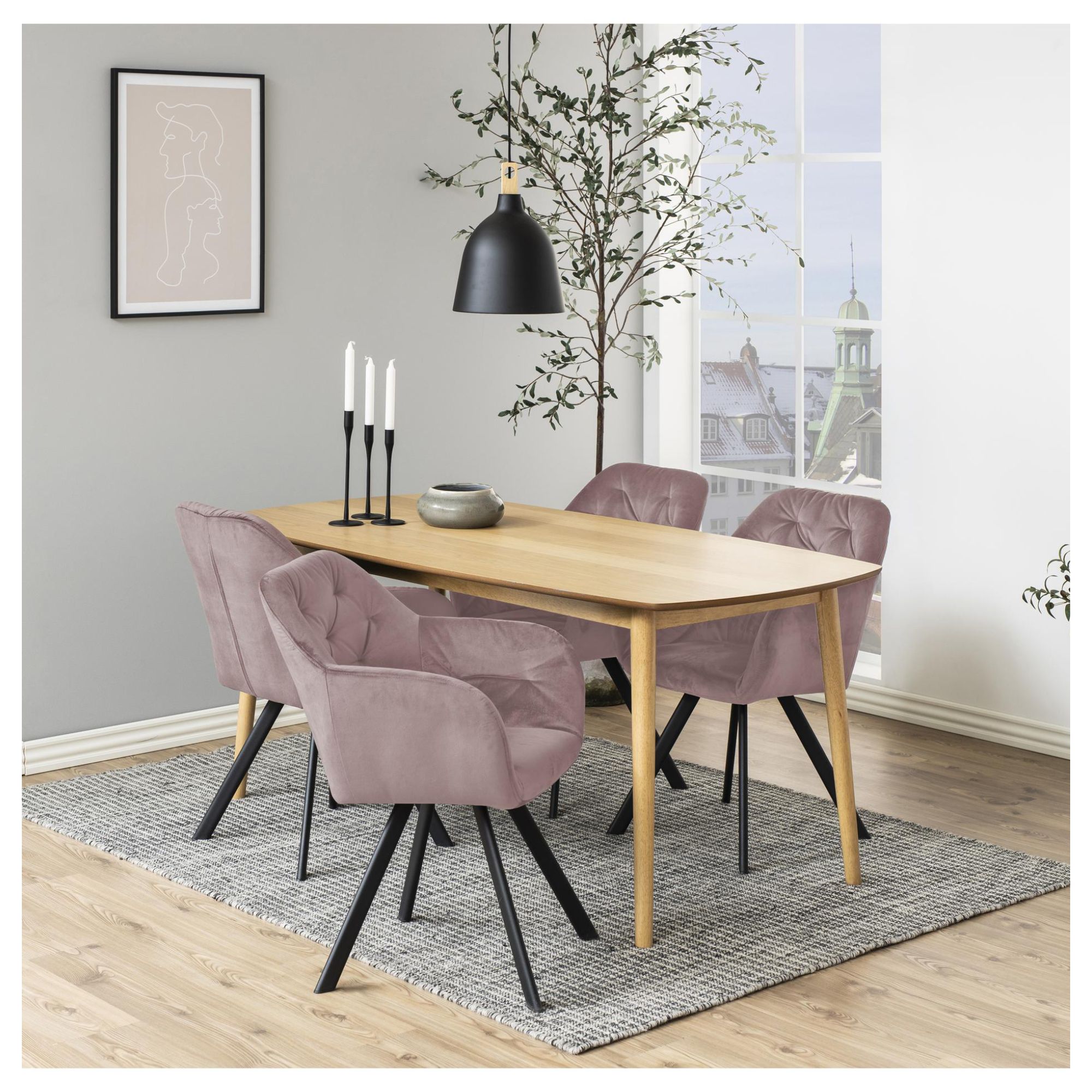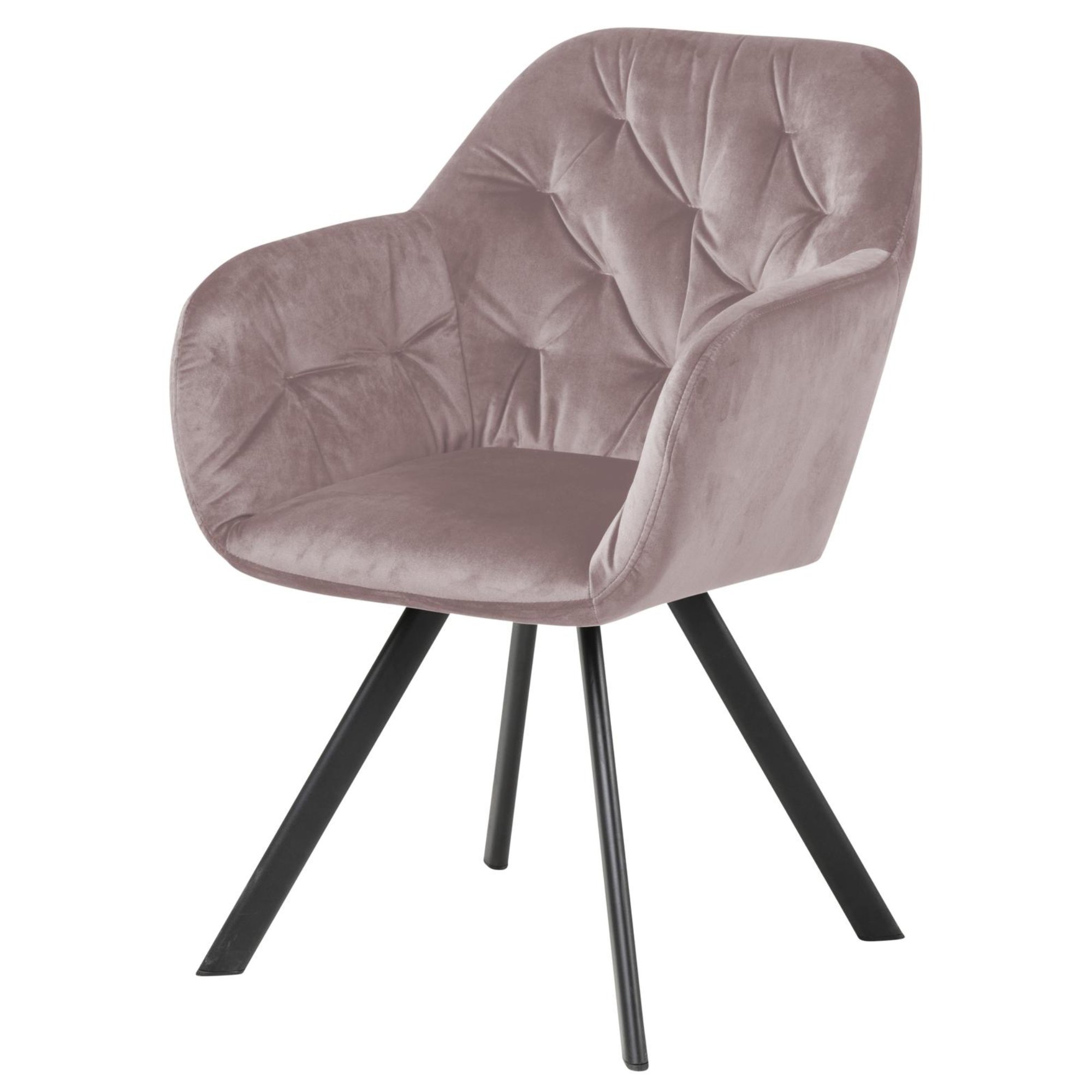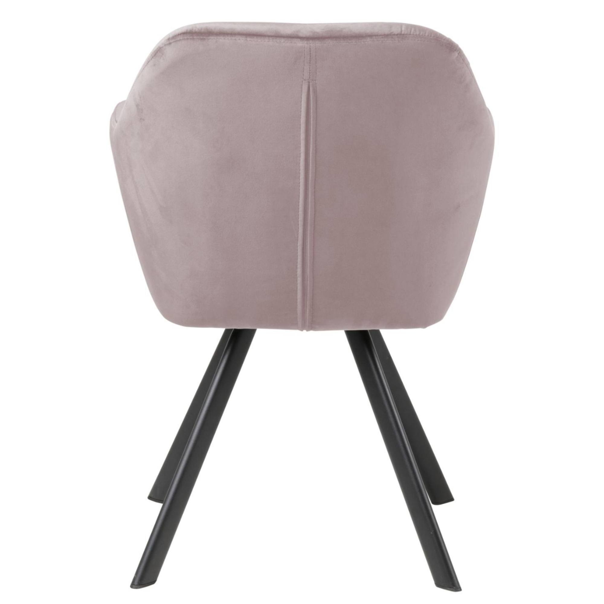 Komfort zaisťuje mäkká, penová výplň sedadla aj chrbtovej opierky a na odloženie unavených rúk slúžia praktické podrúčky. Celá škrupina je čalúnená tkaninou zamatového vzhľadu s na dotyk veľmi príjemným povrchom. Minimalistický vzhľad stoličky ozvláštňujú dekoratívne detaily poťahu, ktoré vytvárajú sofistikovanejší vzhľad. Pevnosť a stabilitu stoličky zaisťuje štvornohá podnož z práškovo lakovaného kovu vyhotovená v čiernom mate. Vďaka špeciálnemu mechanizmu je možné stoličku otáčať až o 180° s funkciou automatického návratu do pôvodnej polohy.