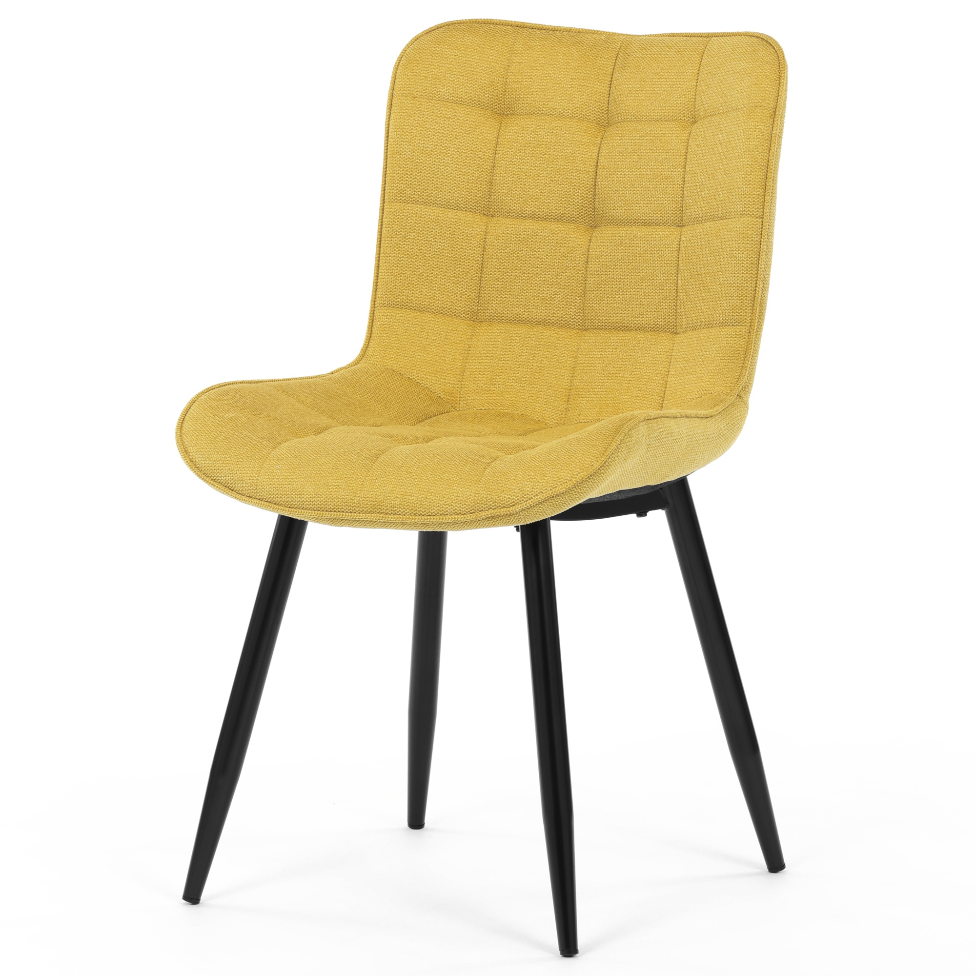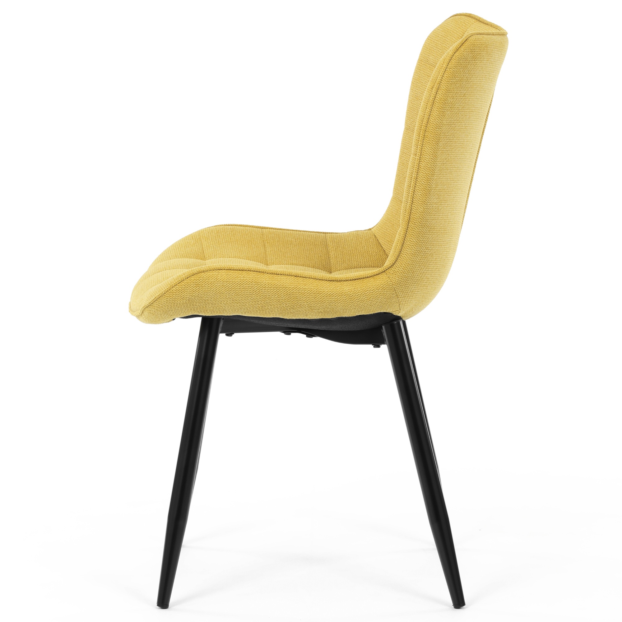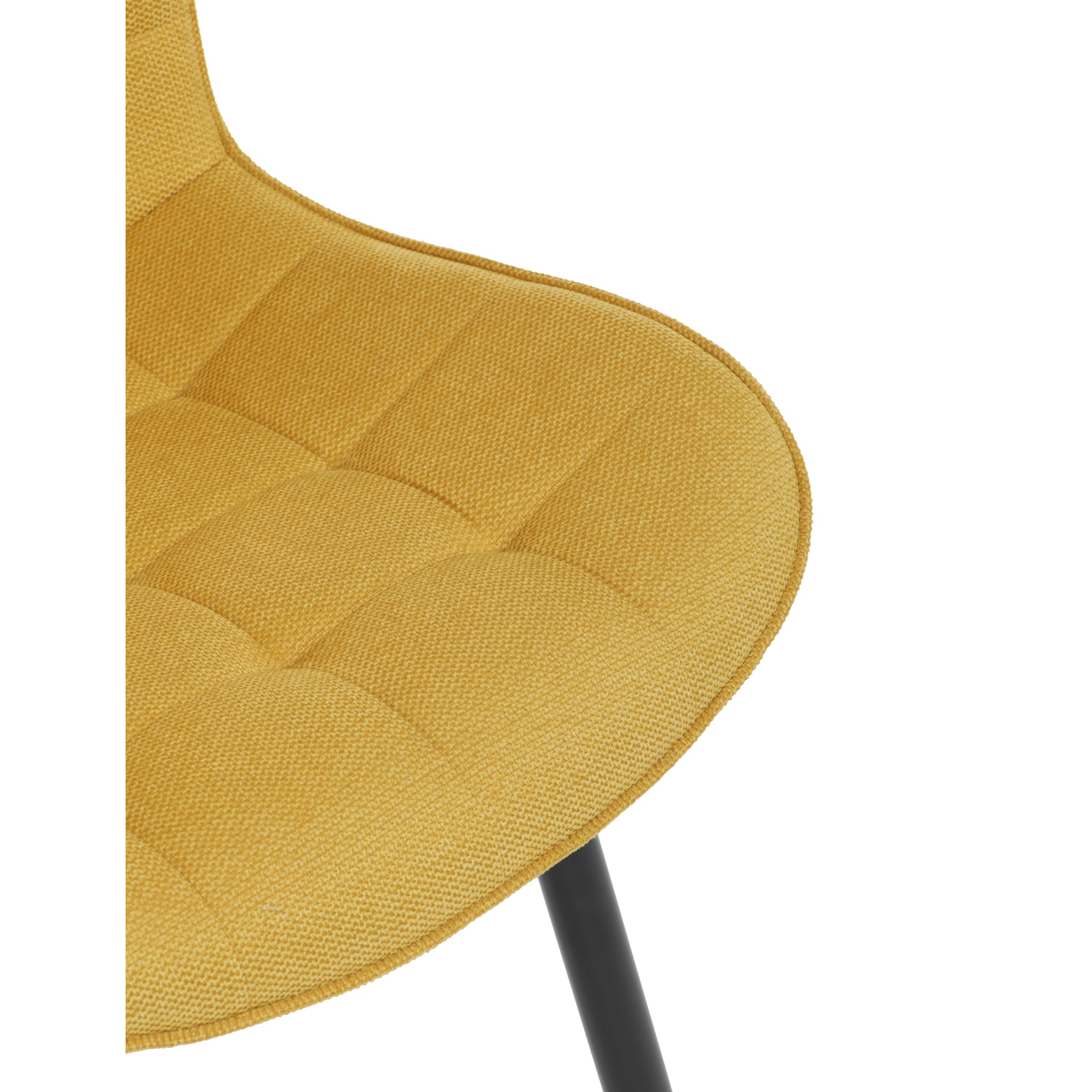 Škrupina je čalúnená príjemnou tkaninou s jemnou štruktúrou ozdobenou dekoratívnym prešívaním, ktoré dotvára elegantný vzhľad stoličky. Maximálne pohodlie zaisťuje penová výplň z polyuretánu. Základom celej konštrukcie sú robustné, kovové nohy v čiernom farebnom vyhotovení zaisťujúce celkovú stabilitu a odolnosť.