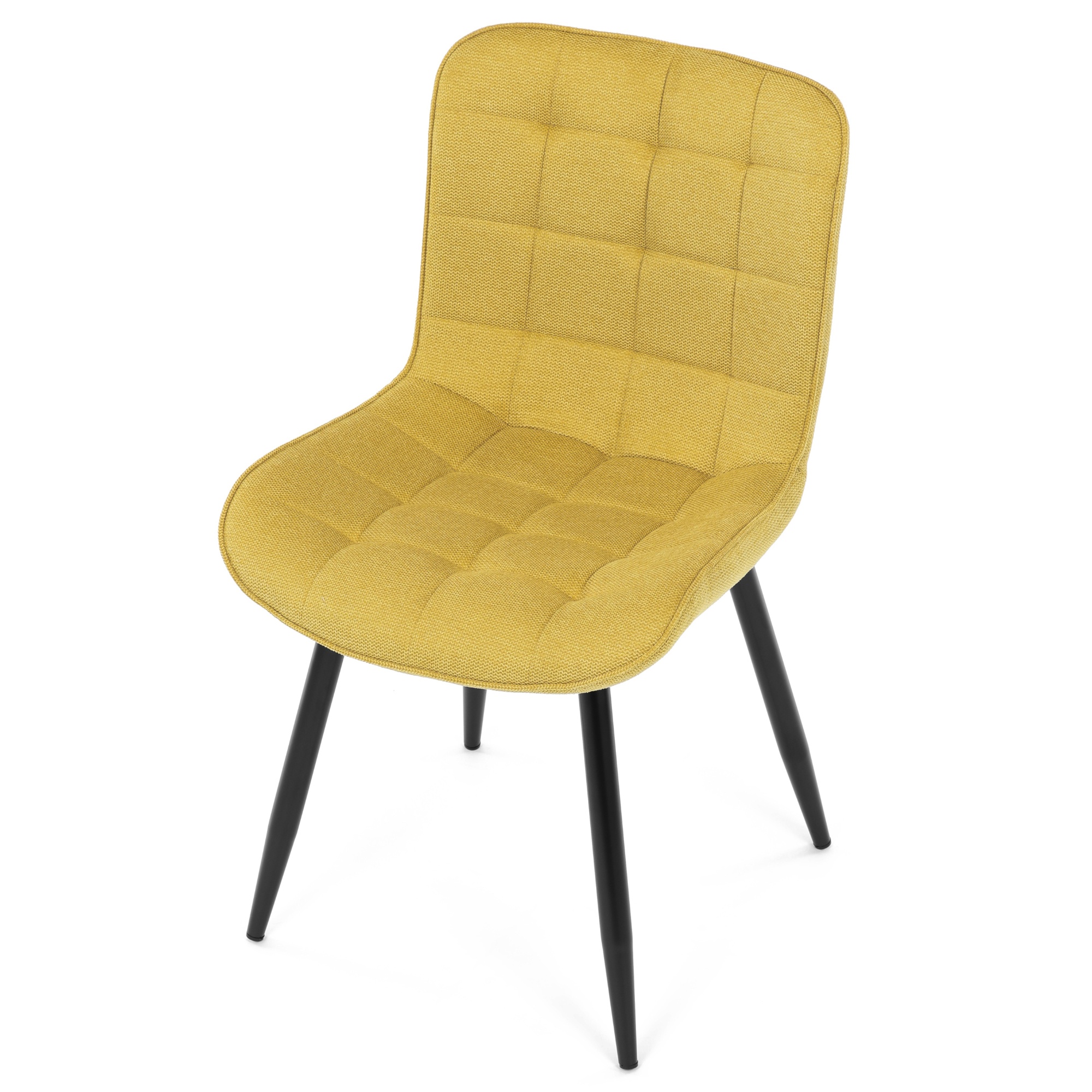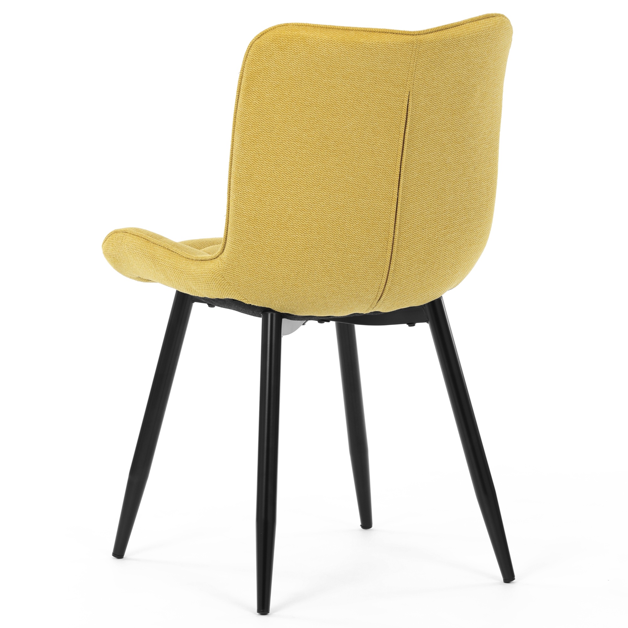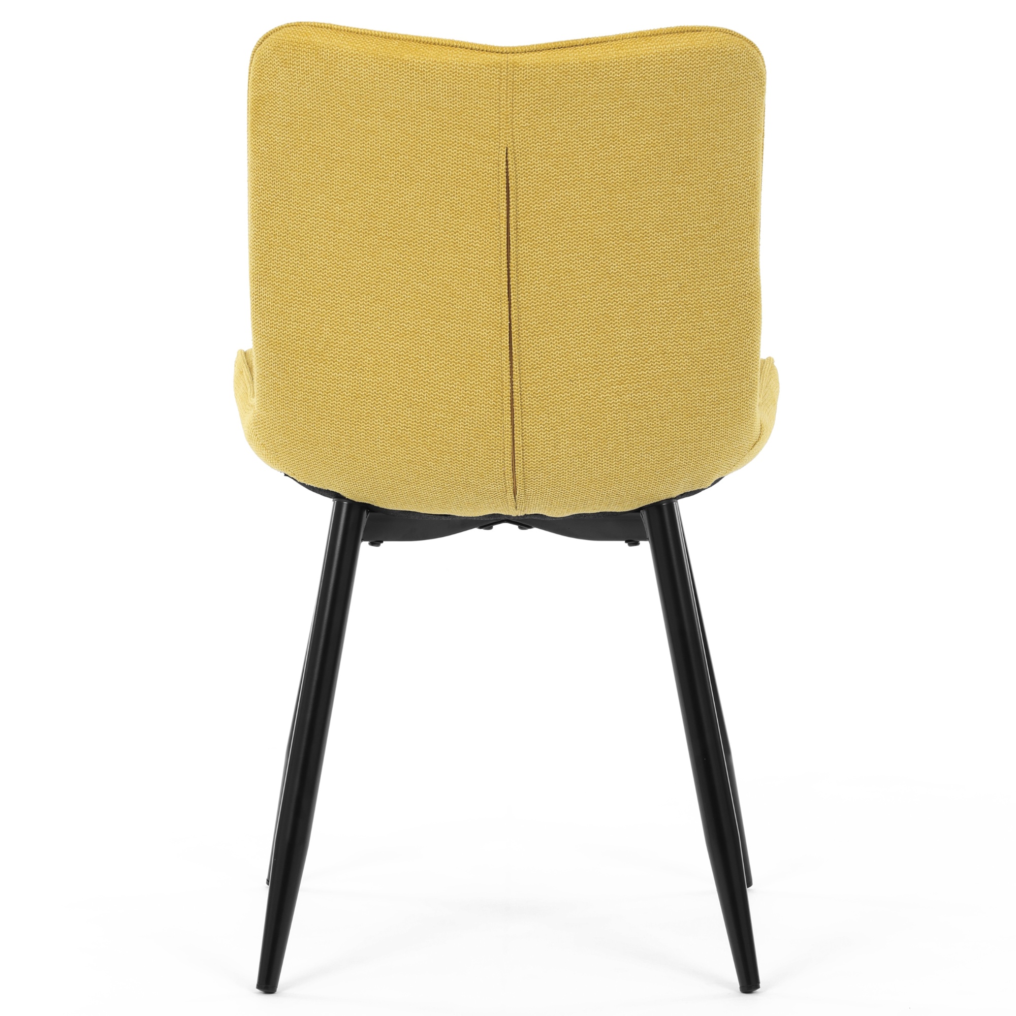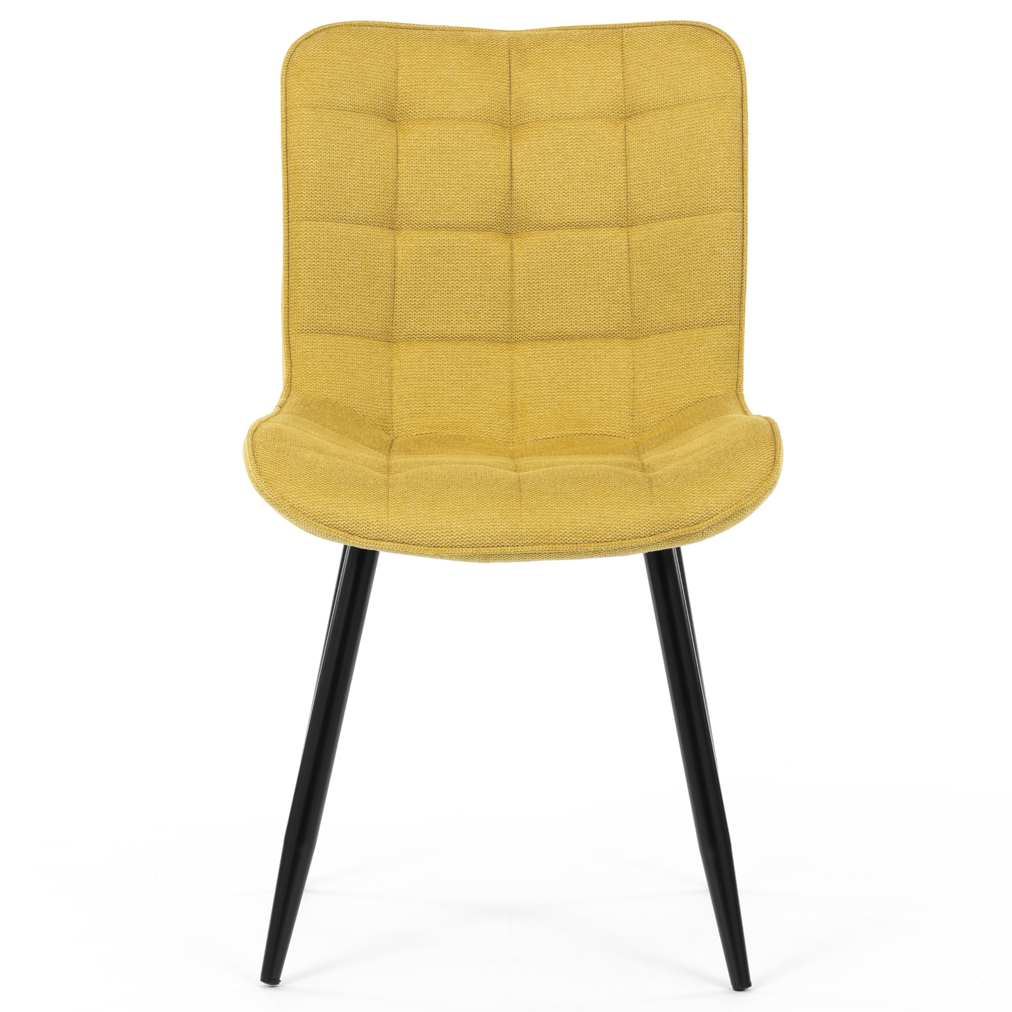 Škrupina je čalúnená príjemnou tkaninou s jemnou štruktúrou ozdobenou dekoratívnym prešívaním, ktoré dotvára elegantný vzhľad stoličky. Maximálne pohodlie zaisťuje penová výplň z polyuretánu. Základom celej konštrukcie sú robustné, kovové nohy v čiernom farebnom vyhotovení zaisťujúce celkovú stabilitu a odolnosť.