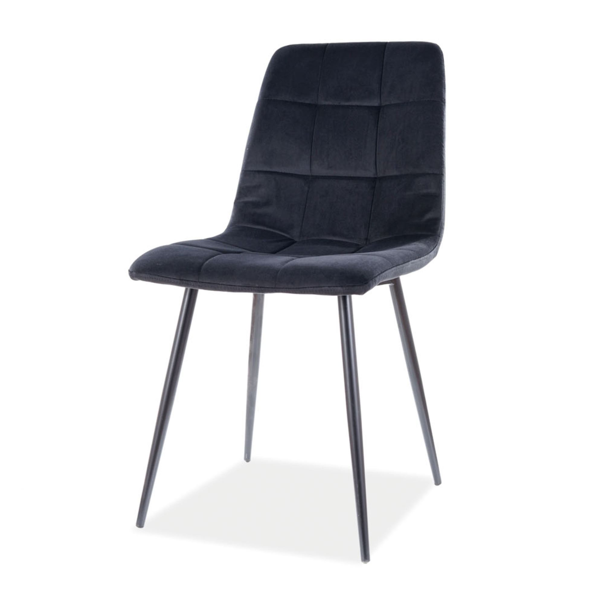 Jej konštrukcia je vybavená sedadlom a chrbtovým operadlom s mäkkou, penovou výplňou na komfortné sedenie. Tie sú navyše potiahnuté na dotyk príjemnou hladkou tkaninou zo 100% polyesteru ktorej povrch pripomína zamat. Pre zaujímavejší vzhľad je čalúnenie doplnené o výrazné dekoratívne prešívanie. Časť na sedenie podopiera štvornohá podnož z čierneho matného kovu.