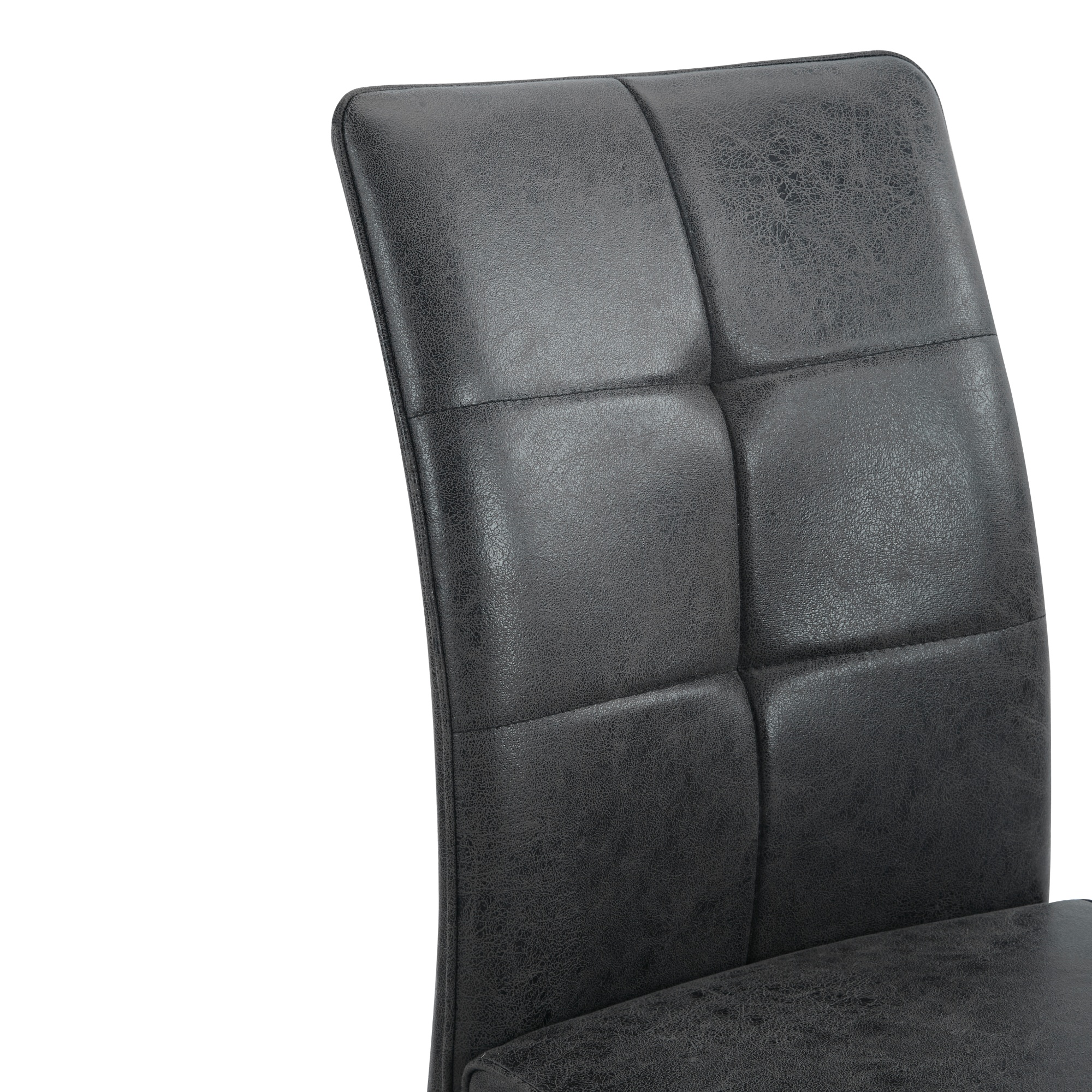 Stabilná konštrukcia stoličiek je vyrobená z kovu a má práškovo lakovaný povrch. O pohodlné sedenie sa starajú mäkké penové sedáky. Stoličky sú čalúnené mikrovláknom a zdobí ich štýlové prešívanie.