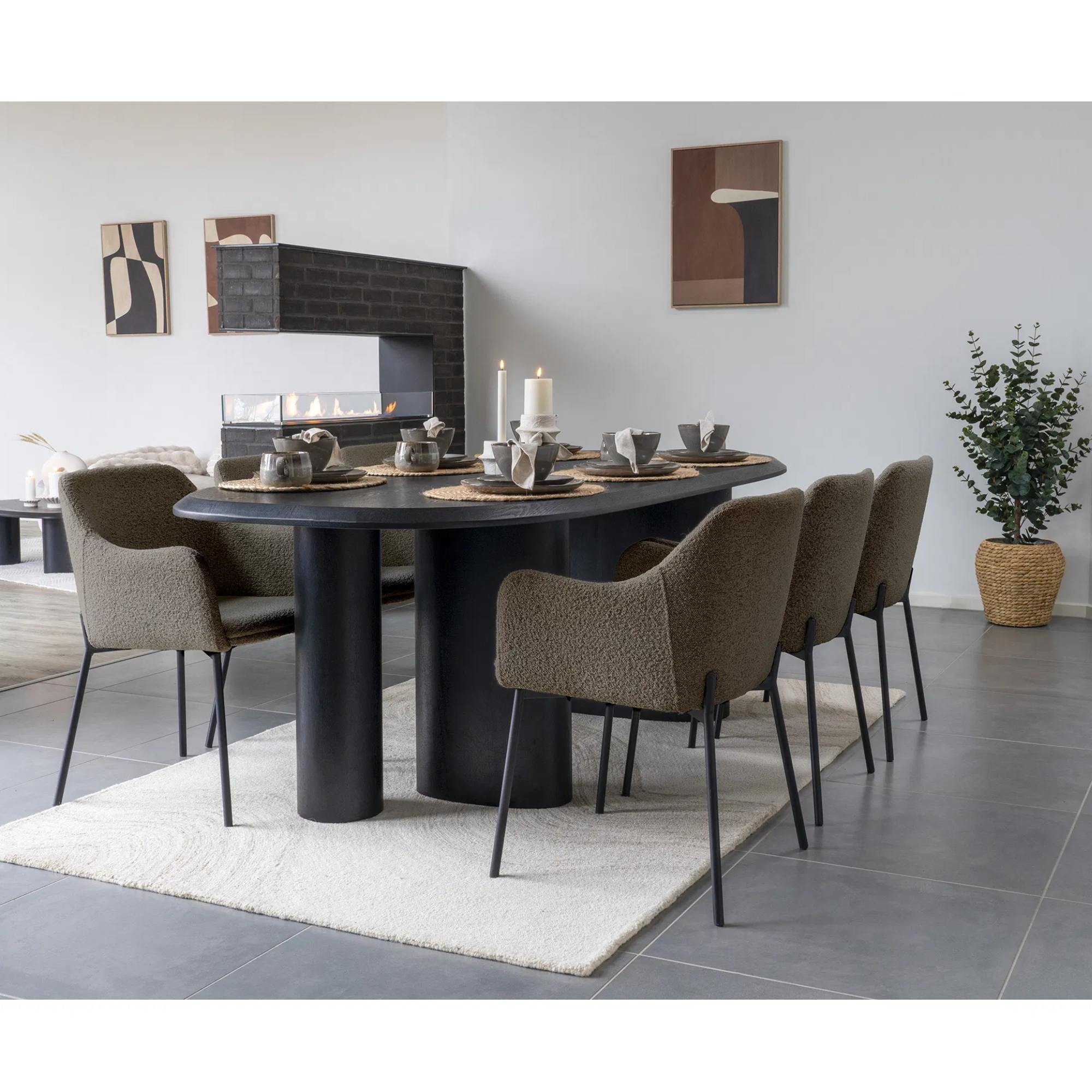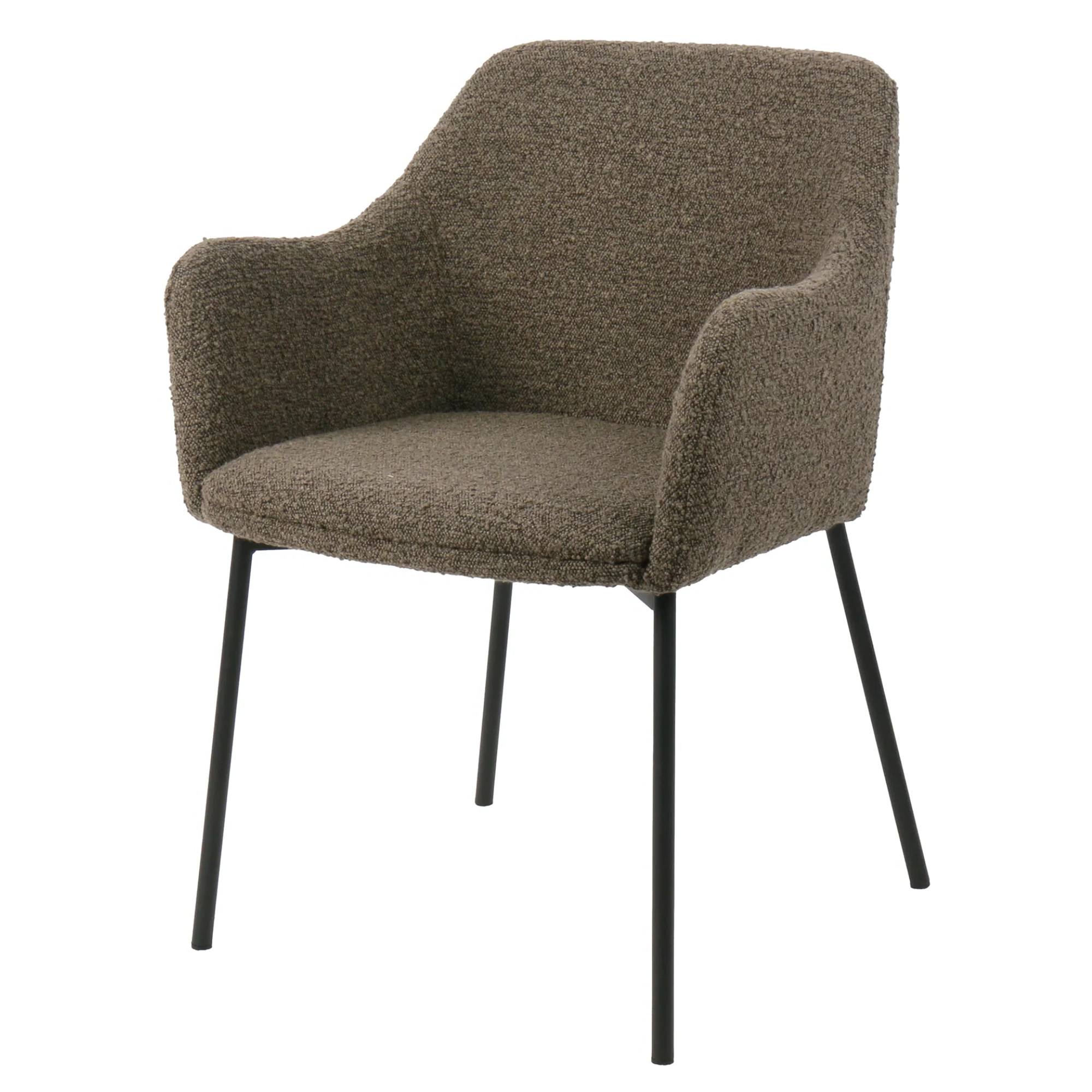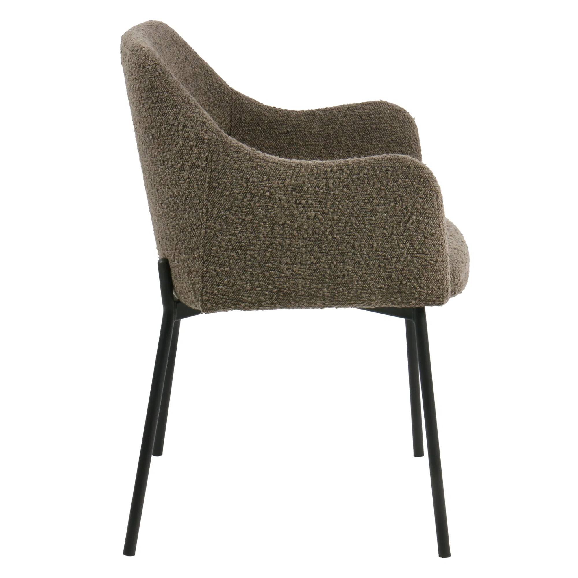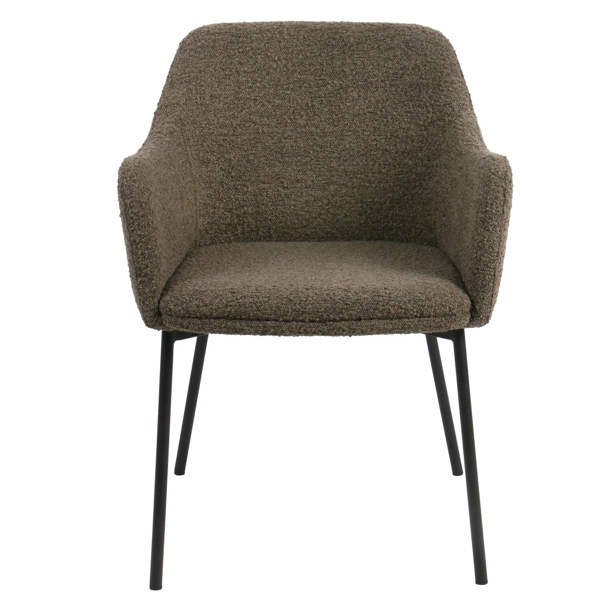 Stabilitu celej konštrukcie zaisťuje štvorica nôh z čierneho matného kovu. Pohodlie obstará škrupina s podrúčkami na unavené ruky, ktorá je čalúnená príjemnou tkaninou typu bouclé v klasickom vyhotovení.