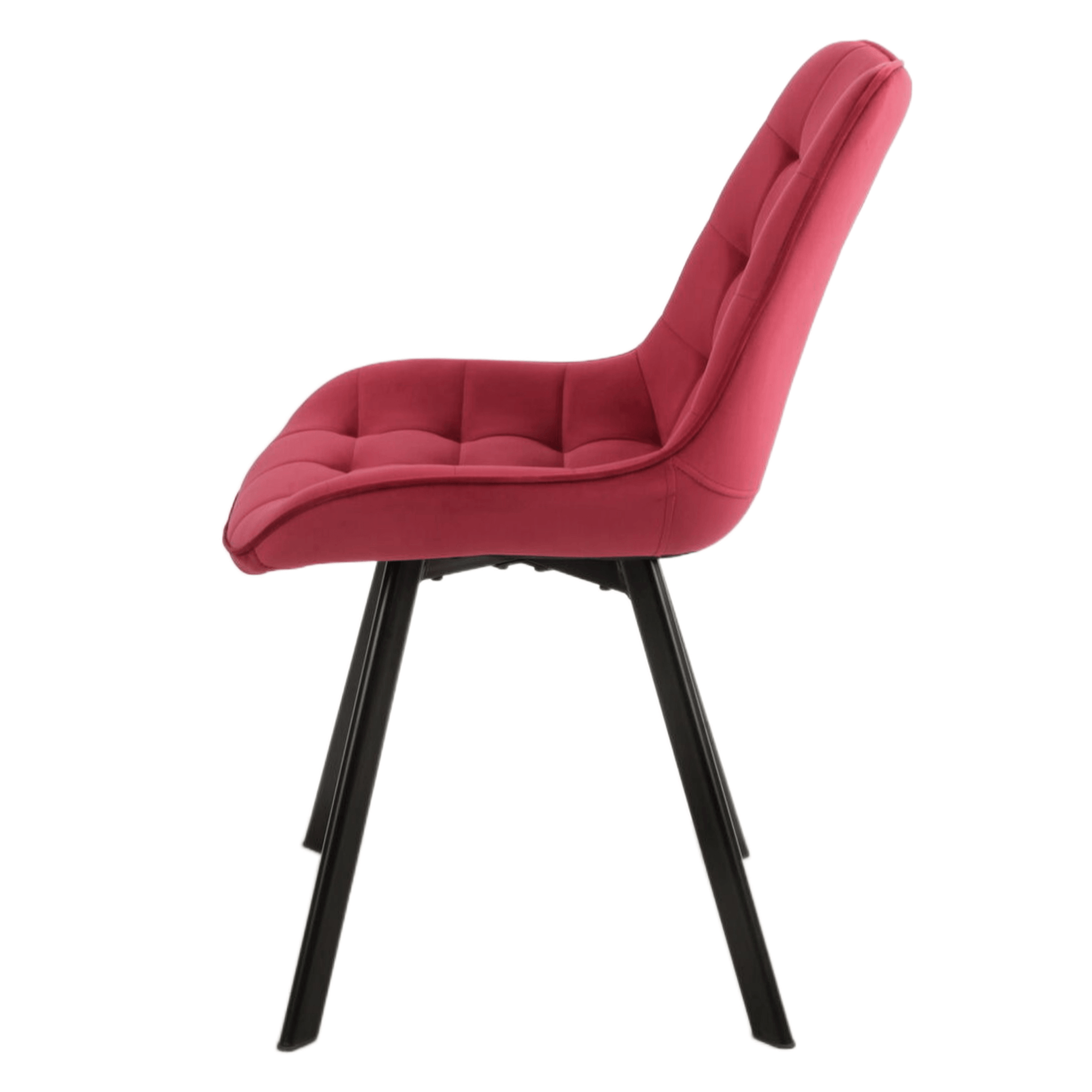 Maximálny komfort je dosiahnutý čalúnením sedadla a chrbtovej opierky – spoločným menovateľom je čalúnenie z kvalitnej hladkej tkaniny zamatového vzhľadu s dekoratívnym prešívaním. Stabilitu zaisťuje podnož z práškovo lakovanej ocele.