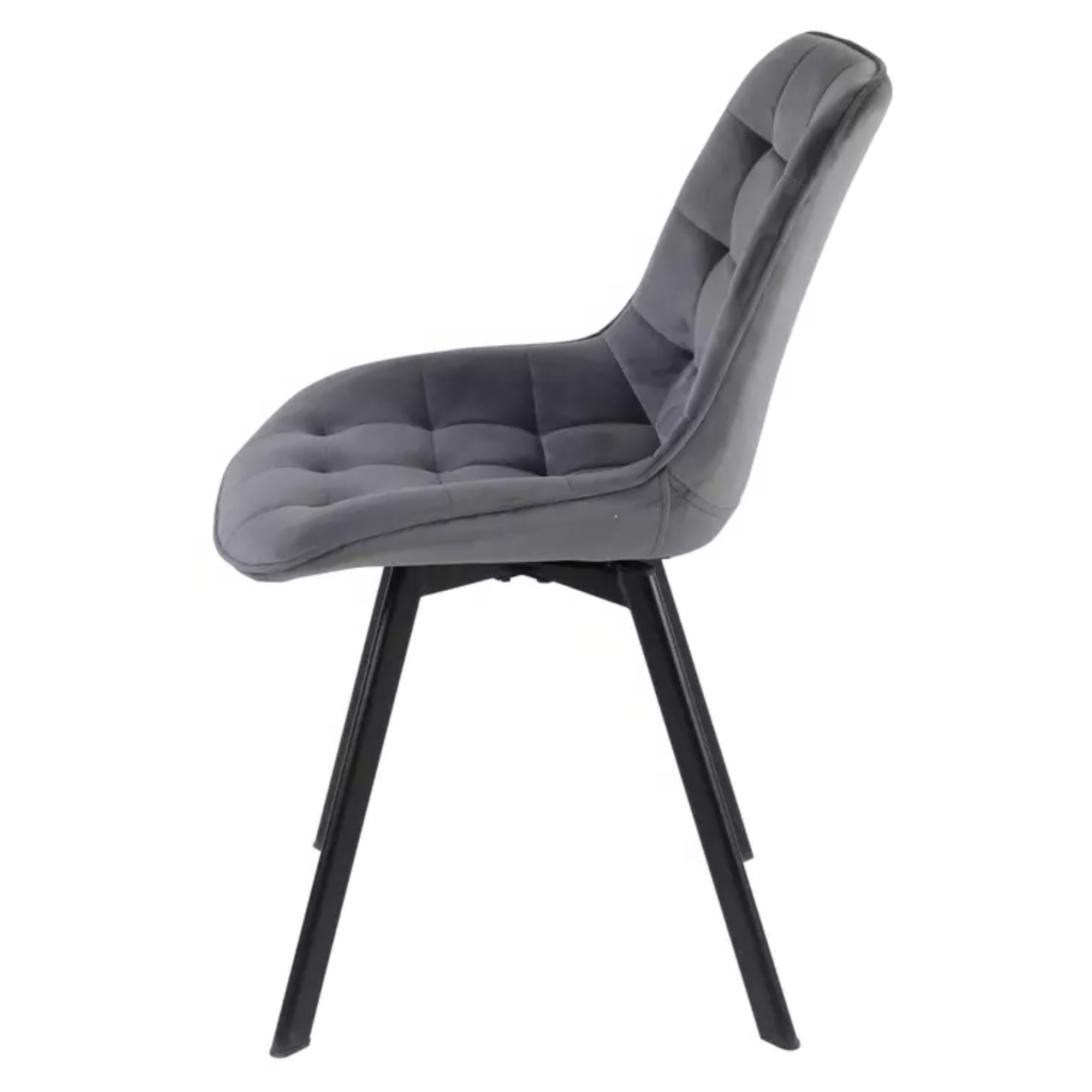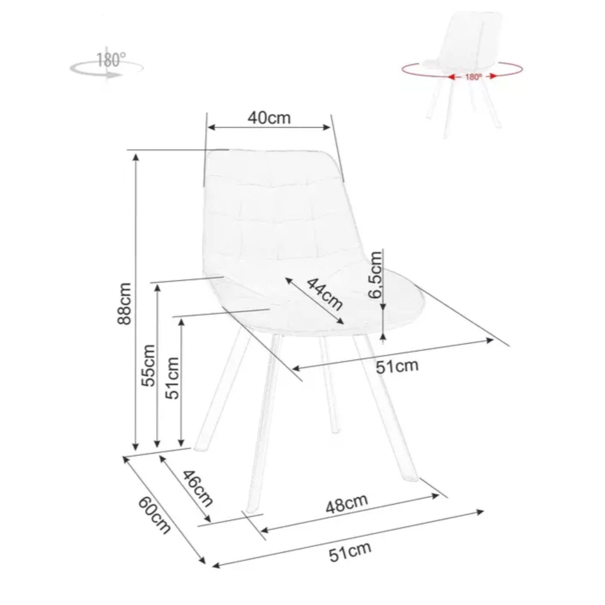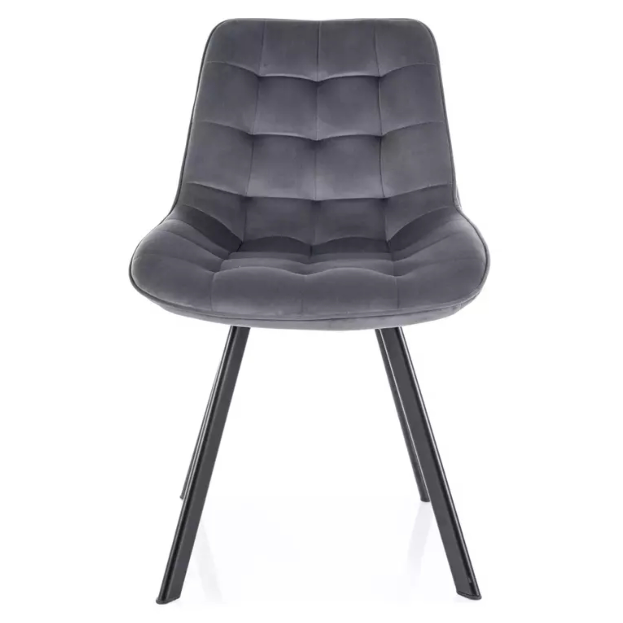 Stolička je čalúnená hladkou tkaninou zamatového typu príjemnou na dotyk a zdobí ju elegantné prešívanie. O pohodlie pri sedení sa stará mäkké penové sedadlo. Stabilitu stoličky zaisťuje pevná kovová konštrukcia.