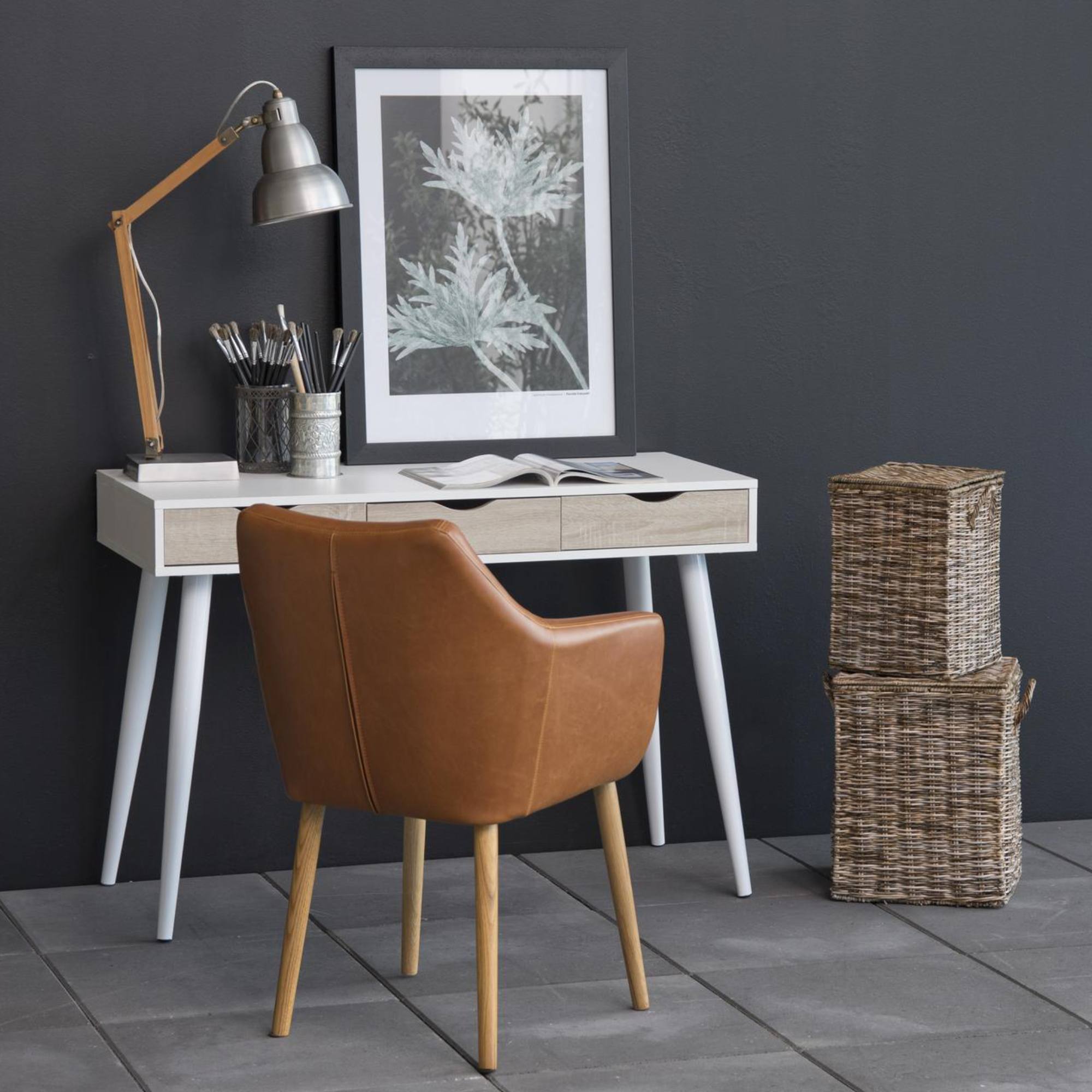 Táto stolička disponuje pevnou a stabilnou konštrukciou, na výrobu ktorej bolo použité masívne dubové drevo. Zárukou pohodlného sedenia je nielen mäkké penové sedadlo potiahnuté syntetickou kožou, ale aj praktické podrúčky.
