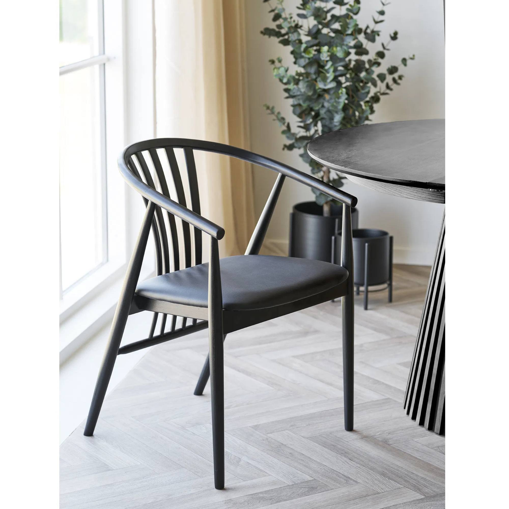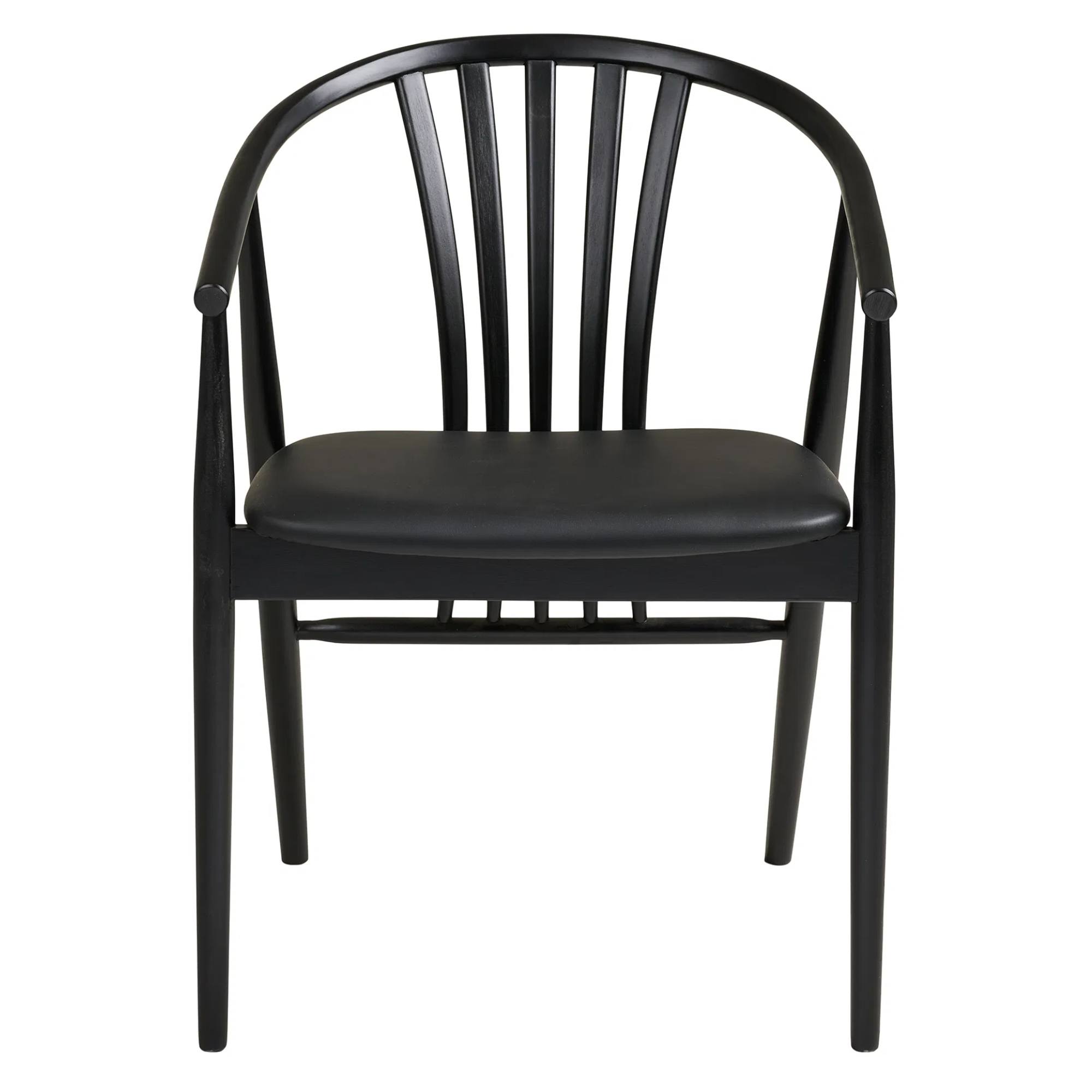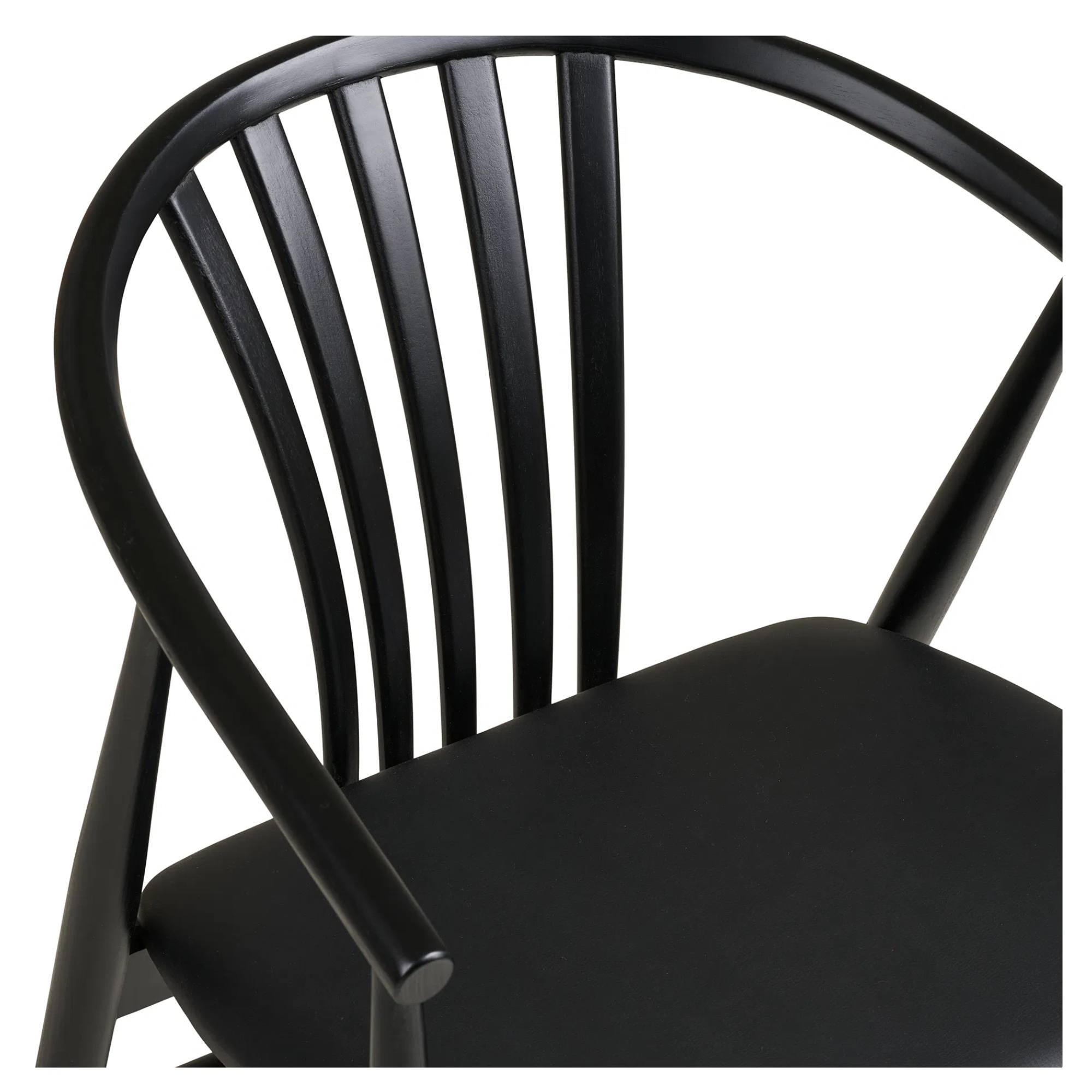 Stolička má pevnú konštrukciu z masívneho dreva, ktorá je zárukou jej stability. K pohodlnému sedeniu prispieva nielen mäkký penový sedák, ale aj praktické podrúčky.