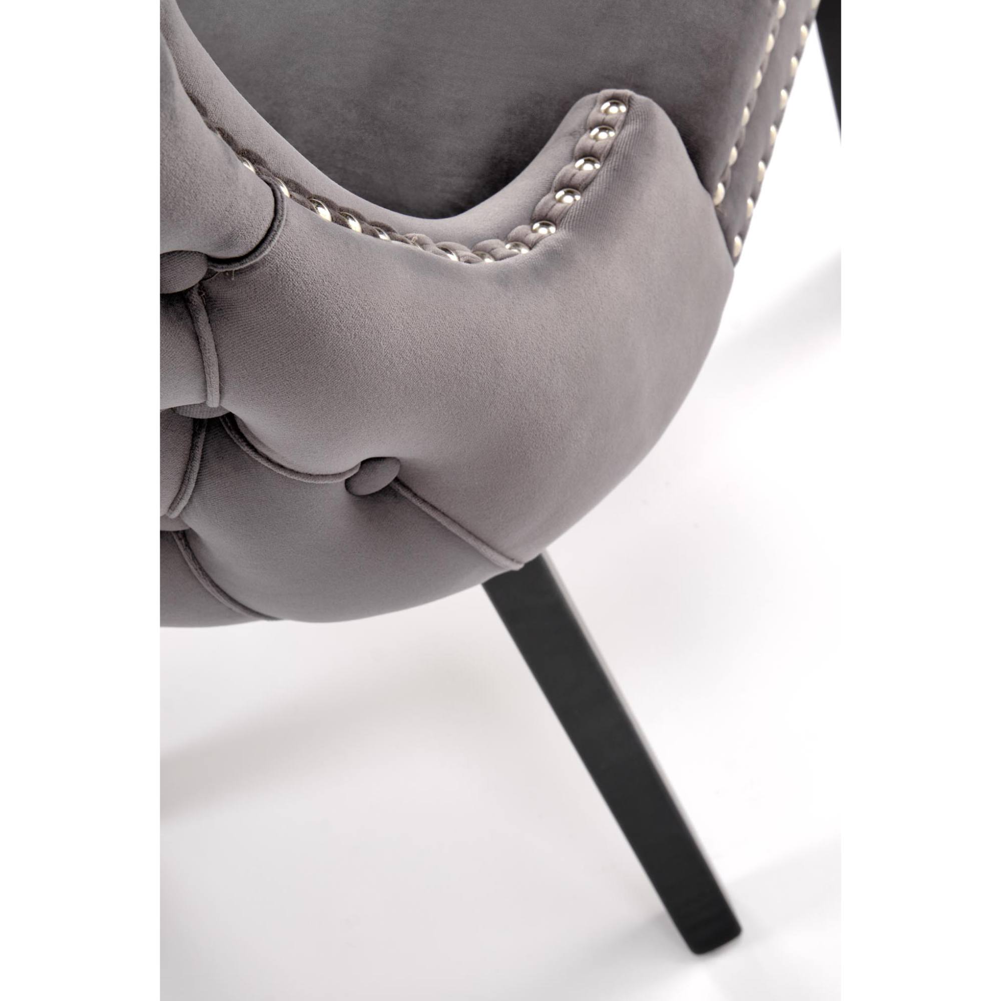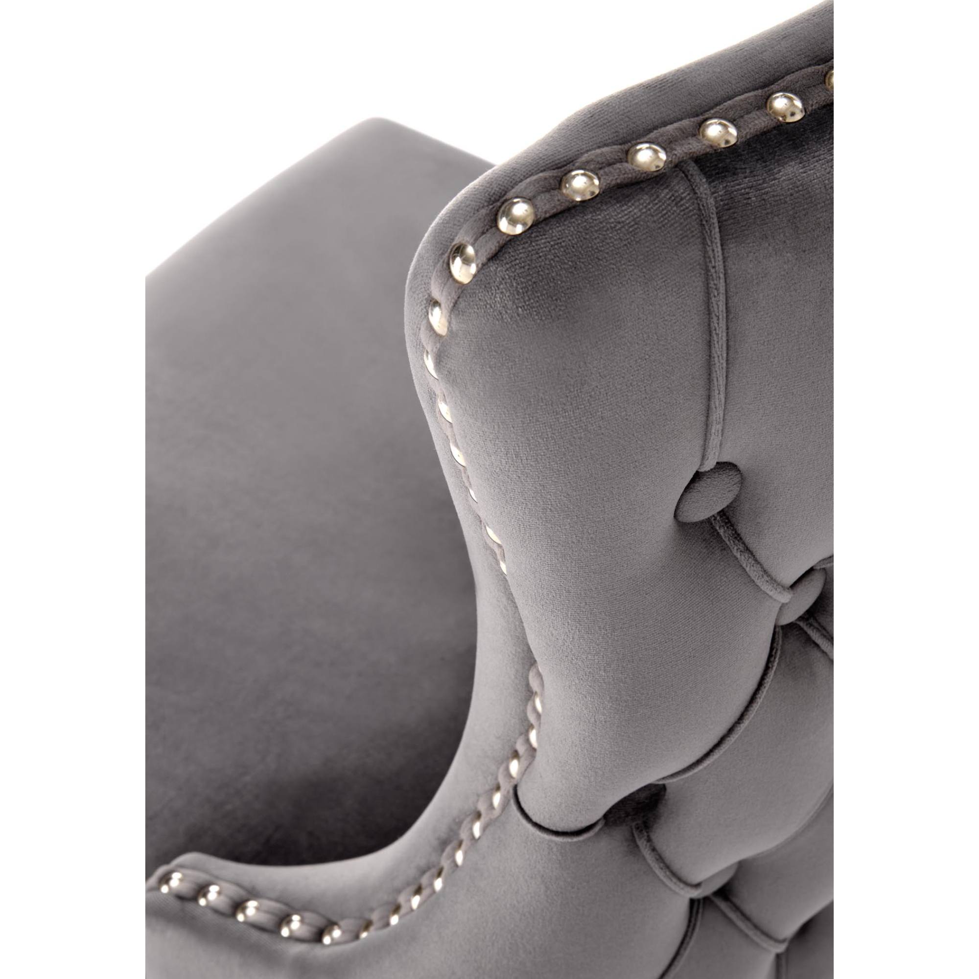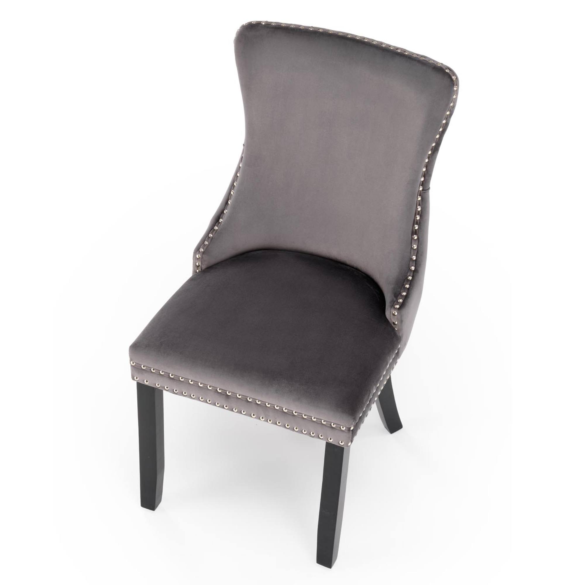 Stolička zaujme na prvý pohľad vďaka svojmu bohatému zdobeniu. Po jej obvode sa nachádzajú cvočky a zadnú stranu operadla zdobia elegantné prešívanie a gombíky potiahnuté látkou vo farbe stoličky.