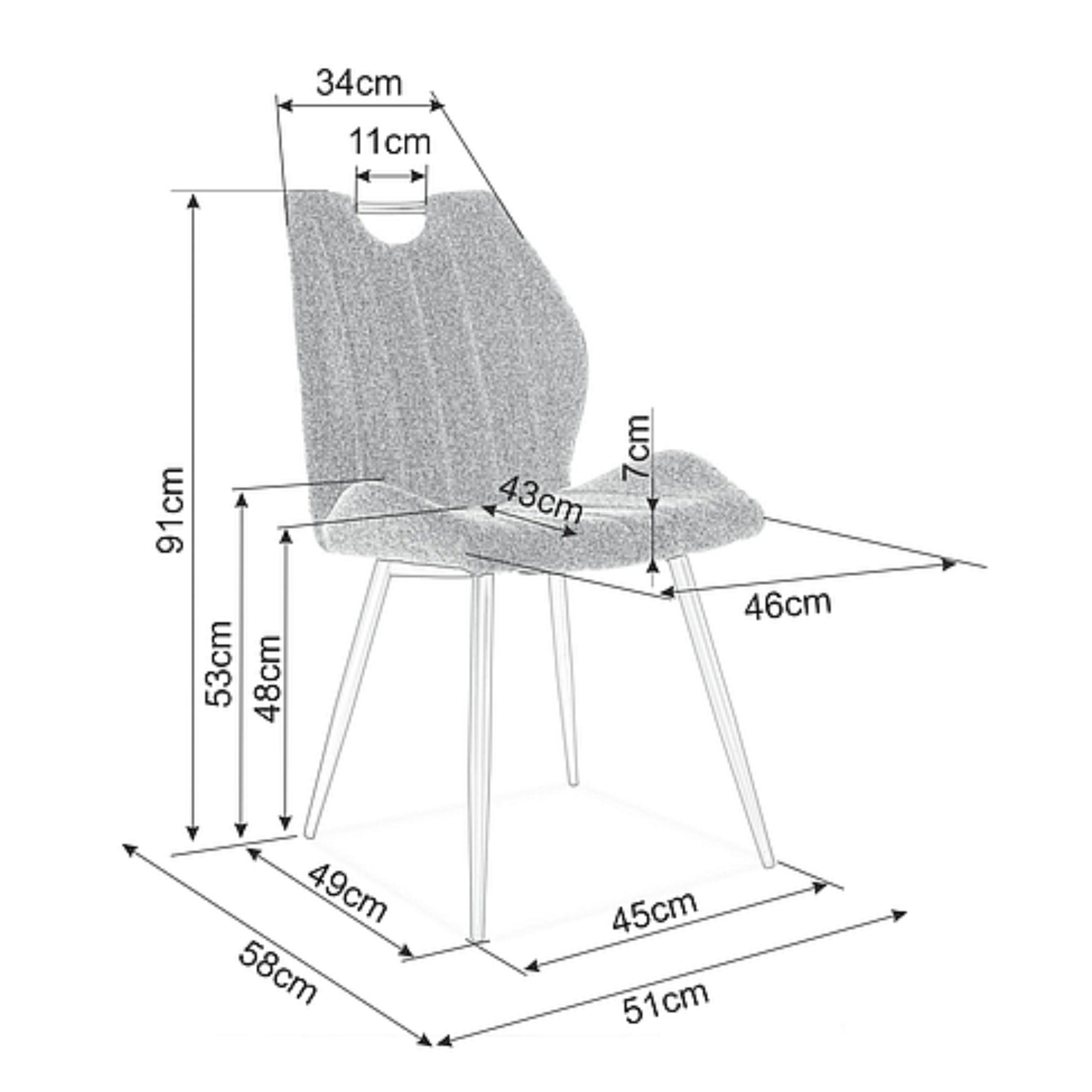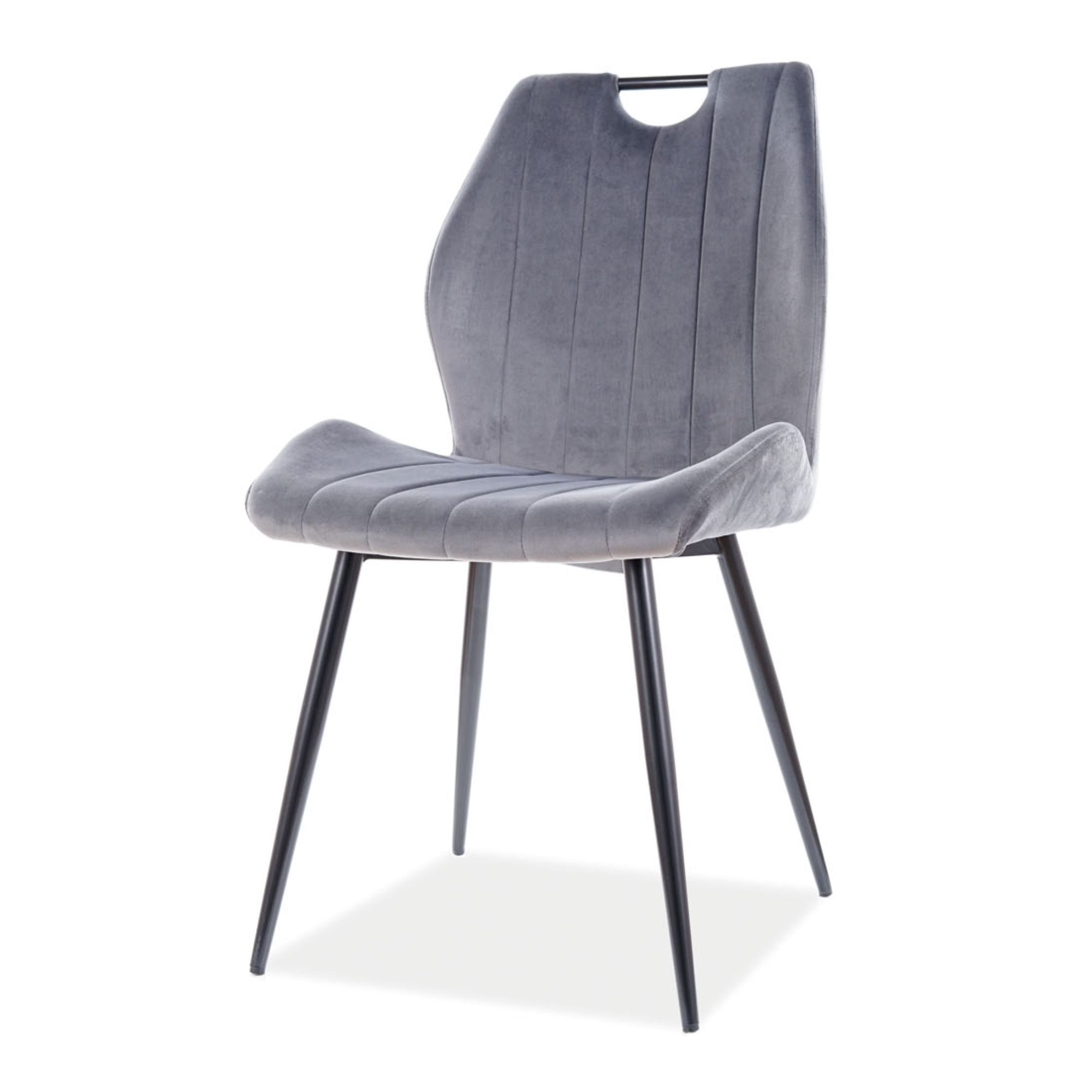 Maximálny komfort je dosiahnutý čalúnením sedadla a chrbtovej opierky z kvalitnej hladkej tkaniny zamatového vzhľadu s dekoratívnym prešívaním. Stabilitu zaisťuje podnož z práškovo lakovanej ocele. Stolička je navyše vybavená praktickým držadlom, ktoré uľahčuje manipuláciu. Sadnite si pohodlne na jedálenskú stoličku ORCU.