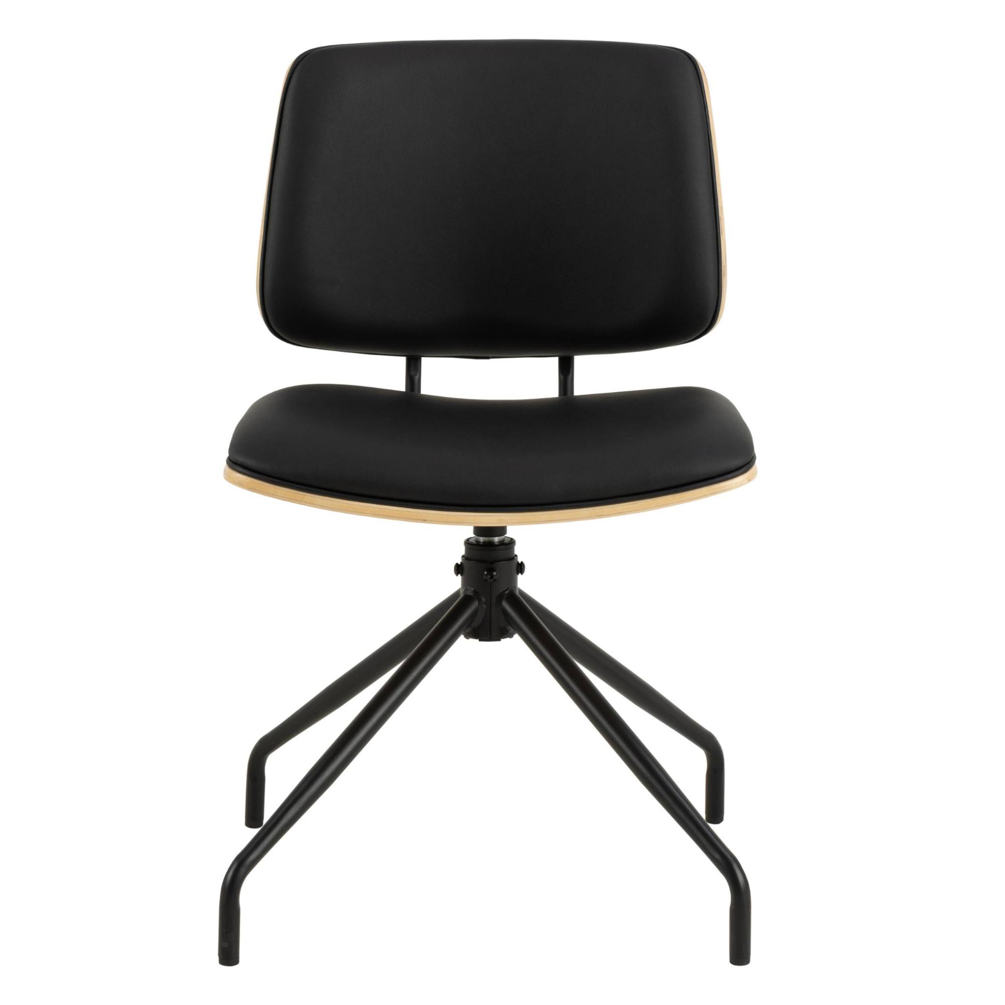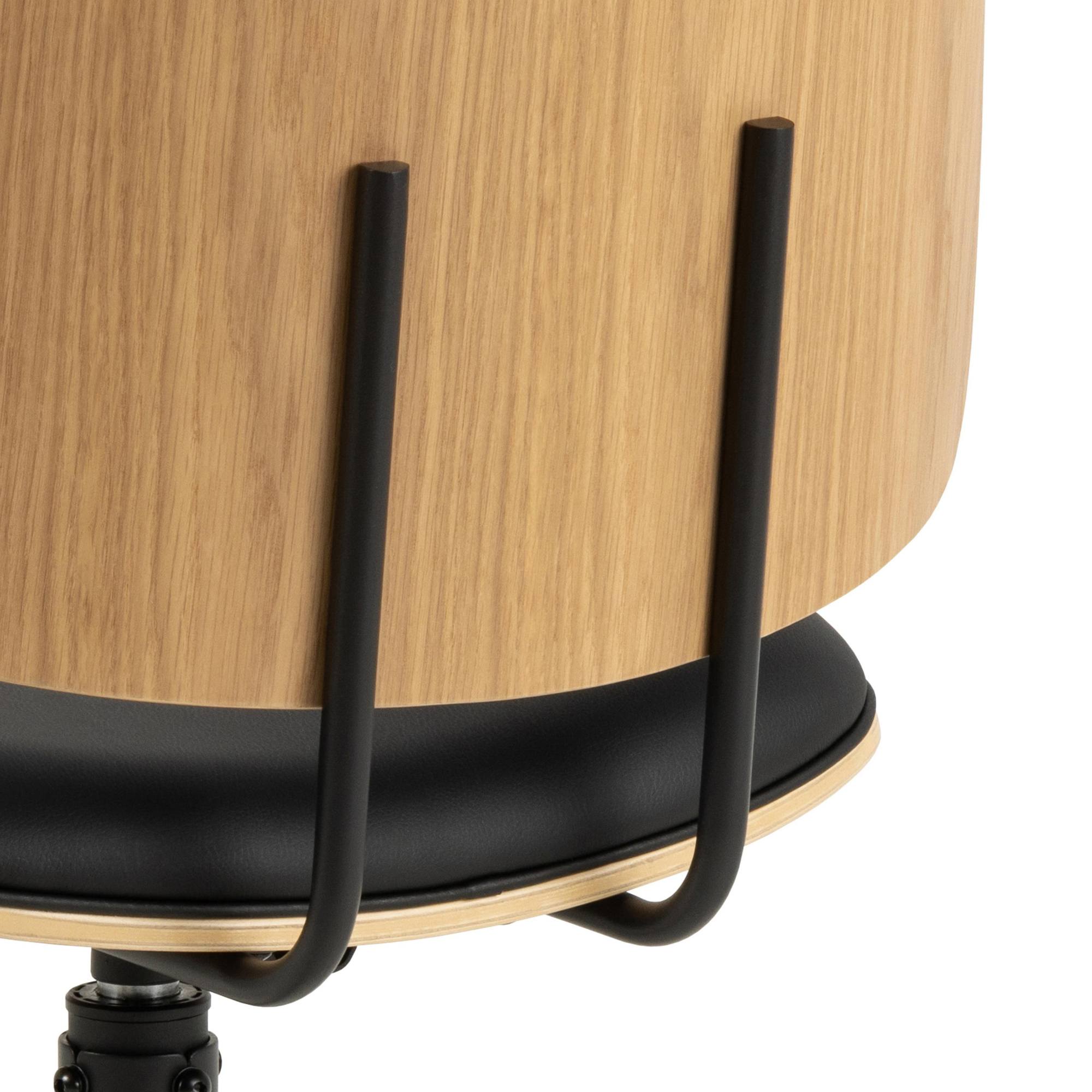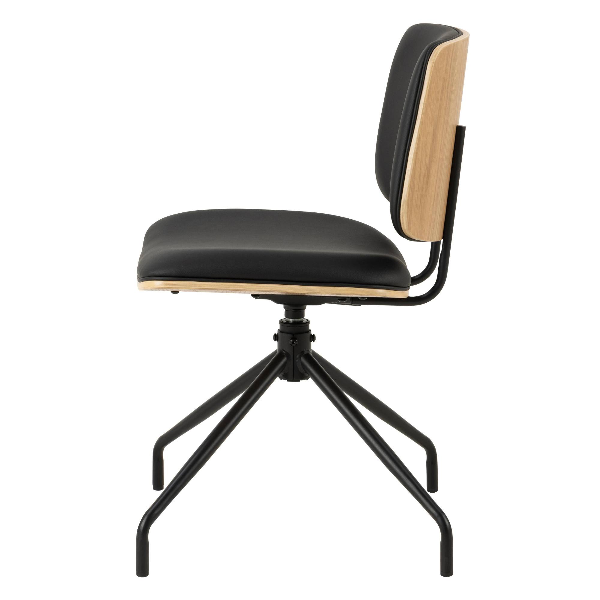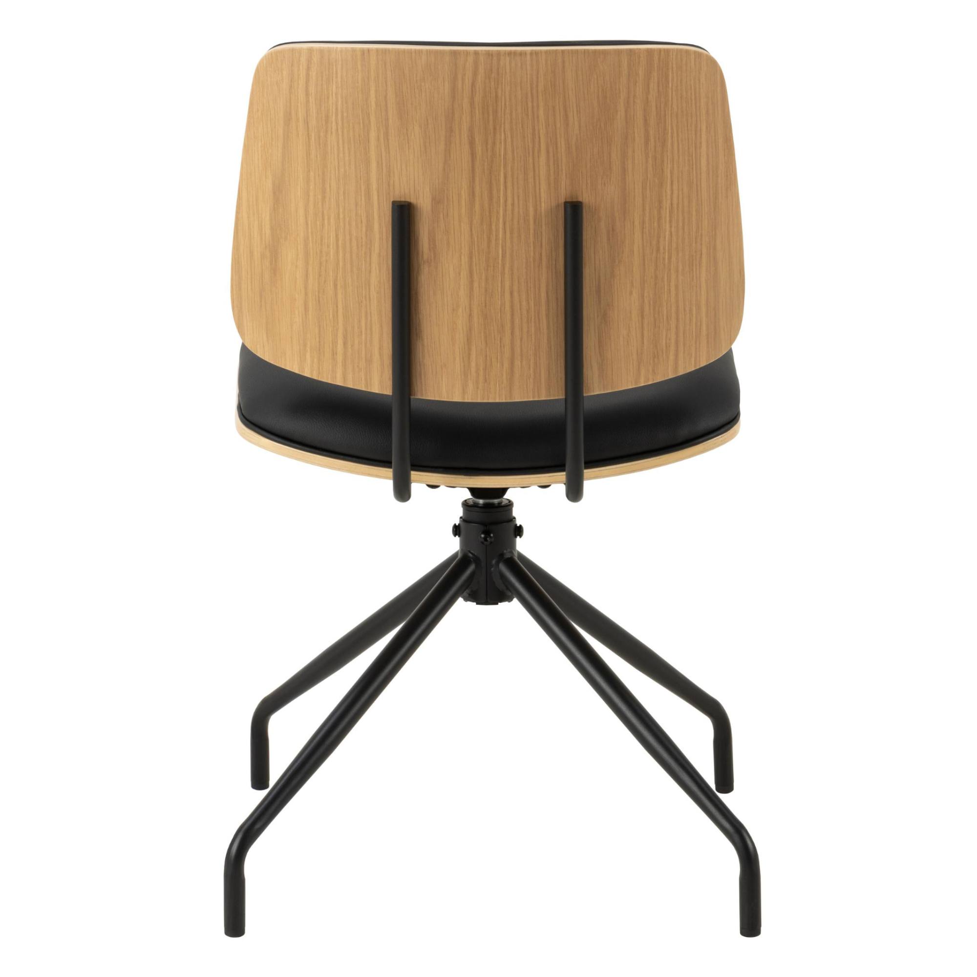 Stolička stojí na pevných a stabilných nohách, ktoré sú vyrobené z práškovo lakovanej ocele. Operadlo je z dreveného materiálu doplneného dubovou dyhou. Stolička je čalúnená syntetickou kožou a má mäkký penový sedák, ktorý zaisťuje pohodlné sedenie.