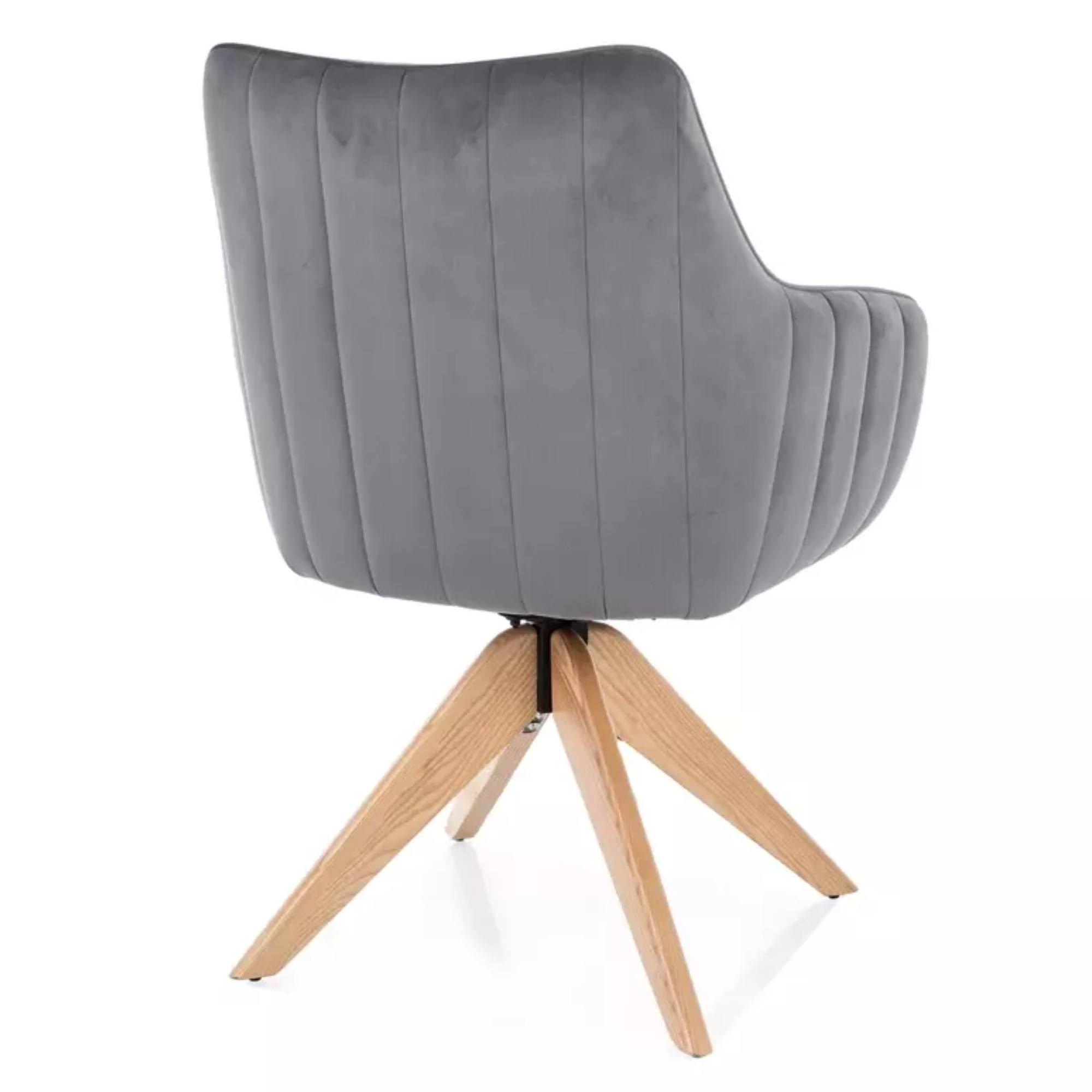 Sedák je spolu s operadlom potiahnutý na dotyk príjemnou hladkou tkaninou. Čalúnenie je doplnené o dekoratívne prešívanie, ktoré vytvára luxusnejší vzhľad. Maximálne pohodlie počas sedenia podporuje mäkká penová výplň a podrúčky. Sedaciu časť podopiera štvorica nôh z masívneho jaseňového dreva.