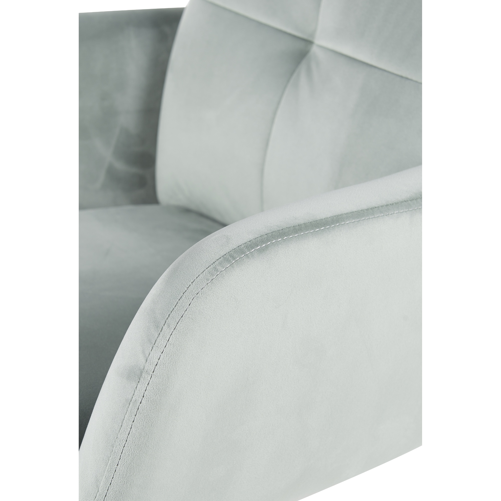 Konštrukcia, ktorá zaisťuje stabilitu tejto stoličky, je vyrobená z kovu. Povrch konštrukcie je práškovo lakovaný. O pohodlné sedenie sa starajú mäkké penové sedáky. Stoličky sú čalúnené hladkou tkaninou zamatového typu, ktorá je príjemná na dotyk.