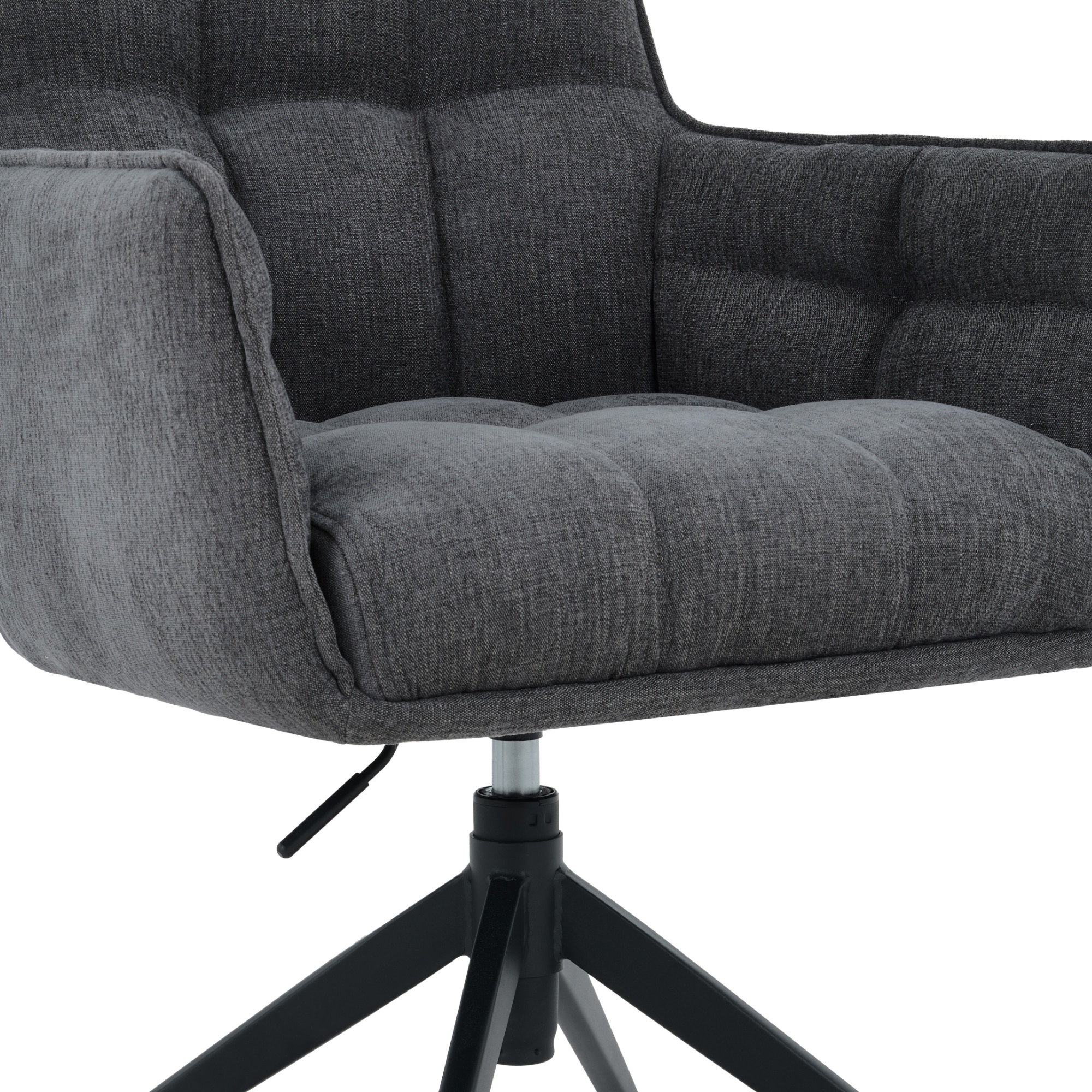 Stabilná konštrukcia tejto stoličky je vyrobená z kovu a jej povrch je práškovo lakovaný. Pohodlné sedenie zaisťujú nielen podrúčky, ale aj mäkký penový sedák s pružinovým jadrom. Stolička je otočná o 360° a jej výška je nastaviteľná v rozmedzí 89 až 96 cm.