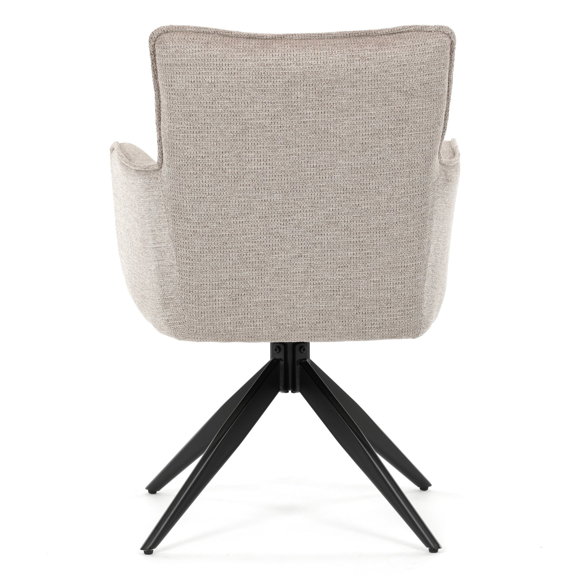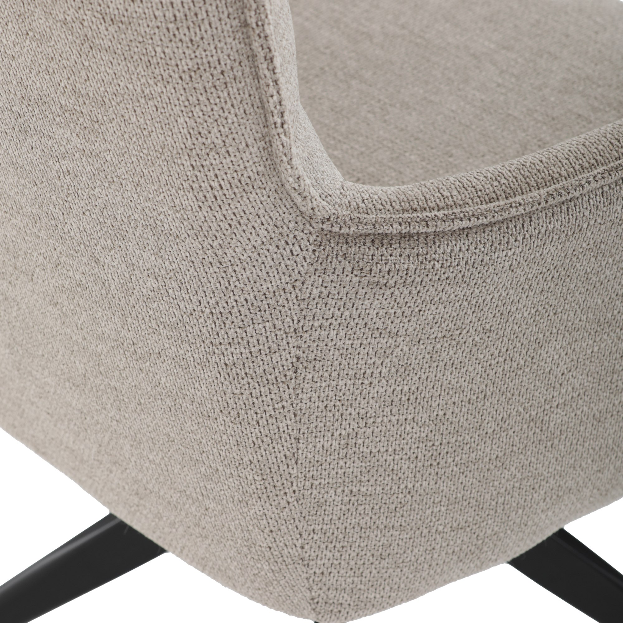 Poťah z vodoodolnej tkaniny zaručuje ľahkú údržbu a dlhú životnosť. Penové sedadlo je vybavené taštičkovými pružinami, ktoré zaisťujú maximálny komfort pri sedení. Stabilná centrálna kovová podnož zvýrazňuje moderný dizajn a dodáva stoličke jedinečný vzhľad.