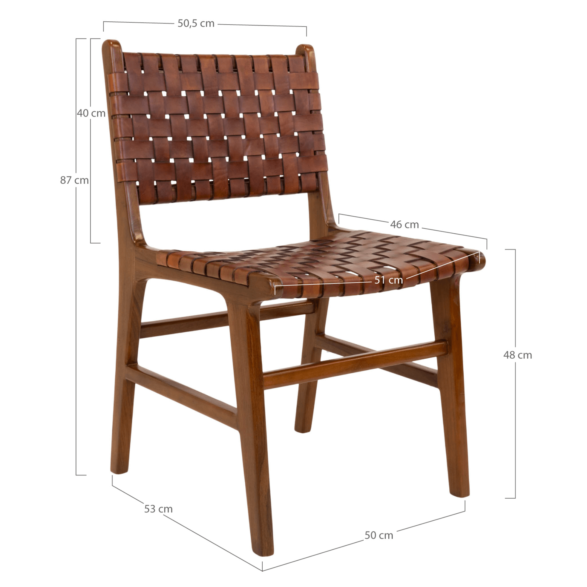 Dokonalé pohodlie počas sedenia vám zaistí sedadlo aj chrbtová opierka, ktoré sú prepletané koženými pásmi. Celá konštrukcia je vyrobená z masívneho teakového dreva, ktoré je pevným materiálom s vysokou odolnosťou proti drevokazným škodcom. Stolička vám tak bude pri správnom zaobchádzaní slúžiť mnoho rokov. Štvornohá podnož je doplnená o praktické priečky na odloženie nôh. Jedálenskú stoličku PIREGAO pre pohodlné a štýlové stolovanie si môžete vybrať z viacerých vyhotovení.