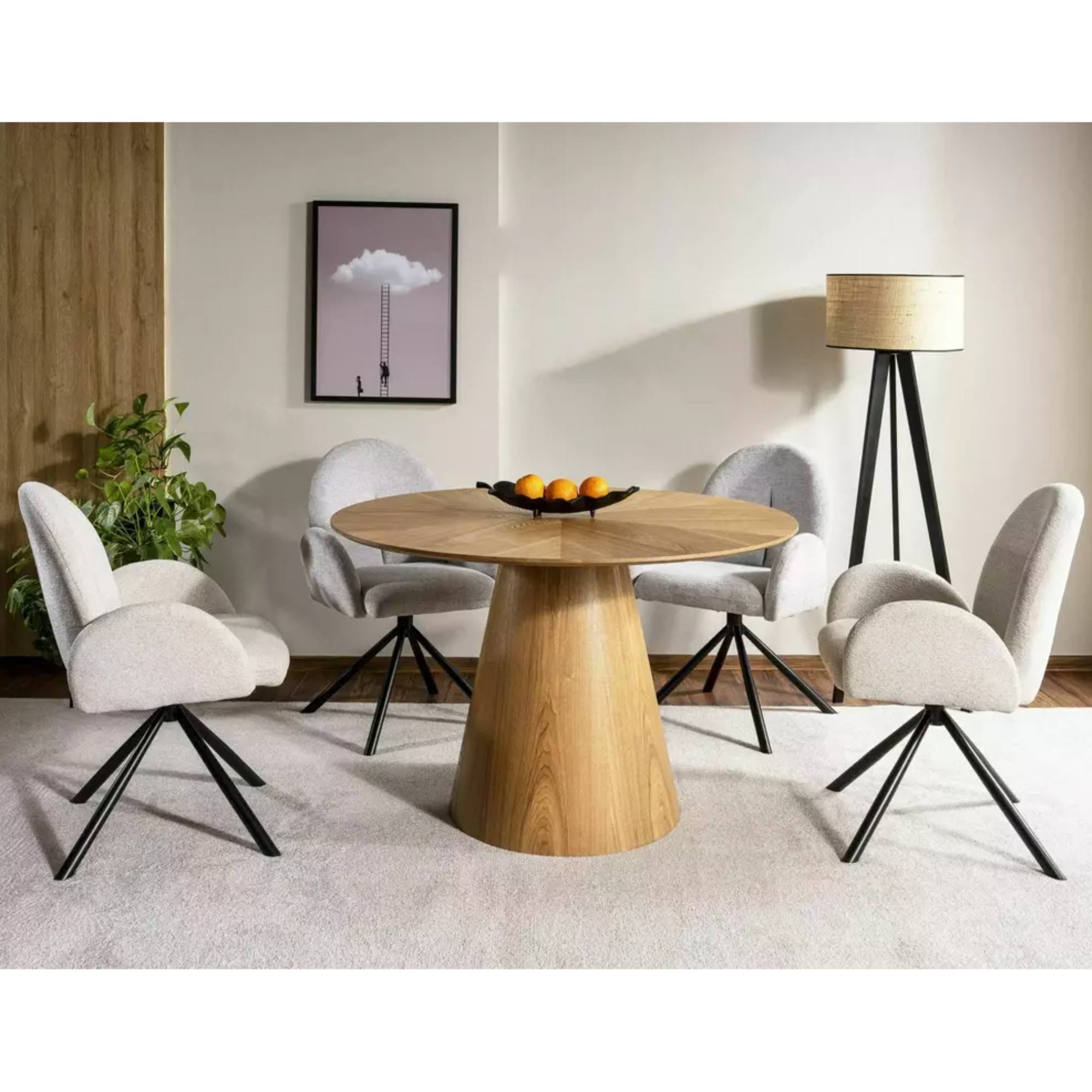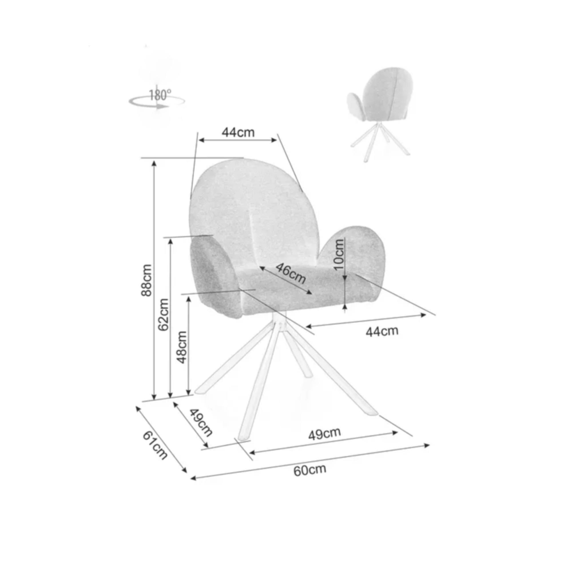 Táto stolička disponuje pevnou kovovou konštrukciou, ktorá vďačí za svoju stabilitu. Jej podnož je otočná o 180° a disponuje funkciou návratu do pôvodnej polohy. Aby sa na stoličke príjemne sedelo, je vybavená pohodlným penovým sedadlom potiahnutým tkaninou Raven.