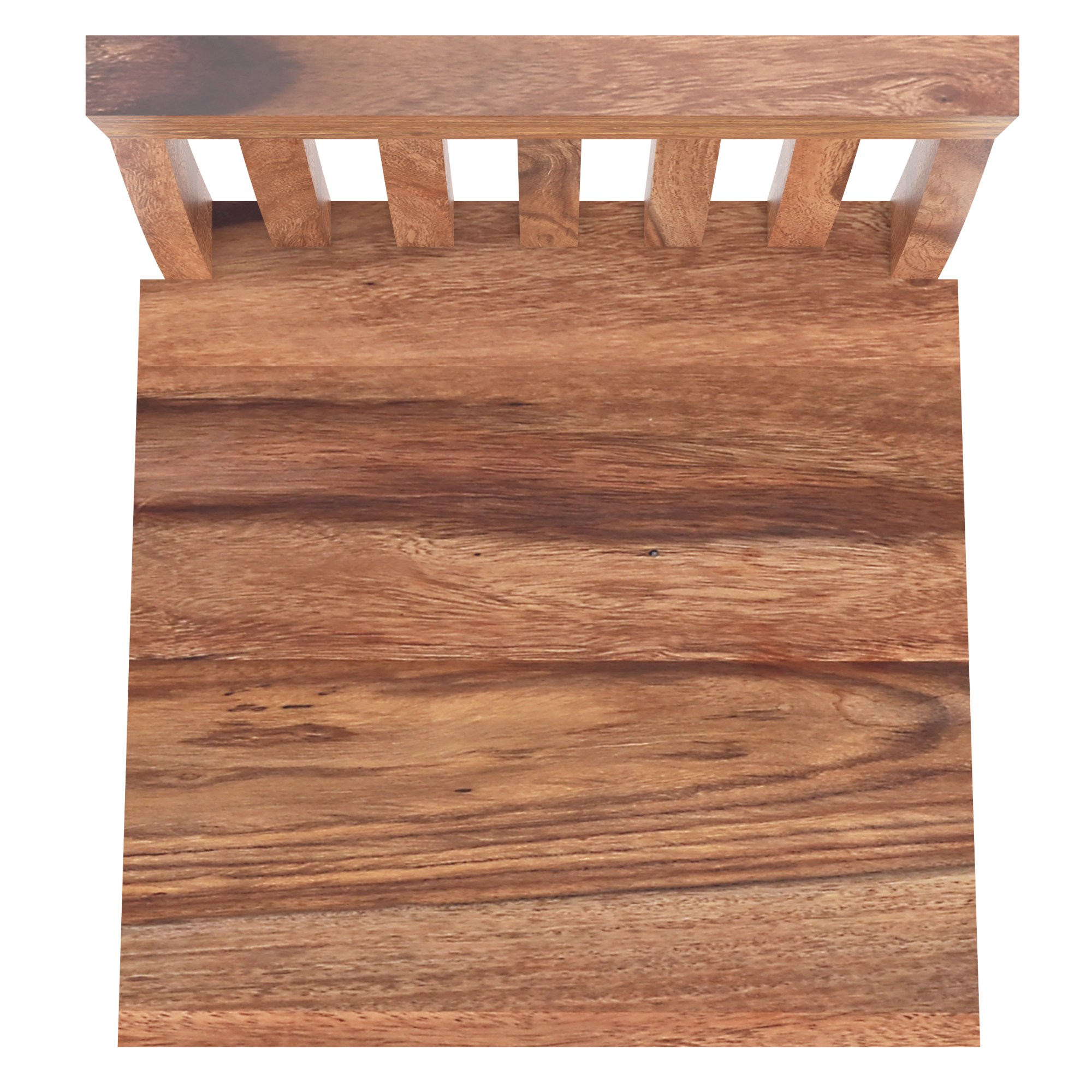 Pevná a stabilná konštrukcia tejto stoličky je vyrobená z masívneho palisandrového dreva a jej povrch je morený. Vďaka prirodzenej kresbe dreva a priznanej nedokonalosti je každý kus nábytku jedinečný.