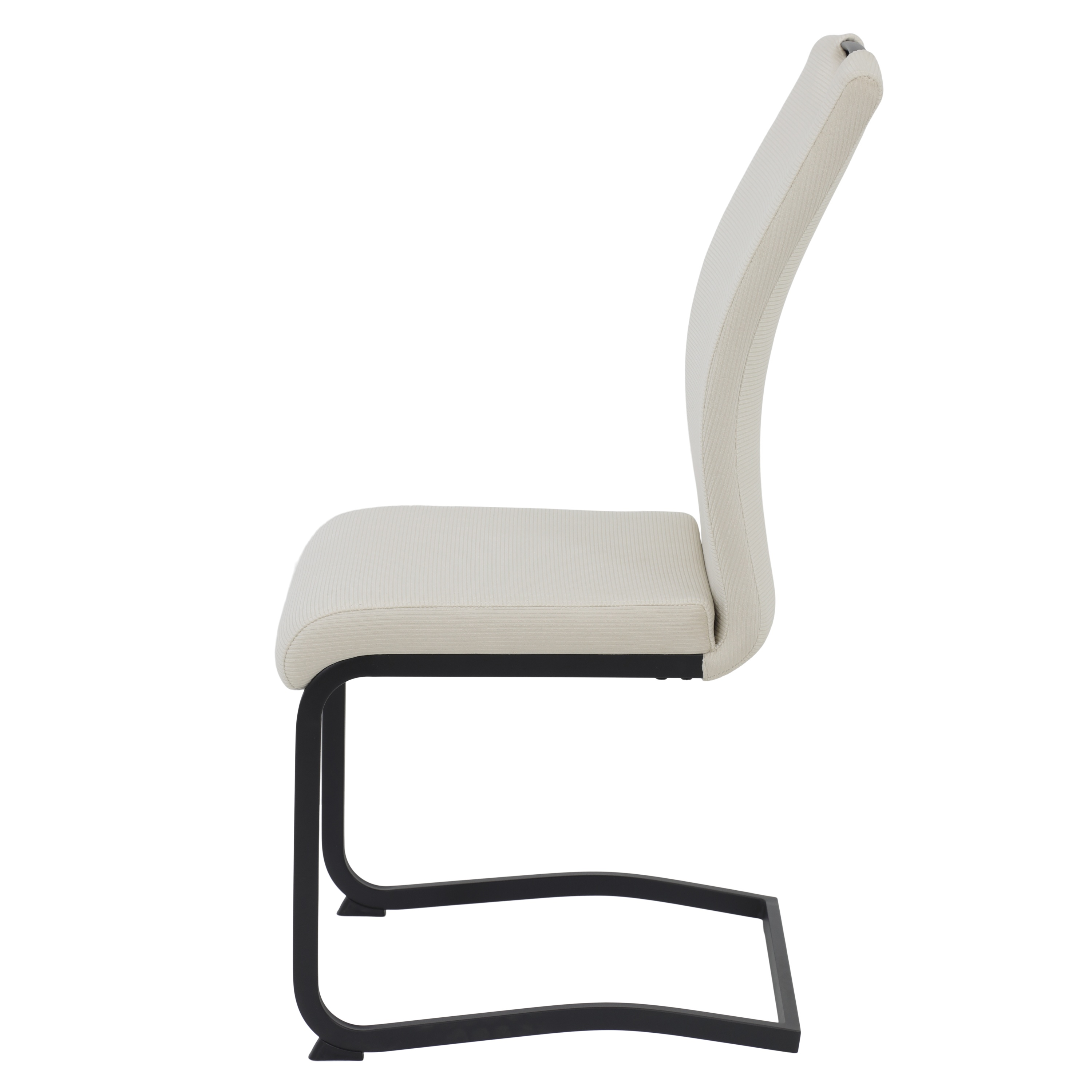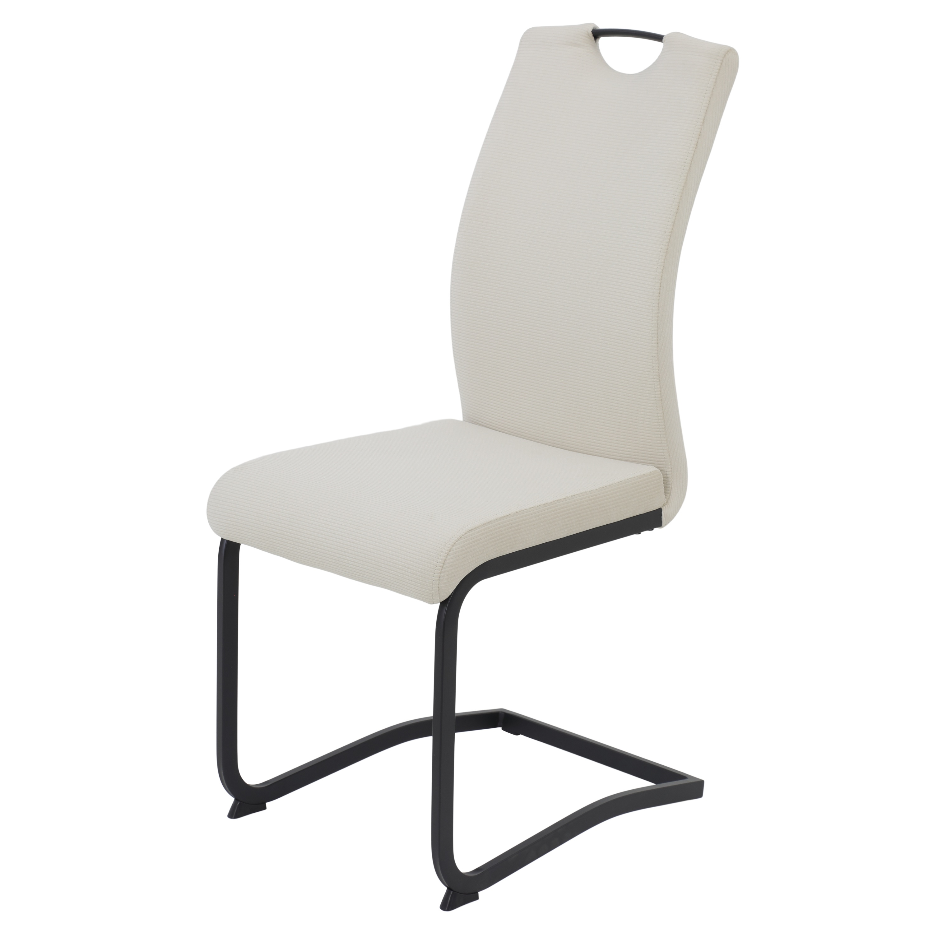 Konštrukcia každej stoličky je čalúnená príjemnou tkaninou so zamatovým vzhľadom s jemným rebrovaním. Komfortné sedenie zabezpečuje sedák s výplňou z polyuretánovej peny. Celkový vzhľad dopĺňa pružná kovová podnož s práškovo lakovaným povrchom. Pre jednoduchšiu každodennú manipuláciu slúži praktický úchyt. Stoličky budú dodané v sete 4 kusov.