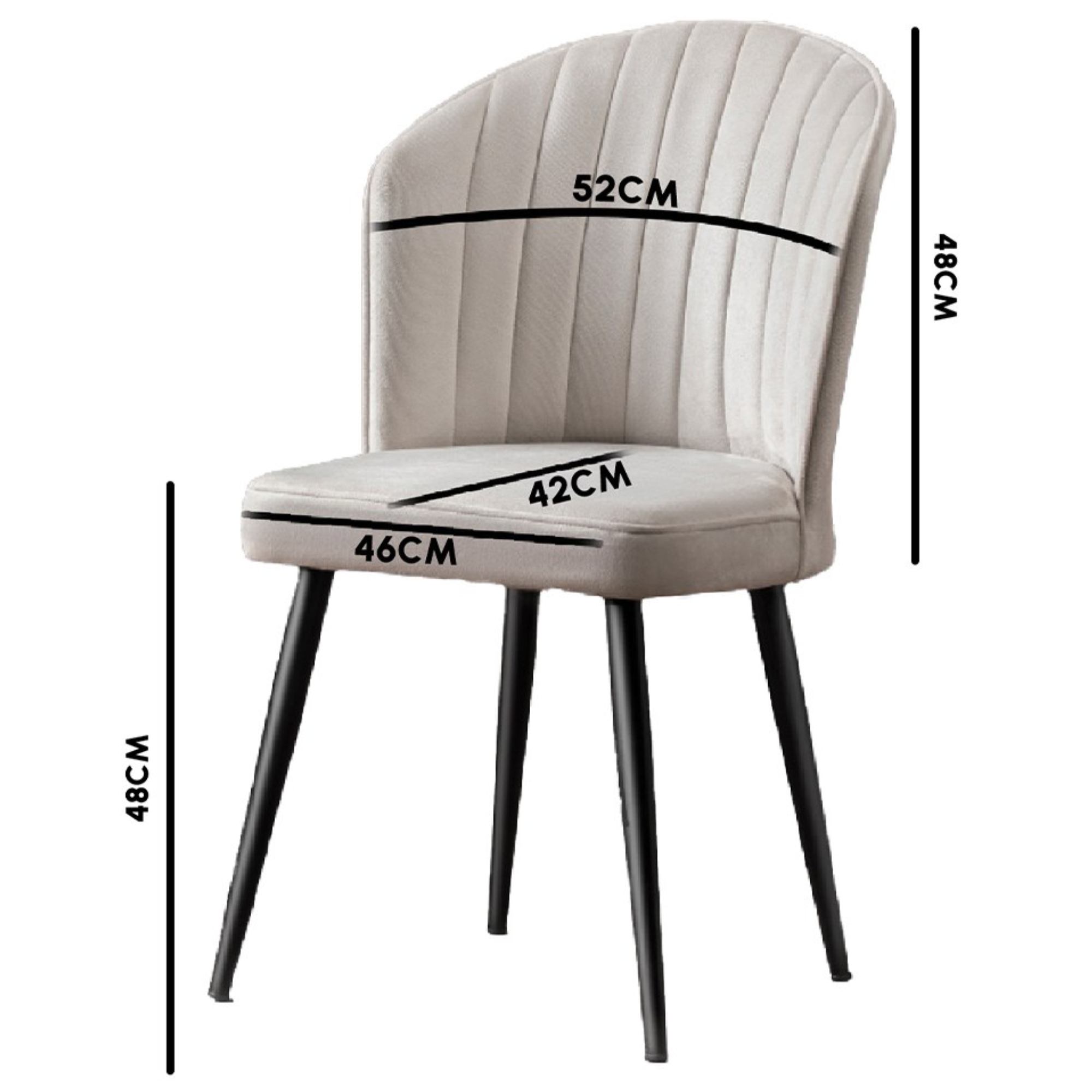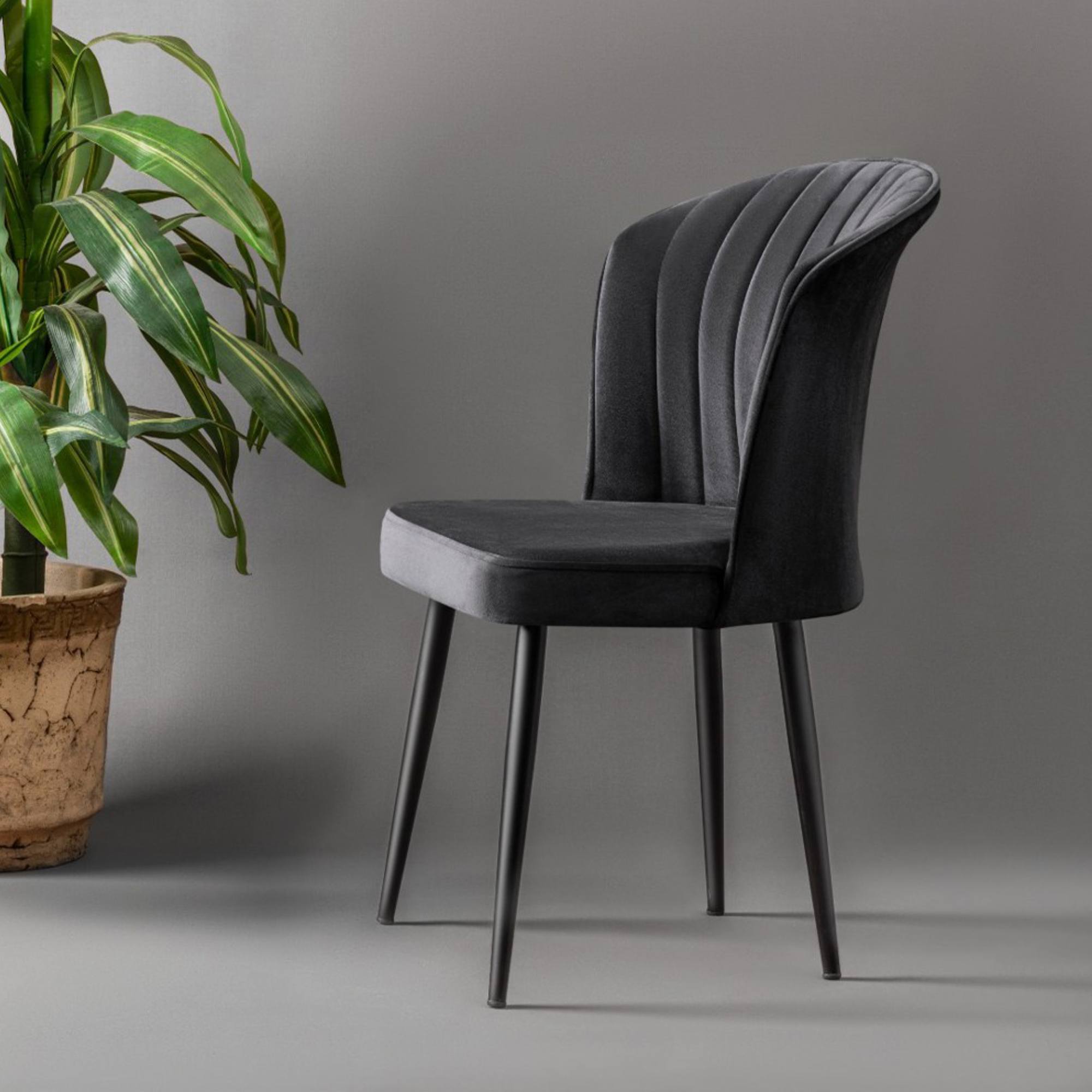Jedálenské stoličky RUBI sú čalúnené hladkou tkaninou a zdobí ich elegantné prešívanie.