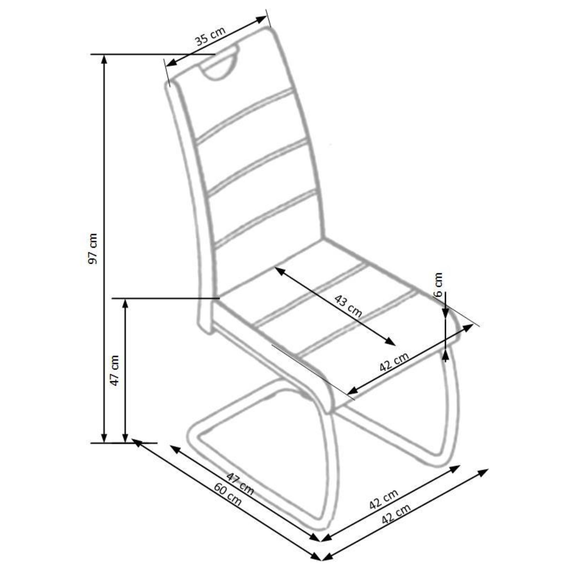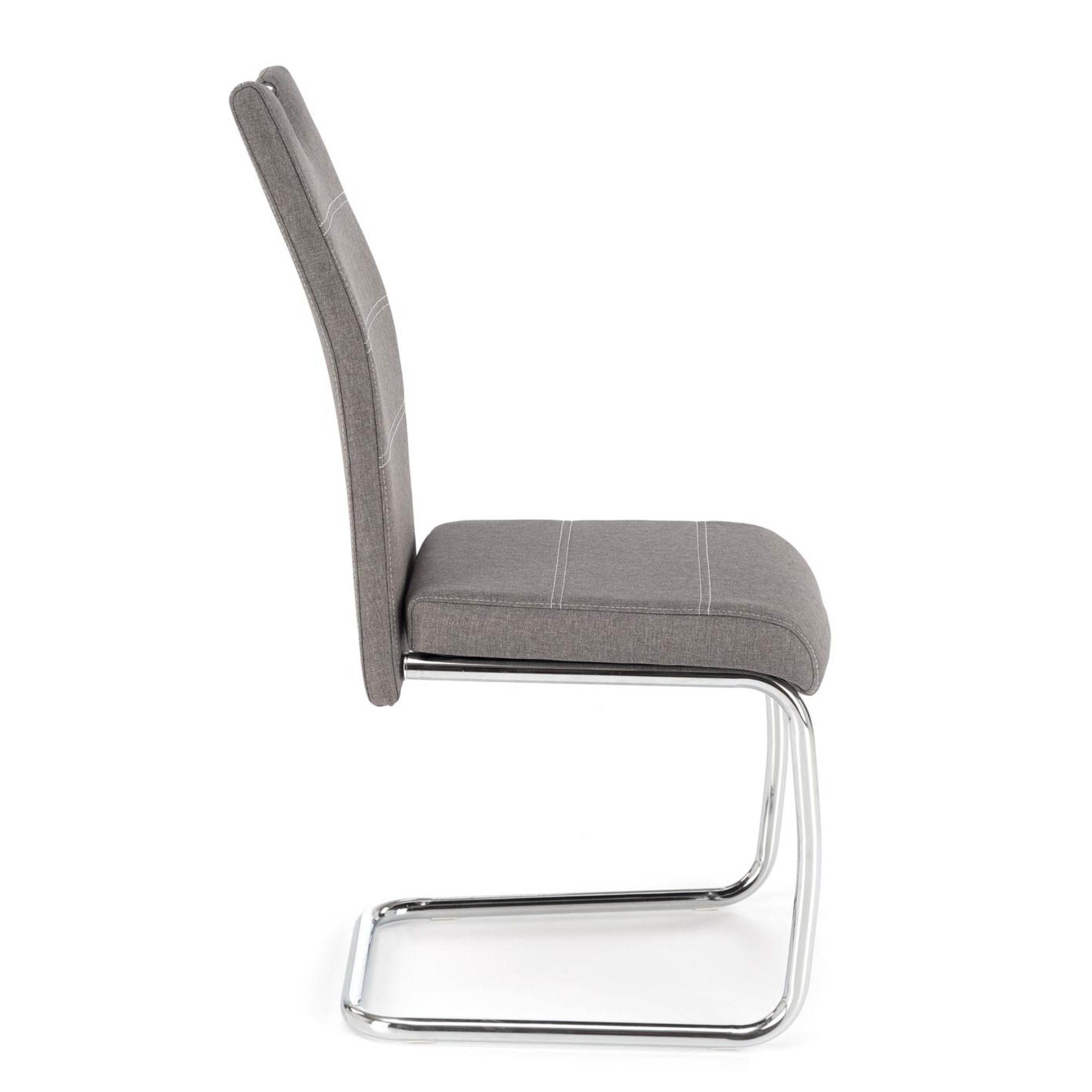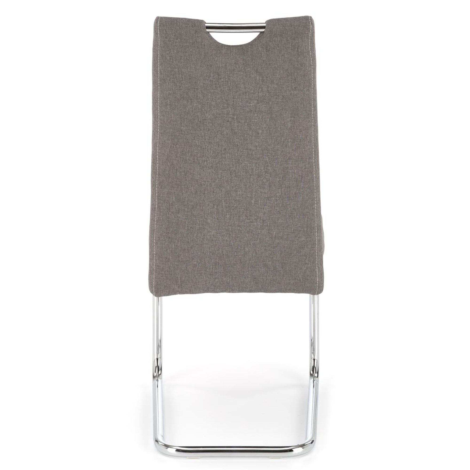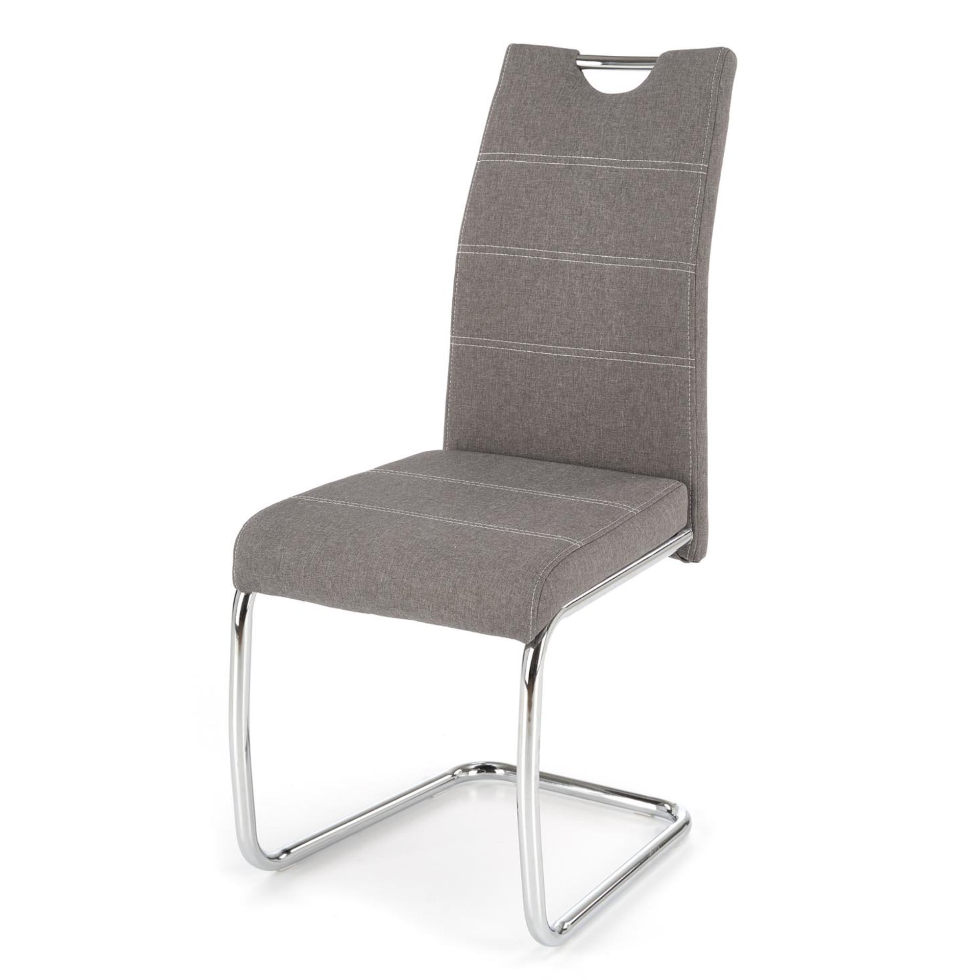 Vysoký komfort obstaráva pohodlné čalúnené sedadlo a chrbtová opierka z kvalitnej hladkej tkaniny s dekoratívnym prešívaním. Perová konštrukcia z kovu v chrómovej úprave zaisťuje maximálnu stabilitu. Manipuláciu uľahčí praktické držadlo v hornej časti opierky. Nosnosť je 120 kg.