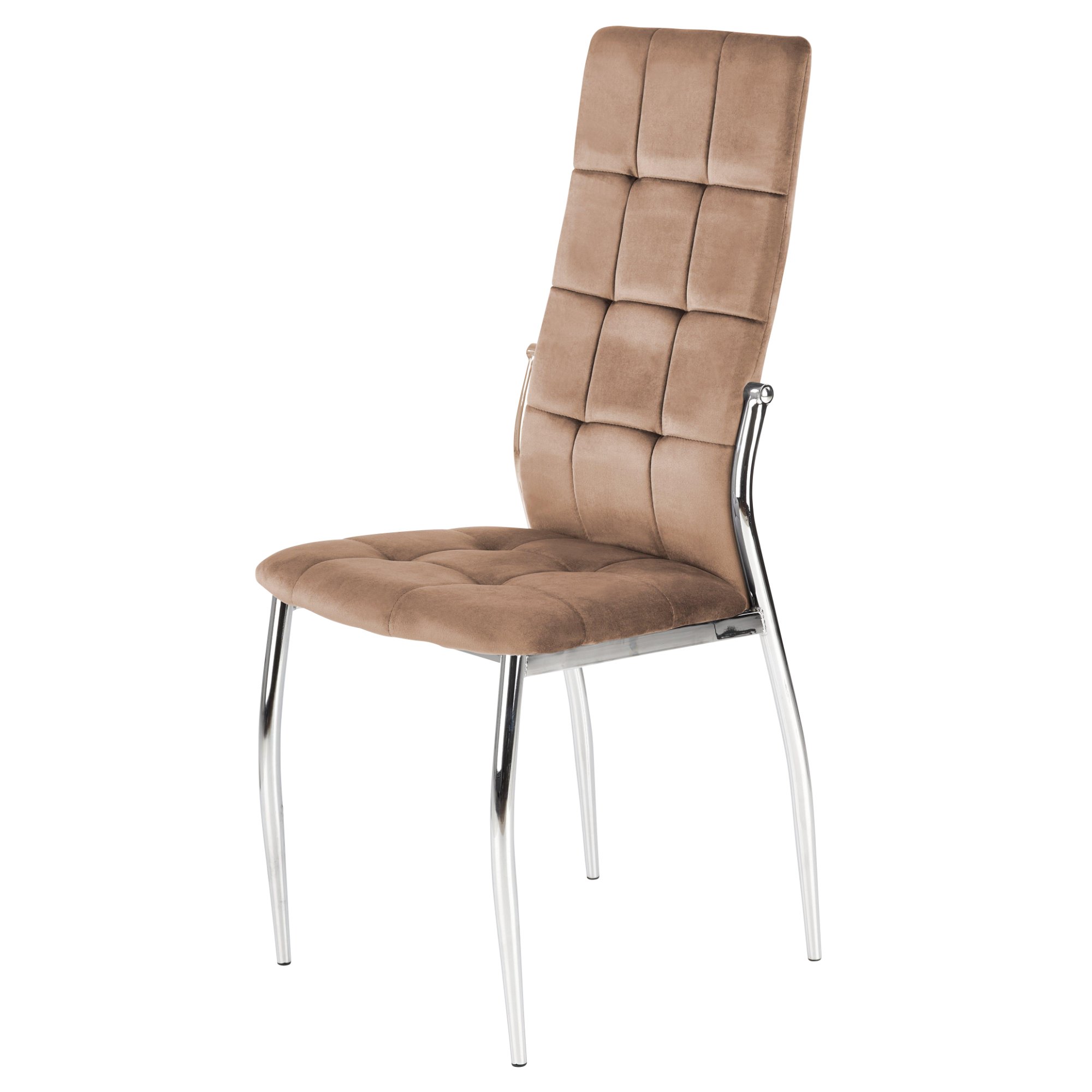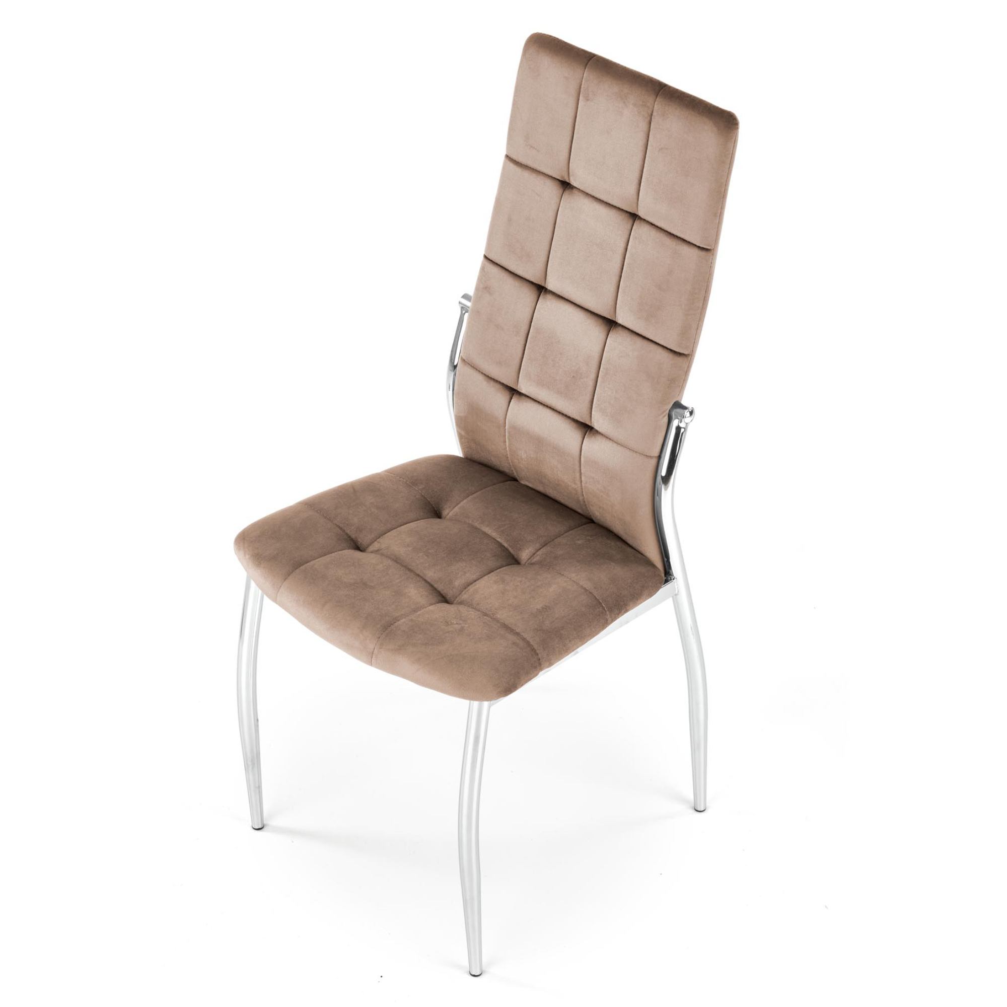 Škrupina je čalúnená tkaninou zamatového vzhľadu, ktorá je doplnená o dekoratívne prešívanie. Maximálny komfort je dosiahnutý čalúnením sedadla a chrbtovej opierky. Stabilitu celej konštrukcie zaisťuje štvornohá oceľová podnož, ktorá je ošetrená práškovým lakom v striebornej farbe. Maximálna nosnosť stoličky je dostatočných 100 kg. Dostupná je v niekoľkých farebných variantoch.