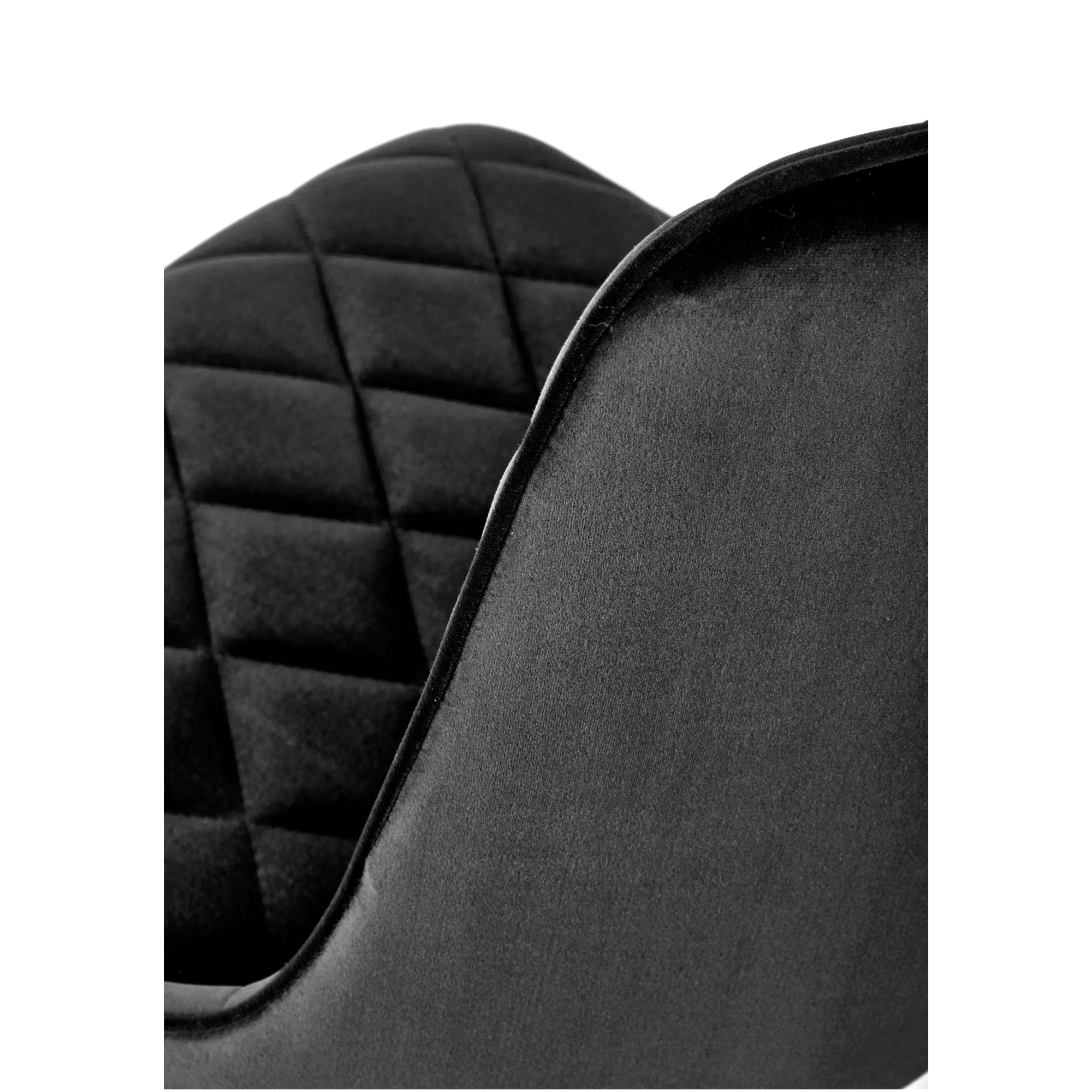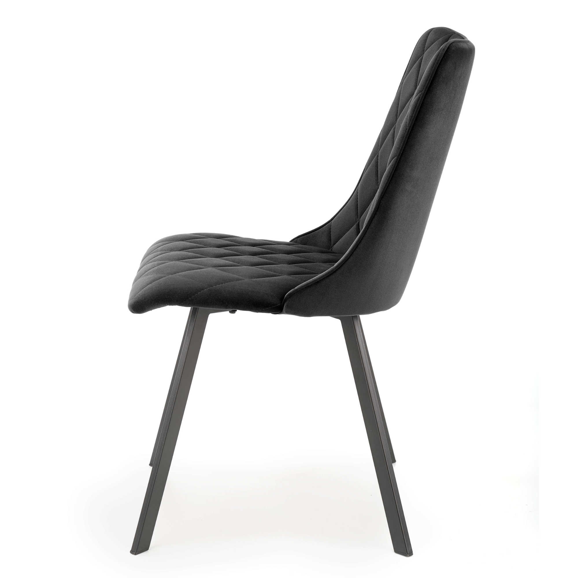 Škrupina je čalúnená veľmi kvalitnou tkaninou zamatového vzhľadu – tá disponuje vkusným dekoratívnym prešívaním. Maximálny komfort je dosiahnutý čalúnením sedadla aj chrbtovej opierky. Stabilitu zaisťuje kovová podnož, ktorá je ošetrená čiernym práškovým lakom.