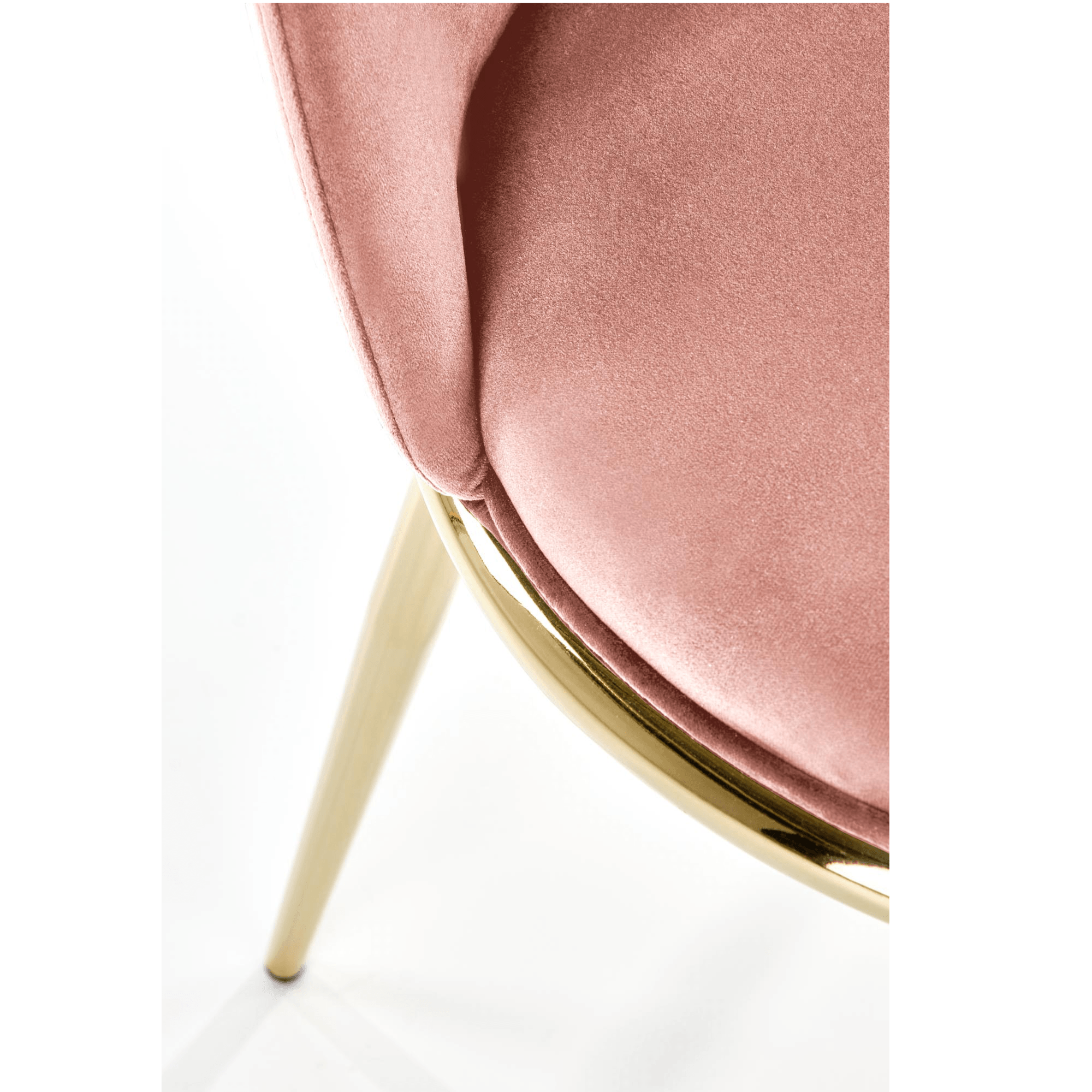 Škrupina je čalúnená veľmi kvalitnou zamatovou tkaninou, ktorá sa ľahko čistí. Maximálny komfort je dosiahnutý čalúnením sedadla aj opierky. Stabilitu zaisťuje oceľová pochrómovaná podnož v zlatej farbe – tá domácnosti vdýchne pocit luxusu.