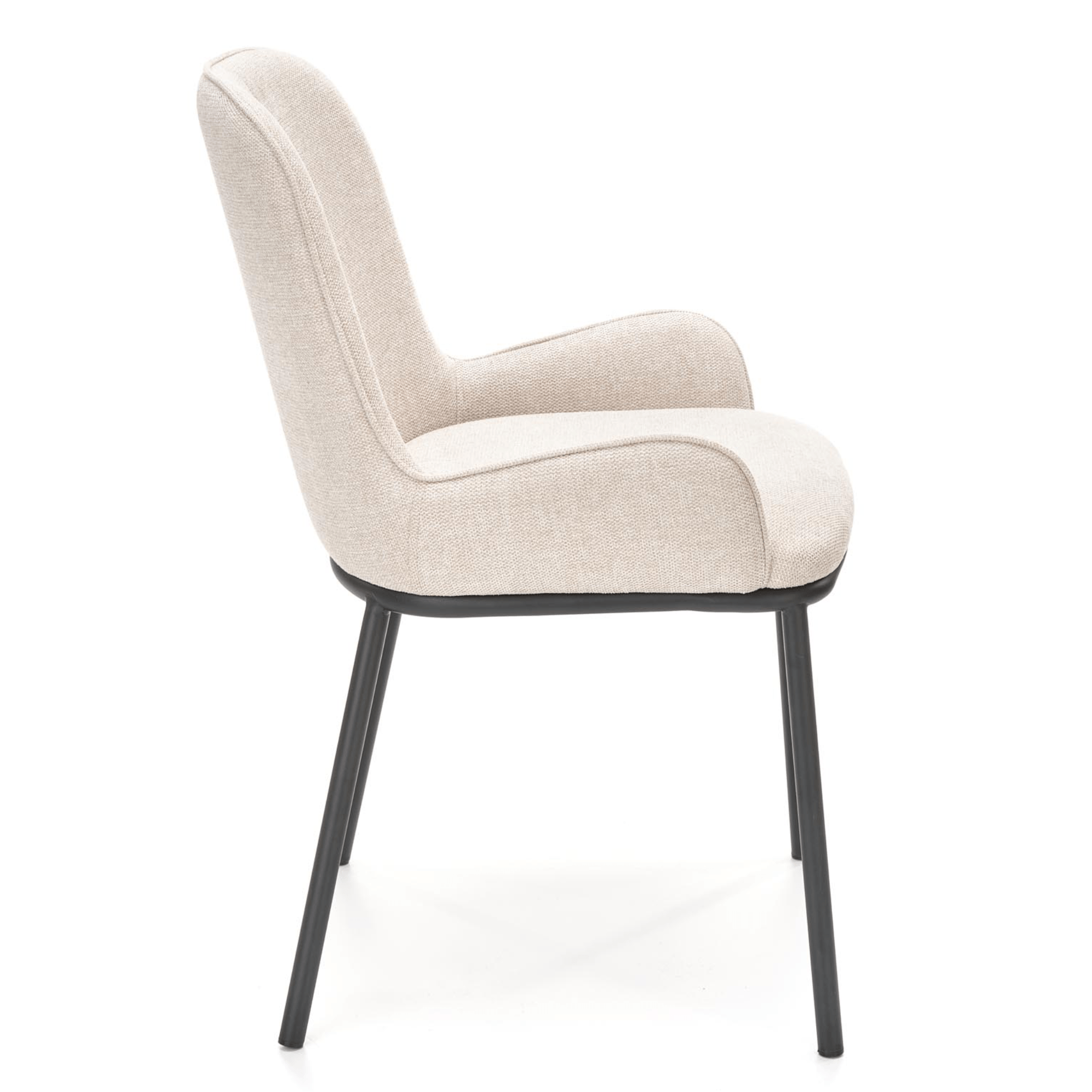 Maximálny komfort je dosiahnutý čalúnením sedadla a chrbtovej opierky z veľmi kvalitnej hrubej tkaniny. Pohodlie navyšujú praktické podrúčky. Stabilitu zaisťuje kovová podnož, ktorá je ošetrená čiernym práškovým lakom. Nosnosť elegantnej jedálenskej stoličky SCK-481 je 100 kg.