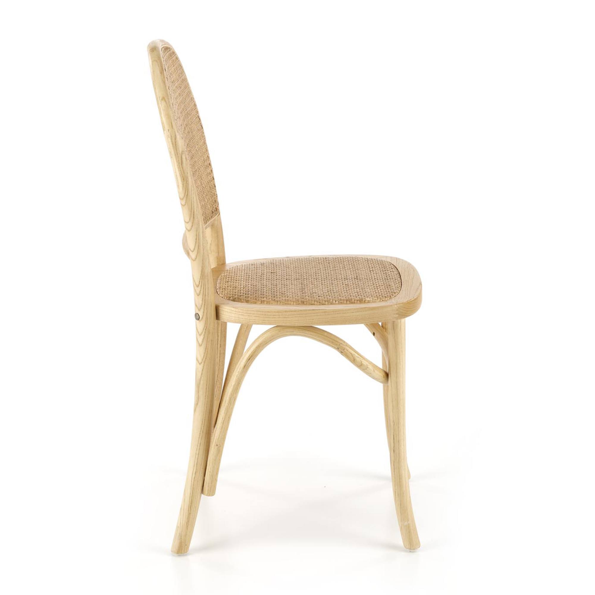 Vyrobená je z masívneho dreva, ktoré interiér obohatí o kus prírody, stoličke zároveň dodáva potrebnú stabilitu. Chrbtová opierka a sedadlo sú vypletané prírodným ratanom. Nosnosť je 100 kg.