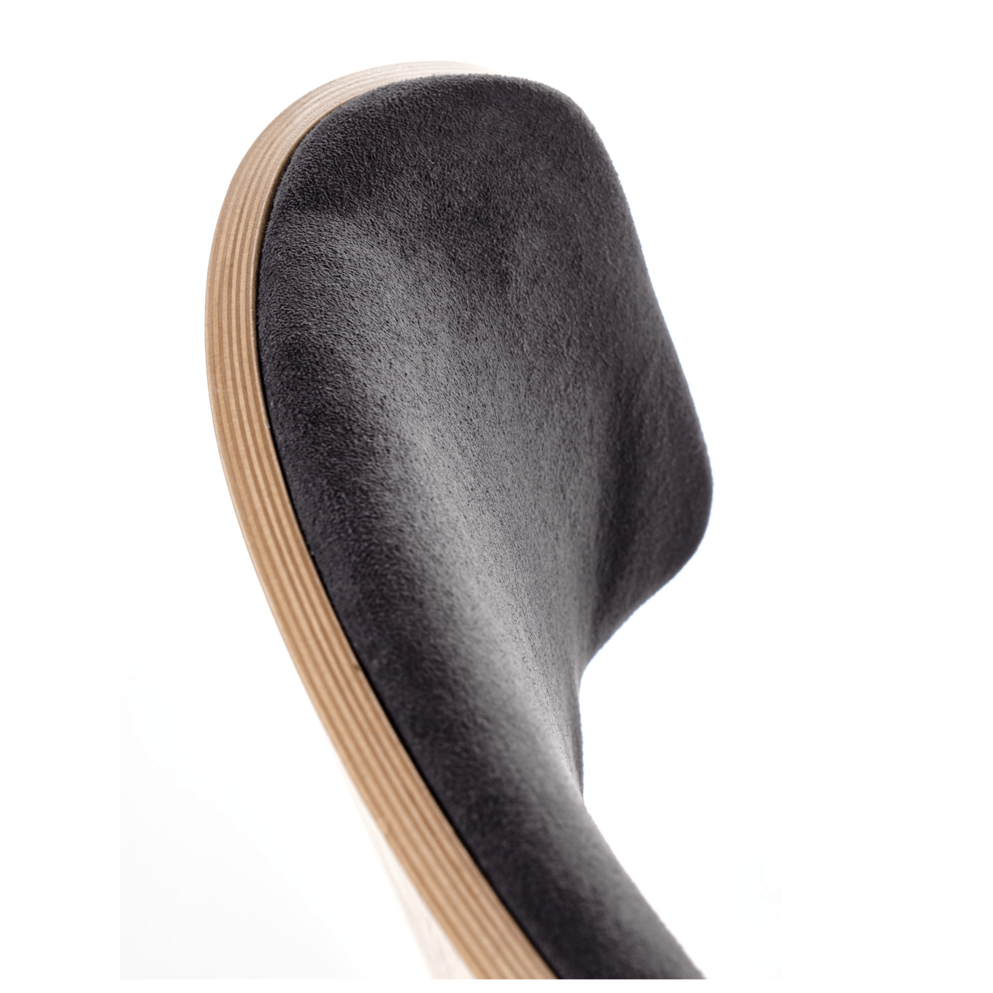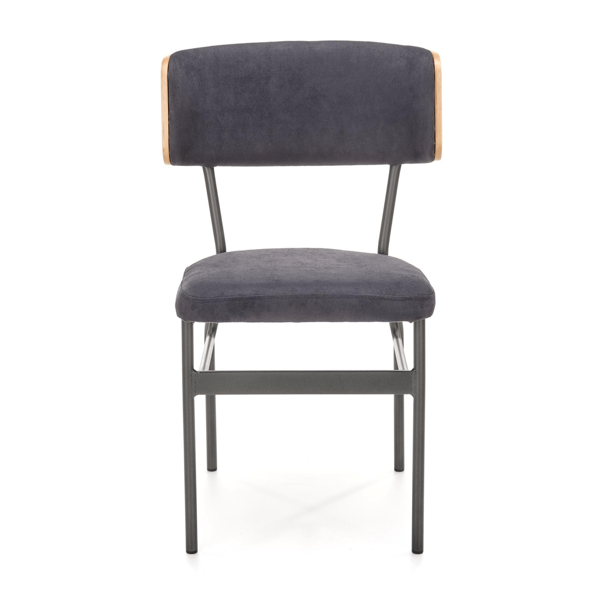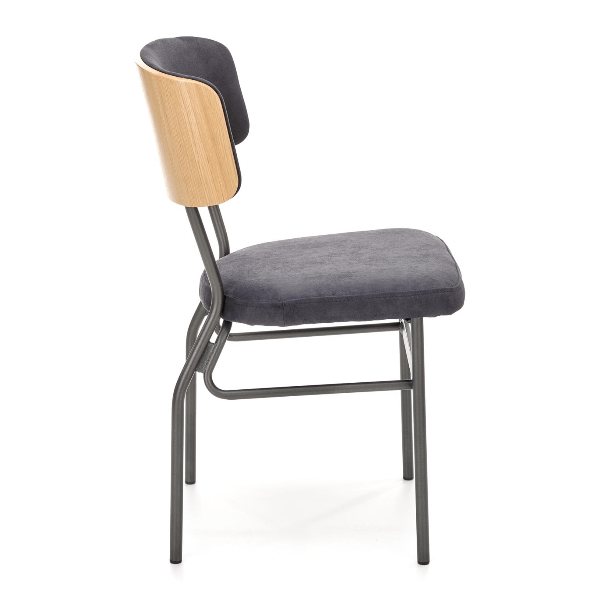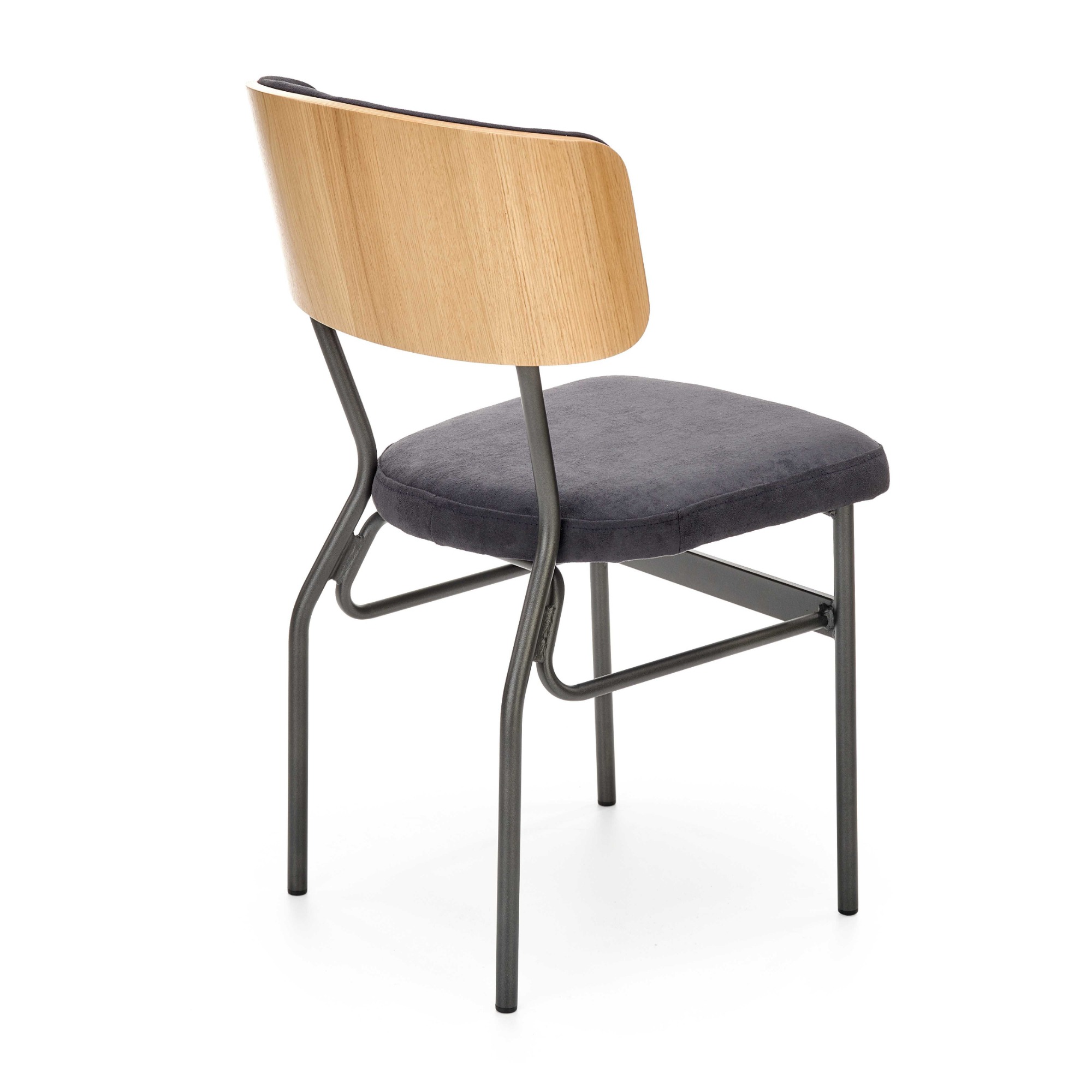 Pohodlie je dosiahnuté čalúnením sedadla a chrbtovej opierky – spoločným menovateľom je čalúnenie z hladkej tkaniny zamatového vzhľadu. Zadná strana opierky je ohýbanej dubovej dyhy prírodného odtieňa, ktorý je kontrastom k čiernej a maximálne stabilnej kovovej konštrukcii.