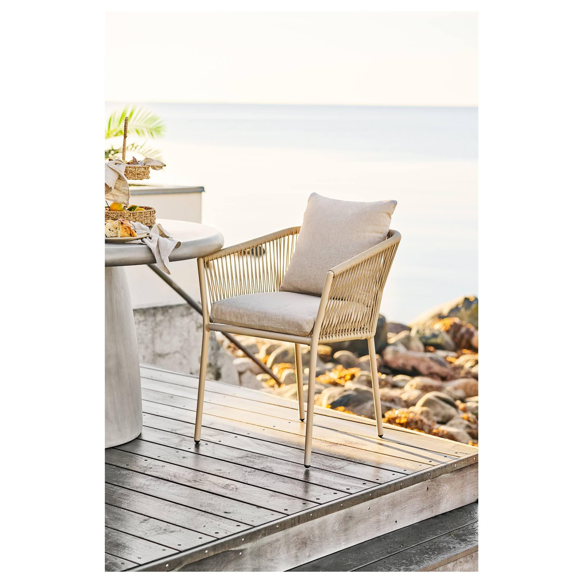 Táto stolička za svoju stabilitu vďačí svojej pevnej hliníkovej konštrukcii. Tá je doplnená mäkkým penovým sedákom čalúnením hladkou tkaninou, ktorý sa stará o pohodlie pri sedení. Stolička je dodávaná vrátane vankúša.