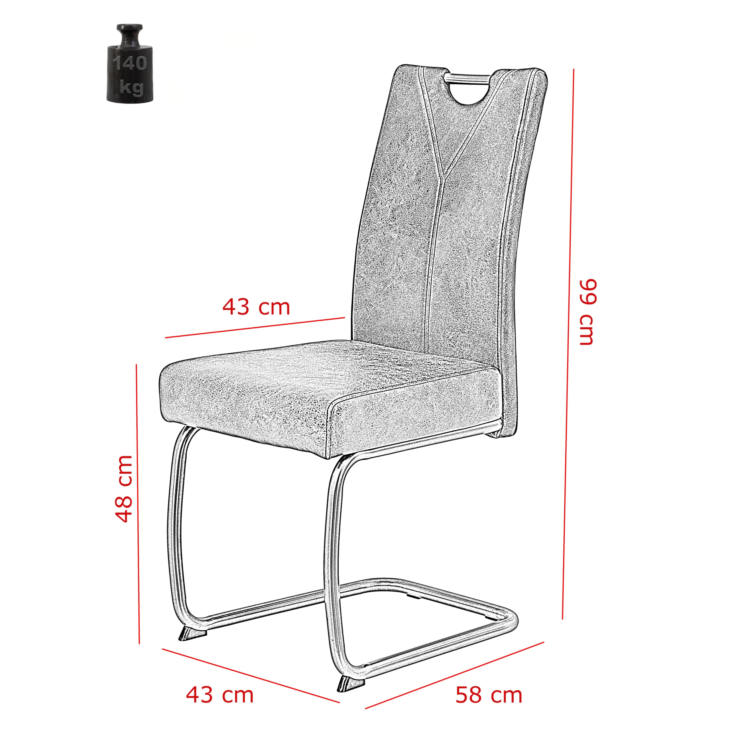 Konštrukcia každej stoličky je čalúnená príjemným mikrovláknom vo vintage štýle. Poťah je v oblasti chrbta z prednej strany doplnený o decentné prešívanie. Komfortné sedenie zabezpečuje sedák s jadrom z taštičkových pružín v kombinácii s penovou vrstvou. Celkový vzhľad potom dopĺňa kovová, pružná podnož v farbe nehrdzavejúcej ocele. Pre jednoduchšiu každodennú manipuláciu slúži praktický úchyt. Stoličky budú dodané v sete 2 kusov.
