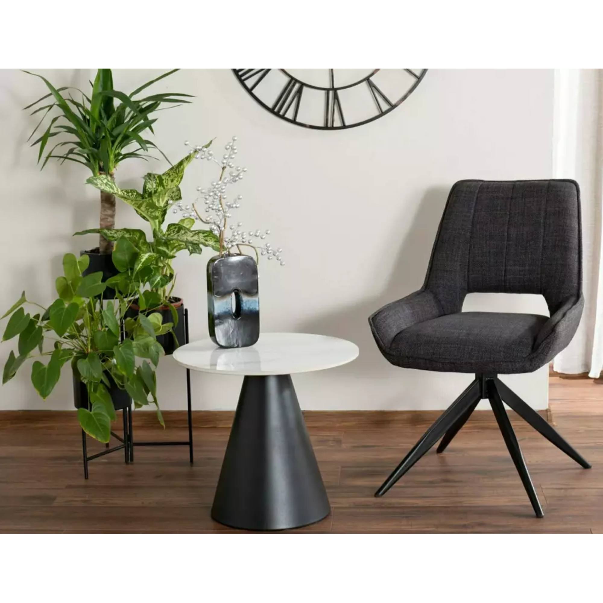 Pretože je jej súčasťou pevná kovová konštrukcia, je stolička mimoriadne stabilná. Jej podnož je otočná o 180° a disponuje funkciou návratu do pôvodnej polohy. Aby sa na stoličke príjemne sedelo, je vybavená pohodlným penovým sedadlom potiahnutým tkaninou Bjorn.