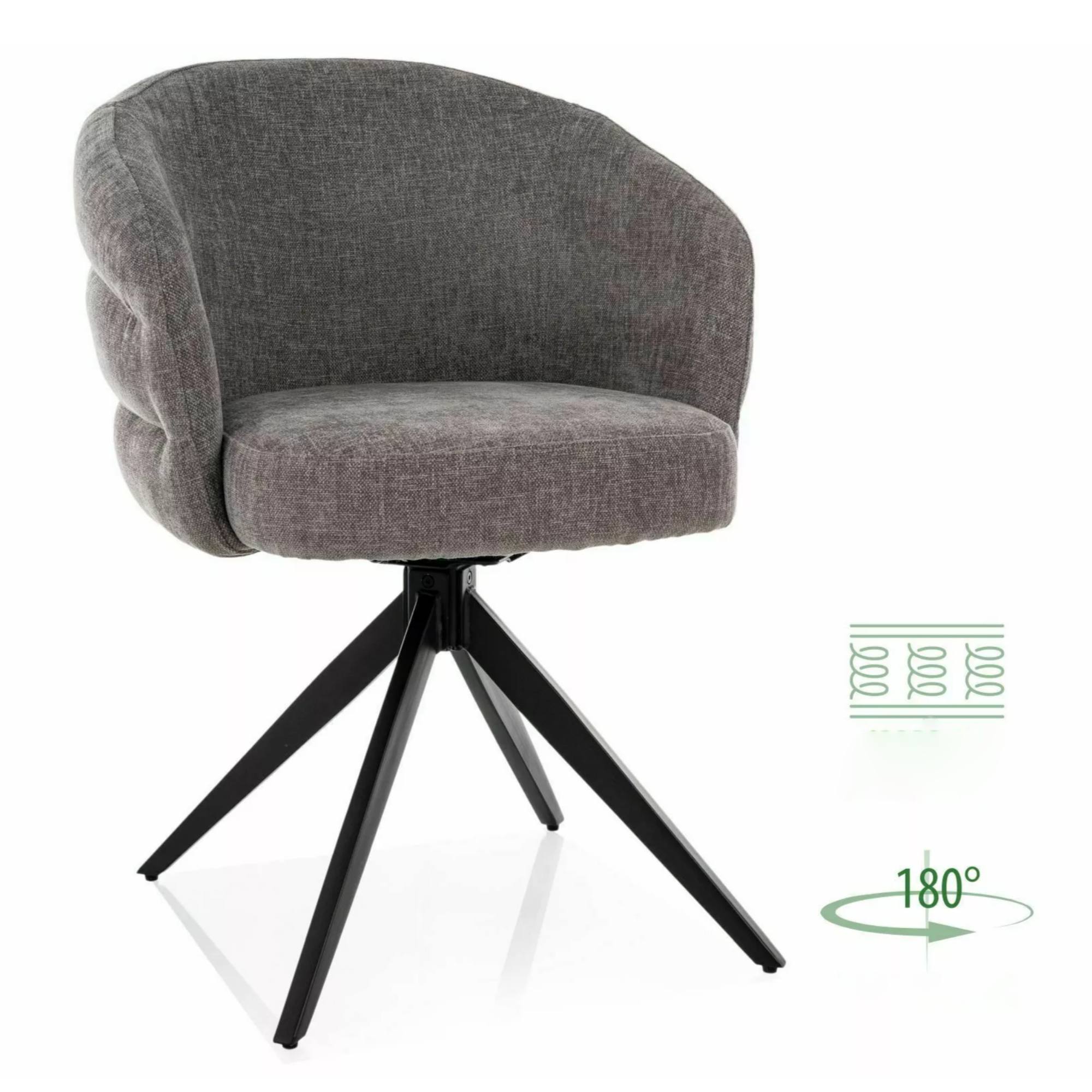 Stolička je čalúnená hladkou tkaninou, ktorá je príjemná na dotyk. Vonkajšia časť stoličky je zdobená dekoratívnym prešitím. Maximálne pohodlie počas sedenia zaisťuje nielen mäkký penový sedák s pružinovým jadrom, ale aj podrúčky. Sedaciu časť podopiera štvorica nôh z matného kovu.