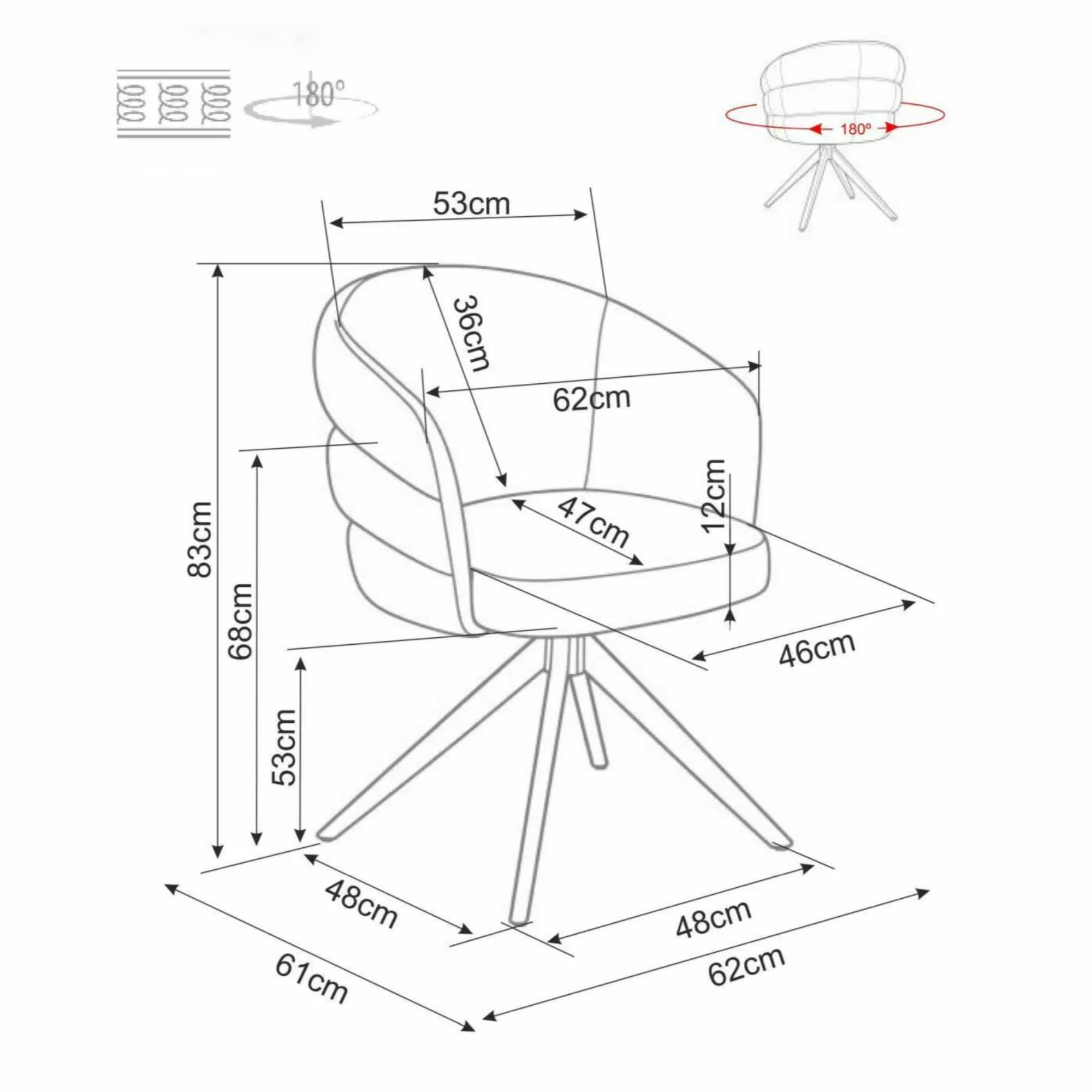 Stolička je čalúnená hladkou tkaninou, ktorá je príjemná na dotyk. Vonkajšia časť stoličky je zdobená dekoratívnym prešitím. Maximálne pohodlie počas sedenia zaisťuje nielen mäkký penový sedák s pružinovým jadrom, ale aj podrúčky. Sedaciu časť podopiera štvorica nôh z matného kovu.