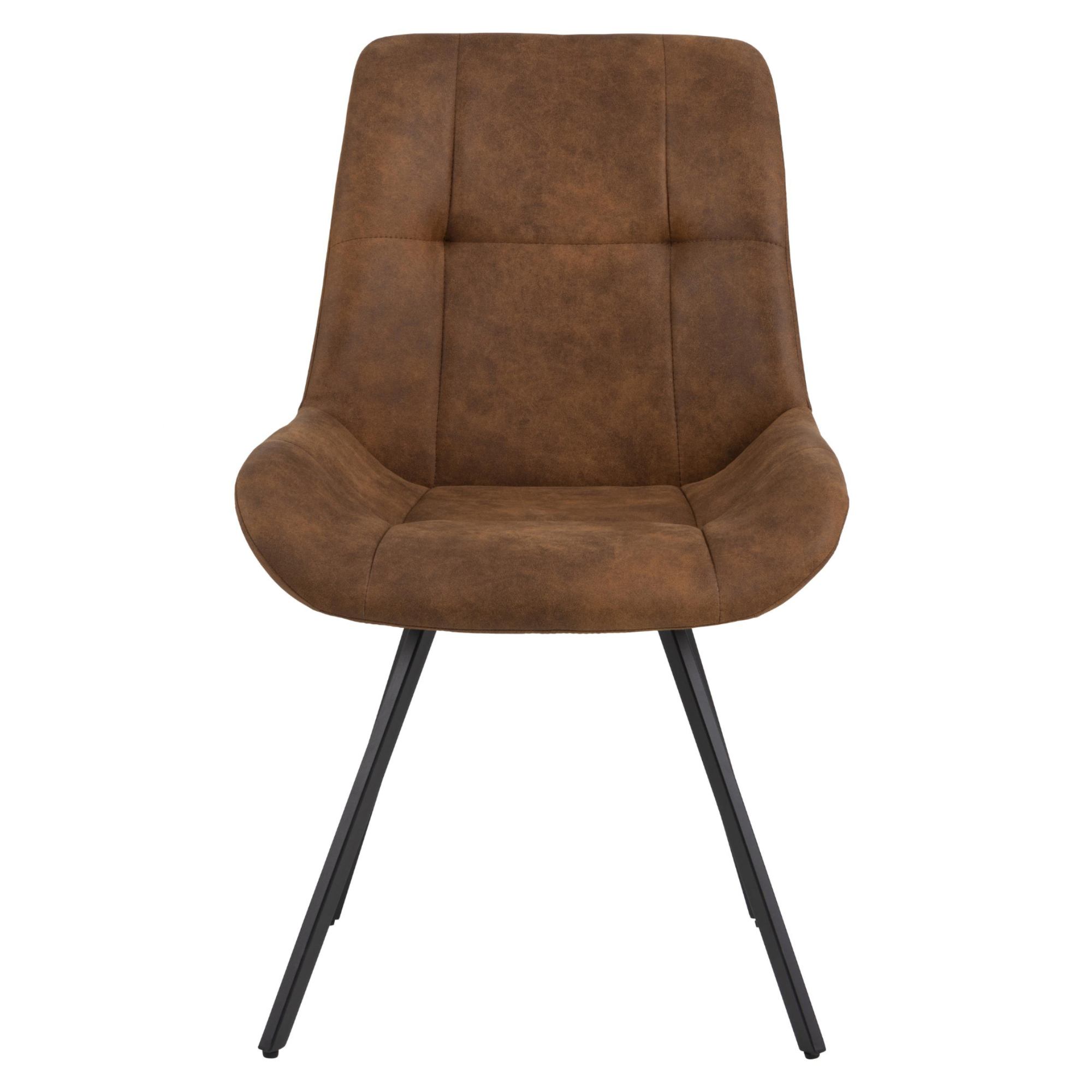 Stolička je čalúnená tkaninou, ktorá svojim vzhľadom verne pripomína prírodnú kožu, a zdobí ju štýlové prešívanie.